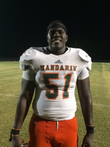 Mandarin went 57 yards in 12 plays capping the long drive with a Mekhi Jackson 4-yard touchdown run up the middle giving the Mustangs a 7-0 lead with 6:03 remaining in the first quarter.