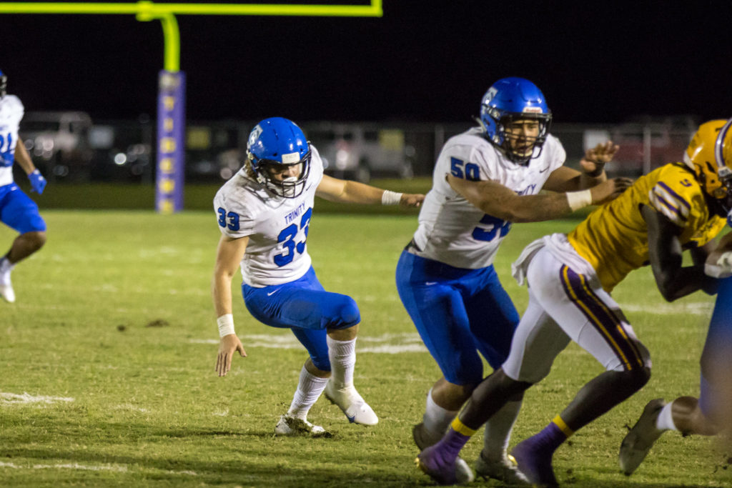 Trinity’s linebackers are quick and aggressive, pressuring opponents with blitzing and pursuit. Led by senior Caden Morell who leads the team with 47 tackles. As a unit they’ve tallied 8 sacks. Keaton Thomas will have a little more incentive this game, as he was with Bolles last year as a wide receiver, and now plays linebacker for Trinity. His ability to cover and react quickly is an advantage for the Conquerors unit. All of the Trinity linebackers are looking for homes at the next level in college, which makes them hungry.