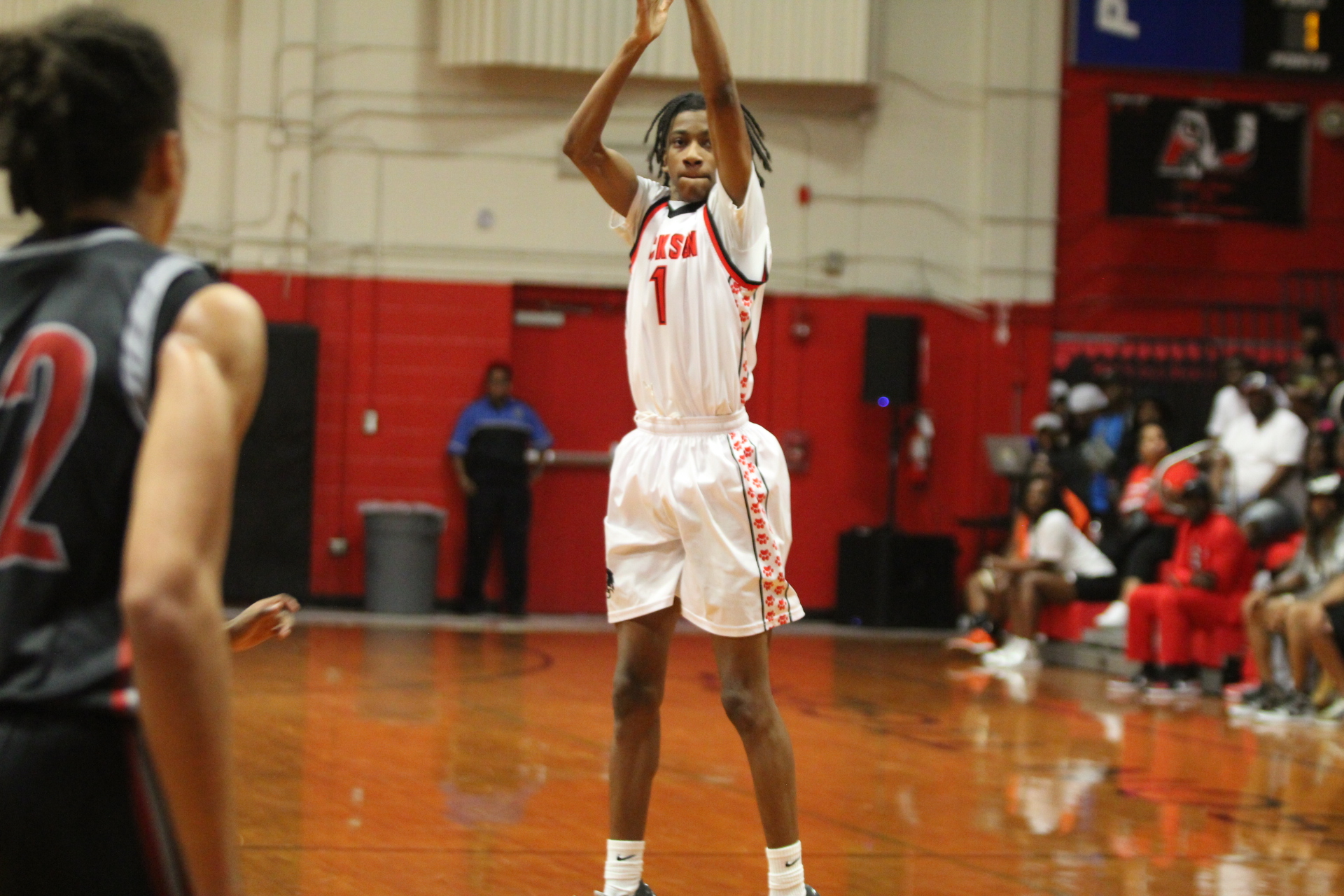 For Raines, it was Jeremiah White who was the hot shooter in the first quarter. White hit a 3-pointer of his own, scoring 5-points in the quarter keeping the game close and competitive. Another reason Raines kept it close was because of their defense. Makai Purkiss would block shots including a nasty rejection pinning the ball against the glass. Defense kept scoring low early.