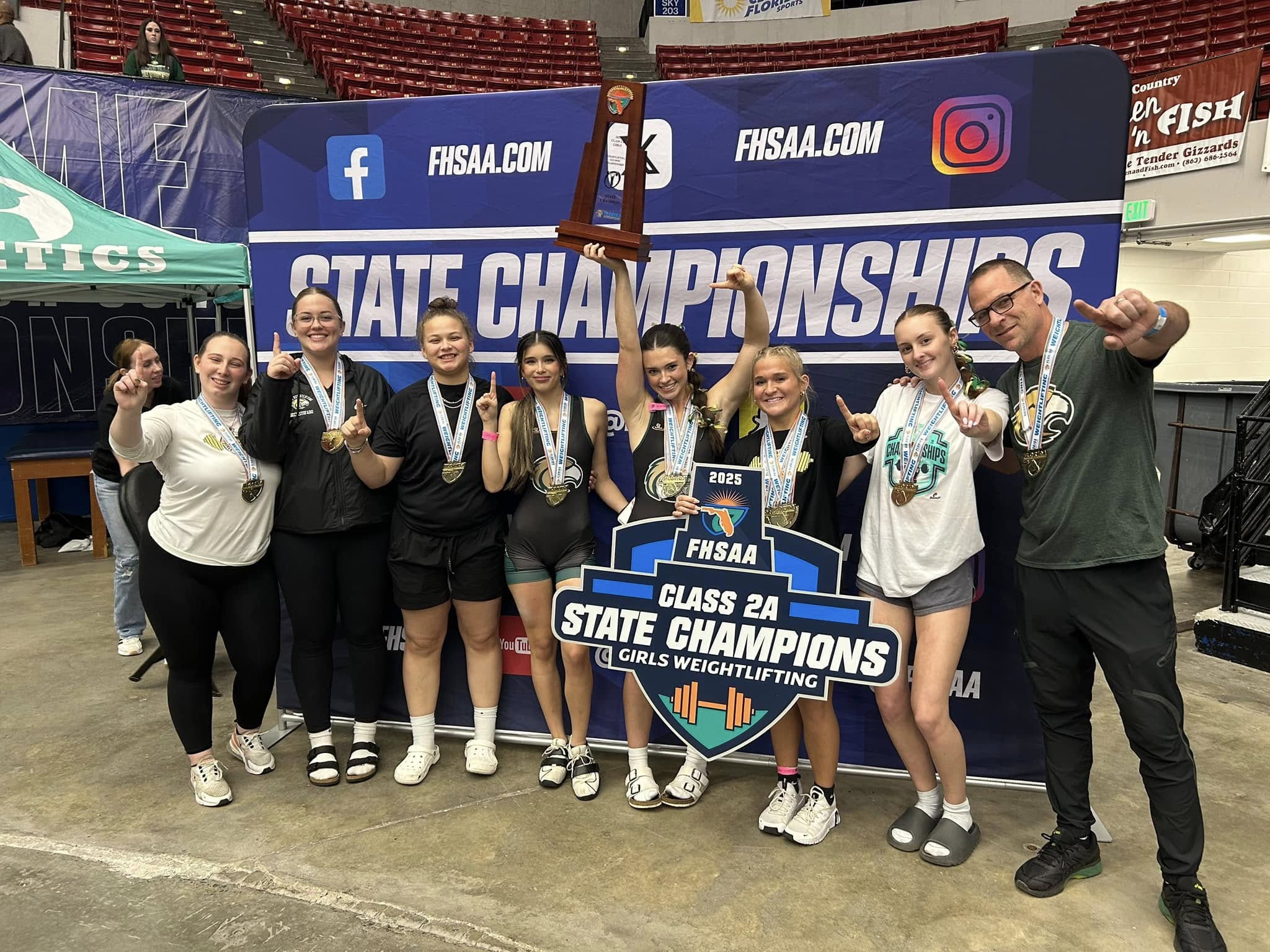 Lakeland Fl- “Four years ago, our seniors didn’t win one meet. We didn’t have any girls qualify for State. They hated to lose and did something about it”. Those were the words of coach Sean Coultis after he saw his Fleming Island Golden Eagles bring home the FHSAA Class 2A Girls Olympic Style Weightlifting State Championship this week.