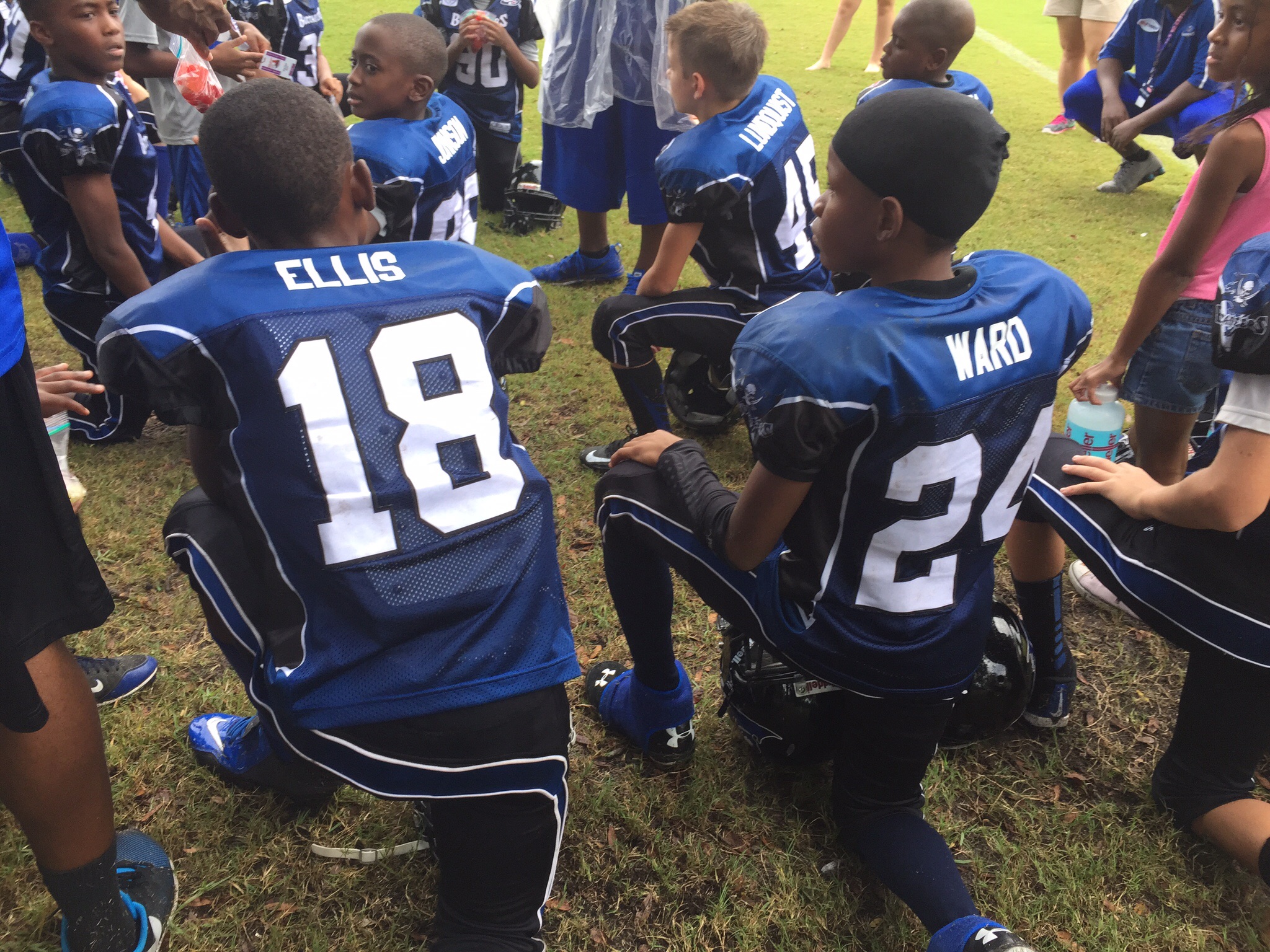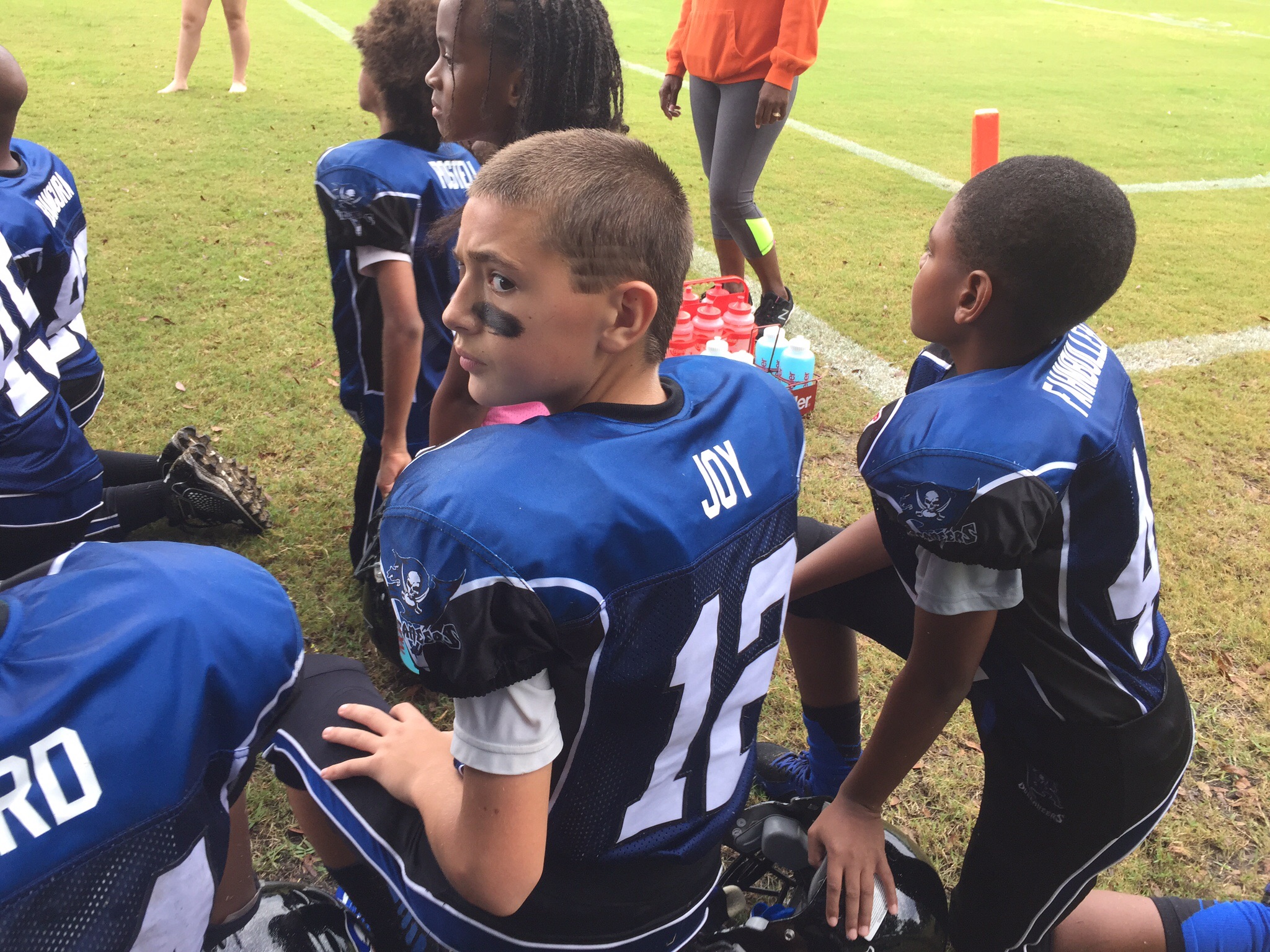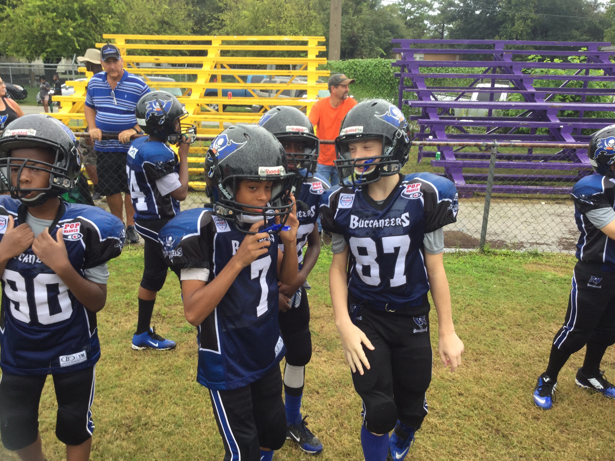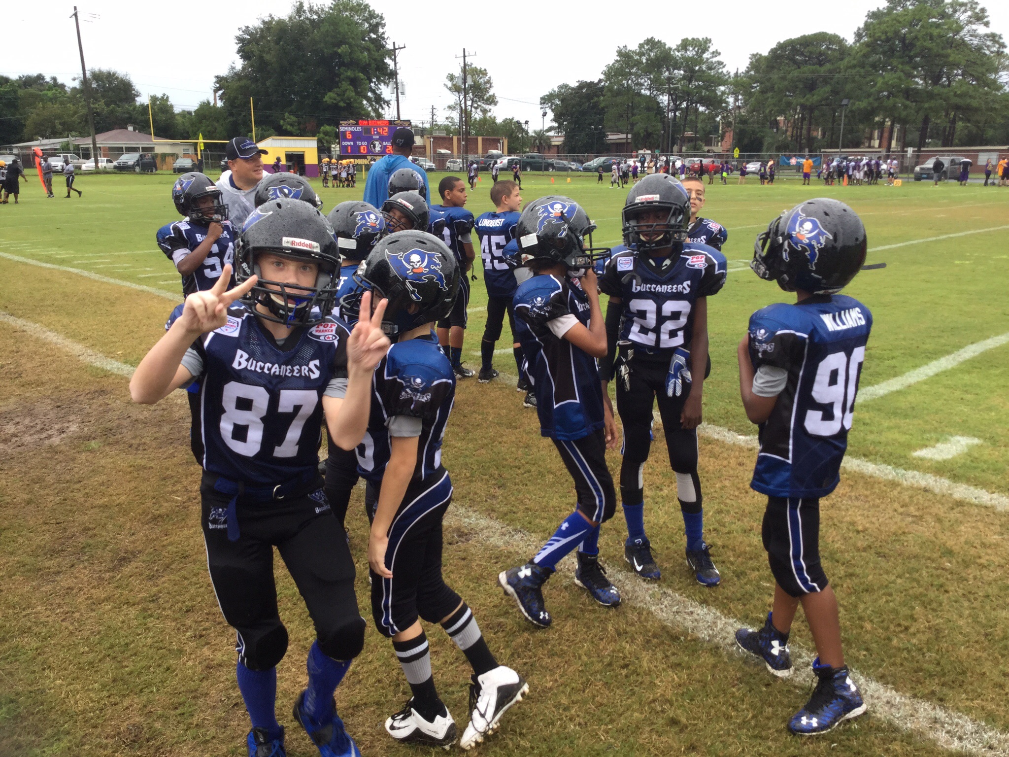 Christian Ellis lead the Bucs in rushing and scored two touchdowns as the Junior Pee Wee Oceanway Buccaneers improved to 2-0 on the season. The Bucs scored just minutes into the game after an Ellis 50 yard run to get them into the redzone. Quarterback Reshawn Latimer scrambled down the left sideline and into the endzone to put the Bucs up 7-0 after the successful conversion.