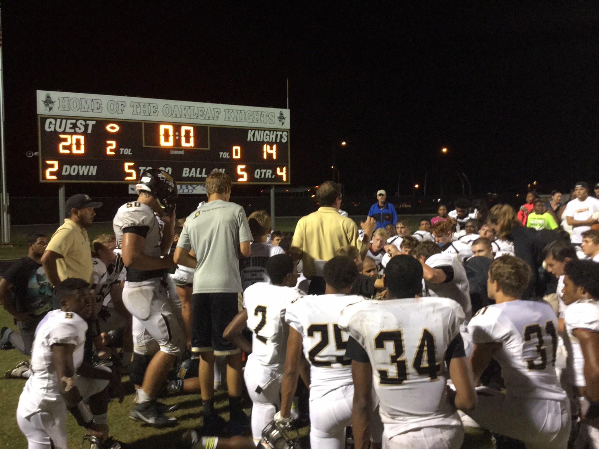 As for Oakleaf, it was without question a tough loss. The players and coaches knew they had to have this one. But I believe this is the wake up call the Knights needed. There was a lot of hype surrounding the team thanks to several players who transferred from other good programs from around the city to come play for the Knights.