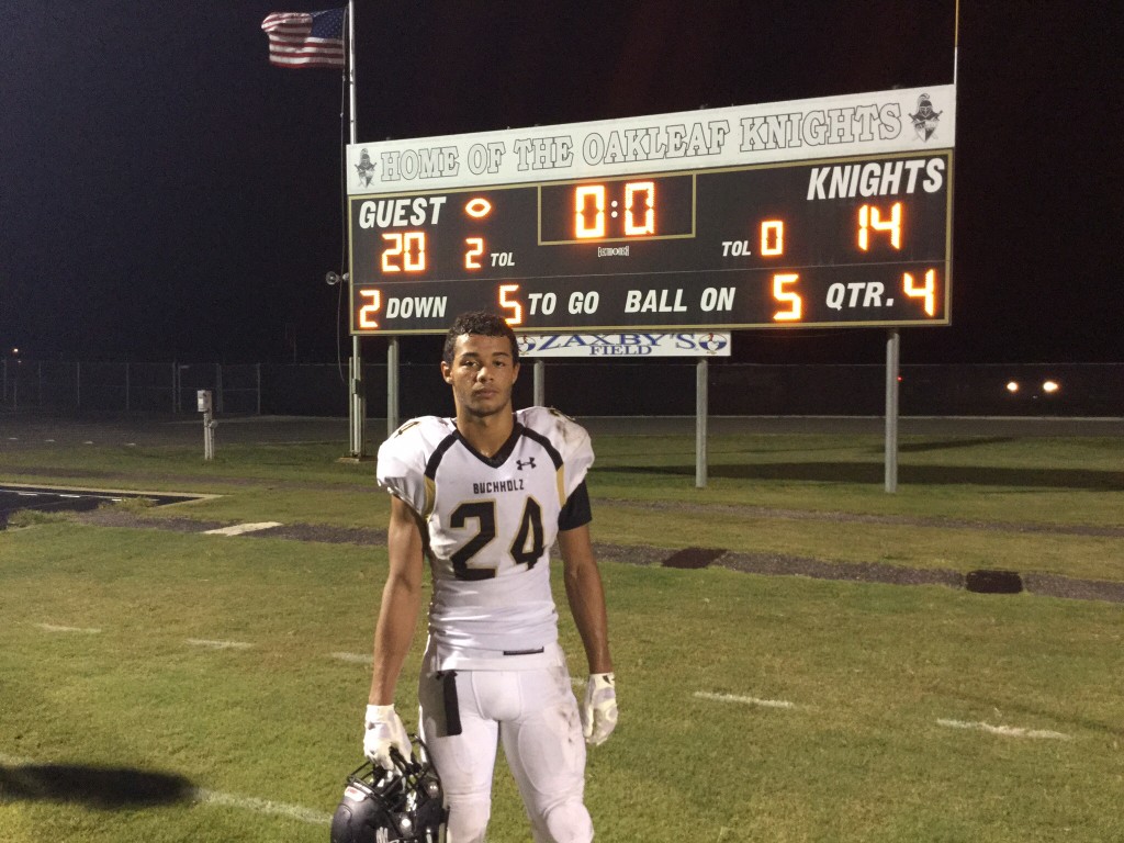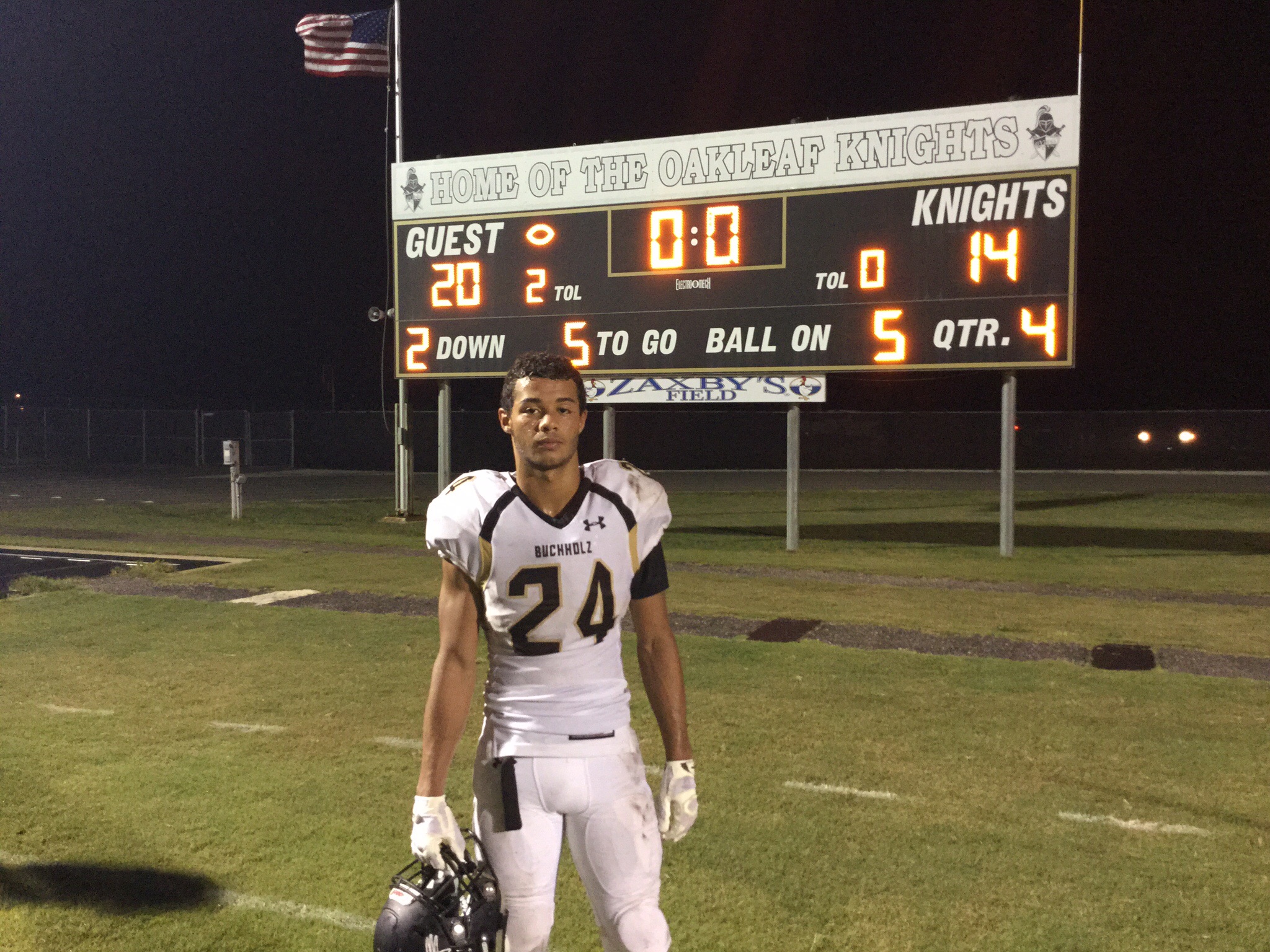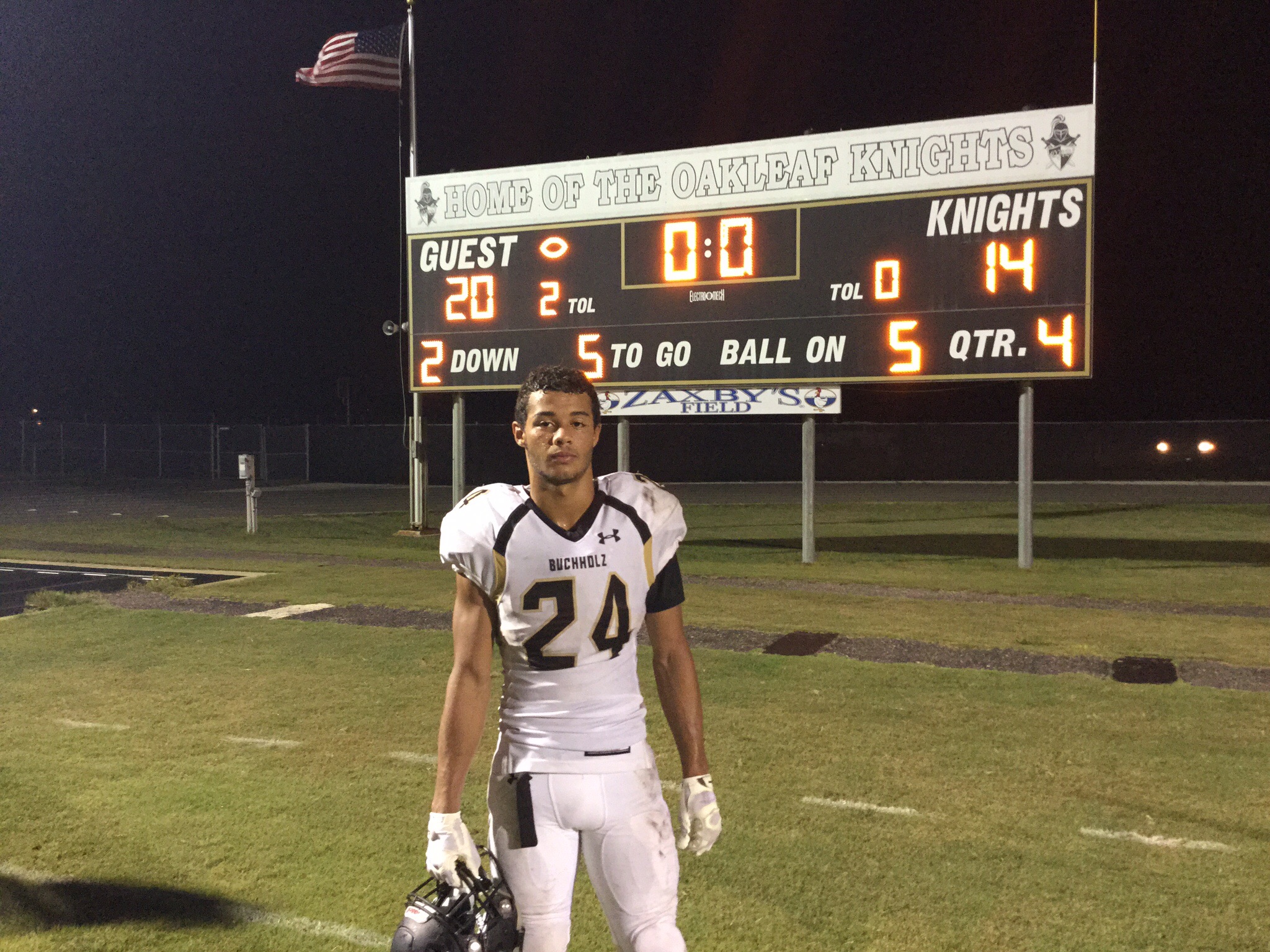 DB Marcus Clayton was around the ball all night for Buchholz. He almost nabbed his 2nd pick here vs Oakleaf pic.twitter.com/k5GBxktrOT — DuvalSports (@DuvalSports) September 19, 2015