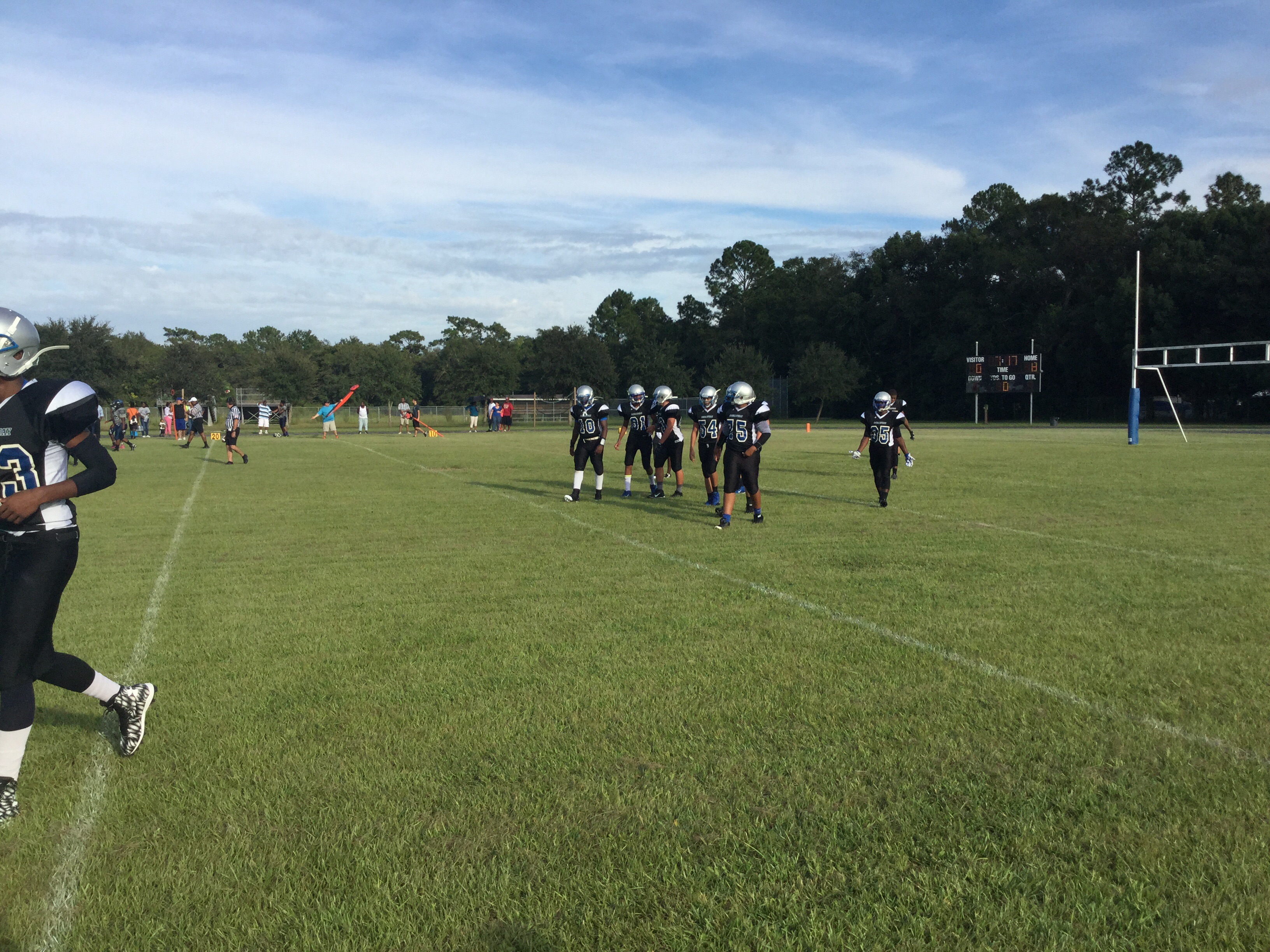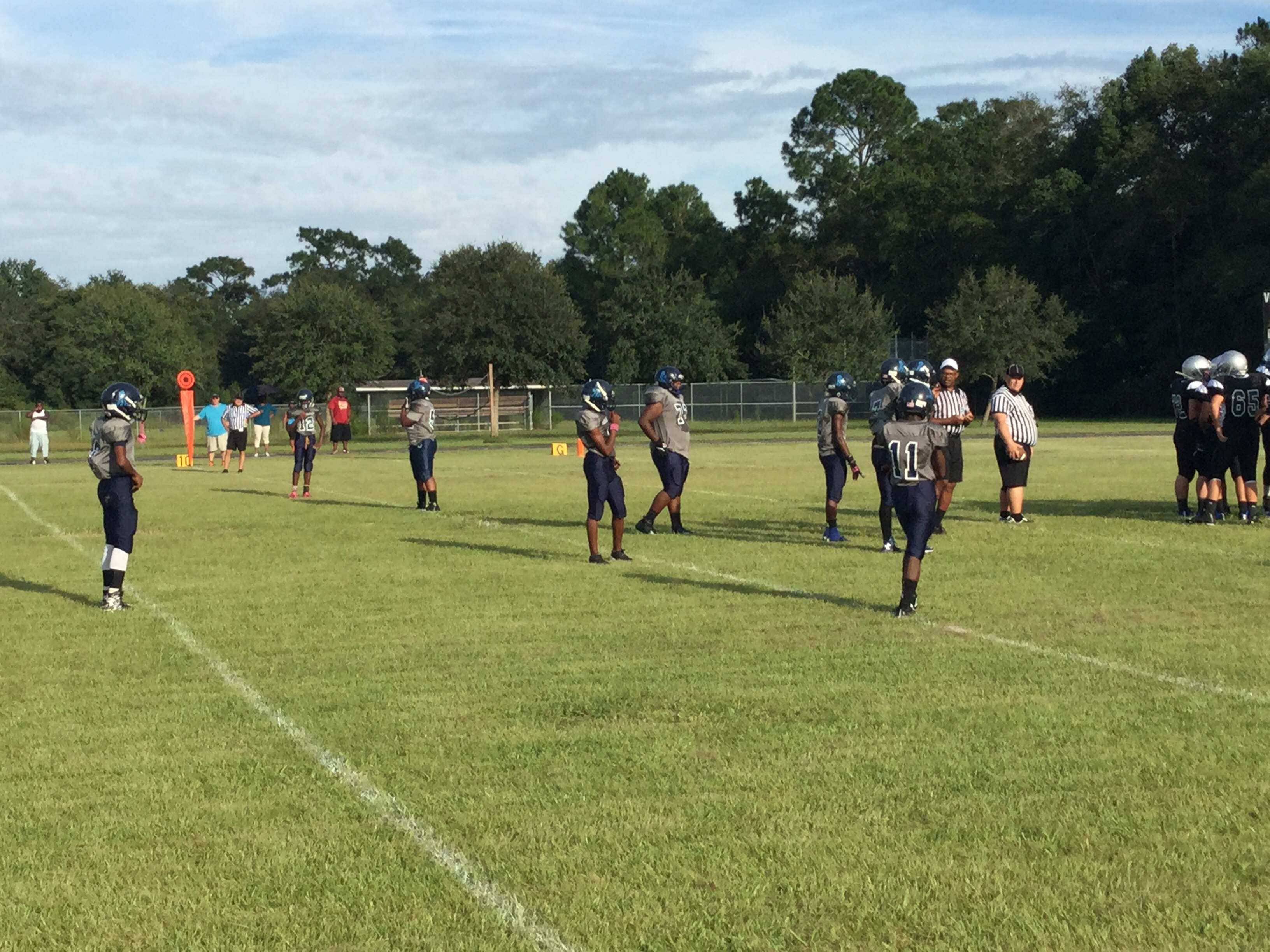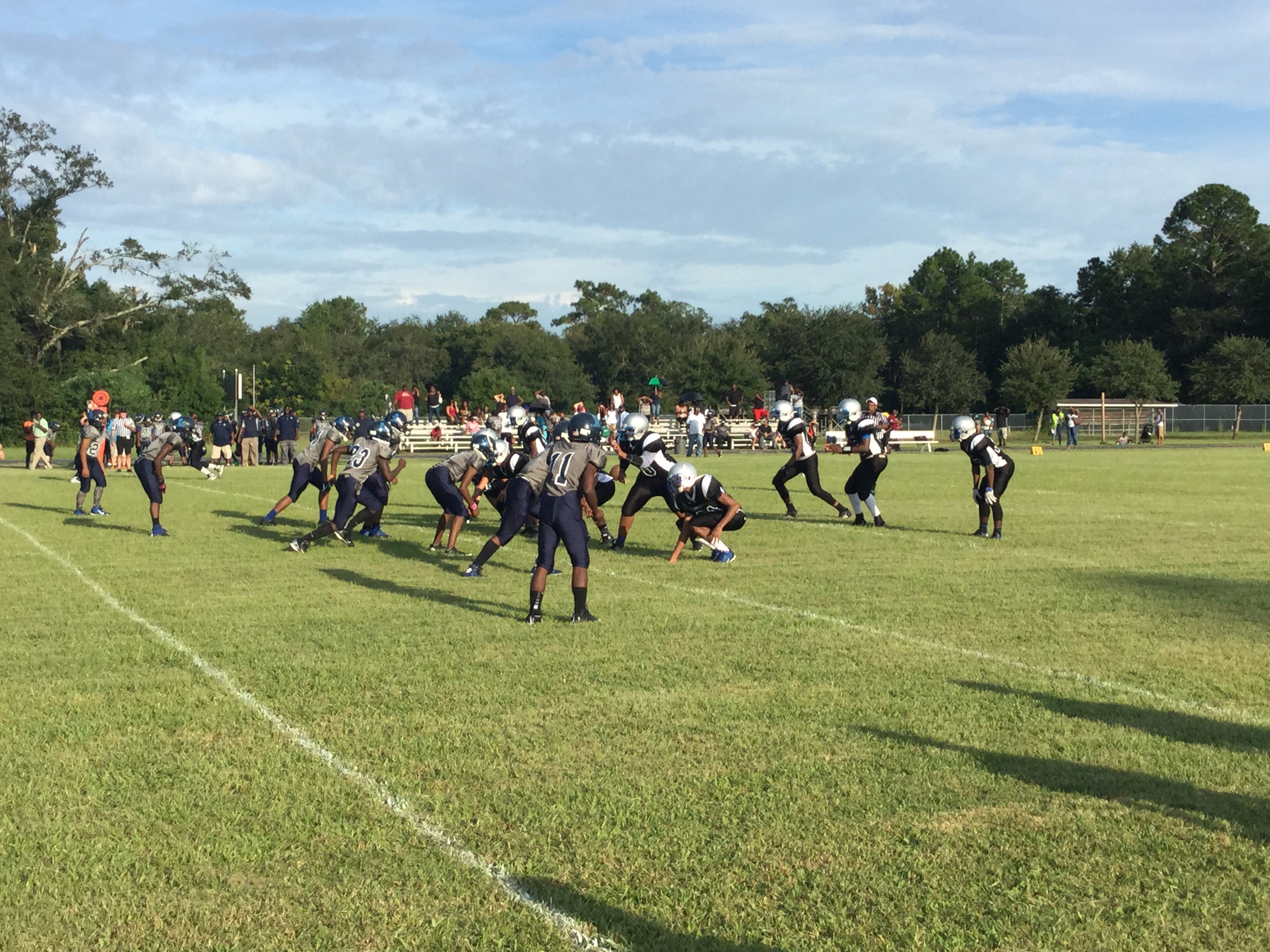 Ribault would respond with a drive of their own, going deep into Buccaneer territory but their drive stalled inside the five yard line as Oceanway’s defense held on a goal-line stand.Ribault’s defense would score first on the afternoon when they forced Oceanway to begin their drive out of their own end-zone. Three plays later the Trojans defense pressured Gelsey and was able to score a safety.