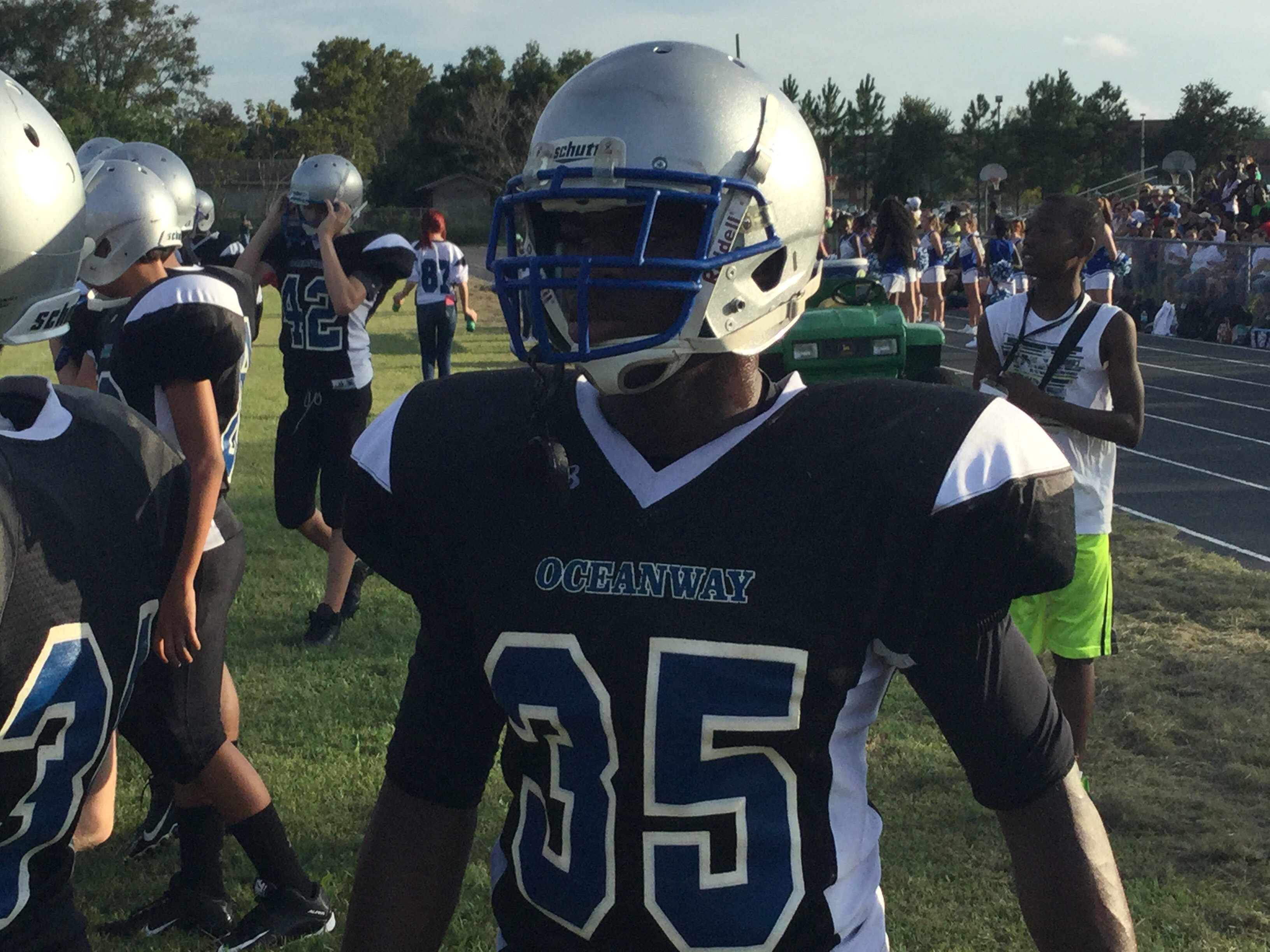 Oceanway’s Coach Jimenez credited his team’s growth as the reason his team is now 2-0 on the season. ” We started off struggling in many aspects of the game. But since the jamboree we’ve really focused on tackling, formations and just fundamental football, and these guys have stepped up”. Coach Ham is entrusted with a defense that has yielded just 17 points in two games thus far. Coach Ham credits the play makers on the team.
