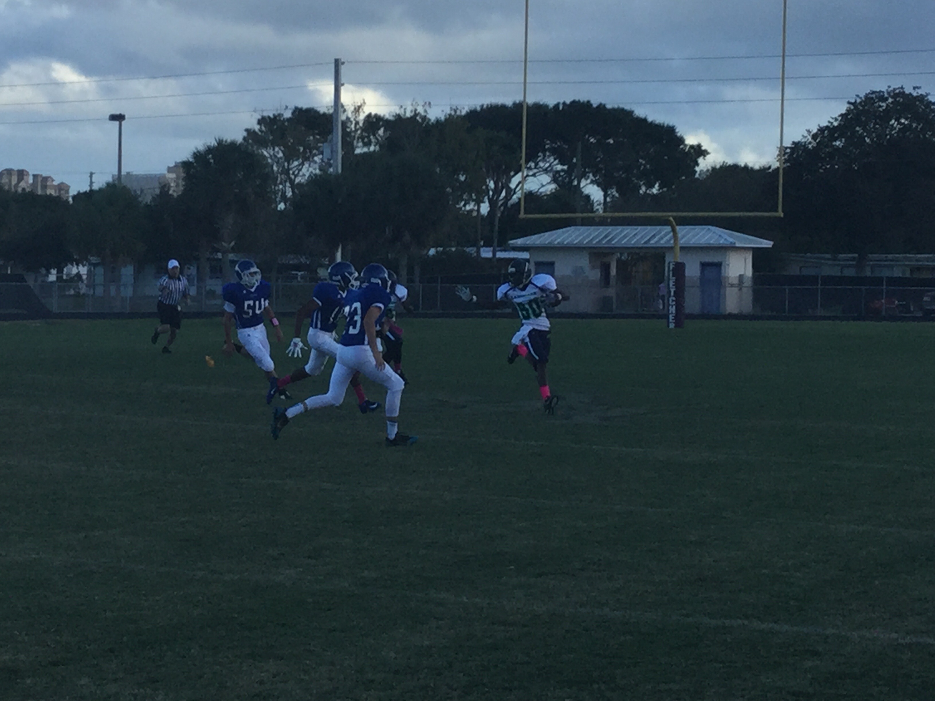 Fletcher and Landmark Middle School have both enjoyed success this year on the football field. Fletcher, a team ranked #2 in our Middle School Power Rankings, came into the game with Landmark at 5-0. Landmark, who is ranked #4 in the Power Rankings came into the contest at 5-0 as well, setting the scene for what many thought would be an epic battle at the beach of unbeatens.