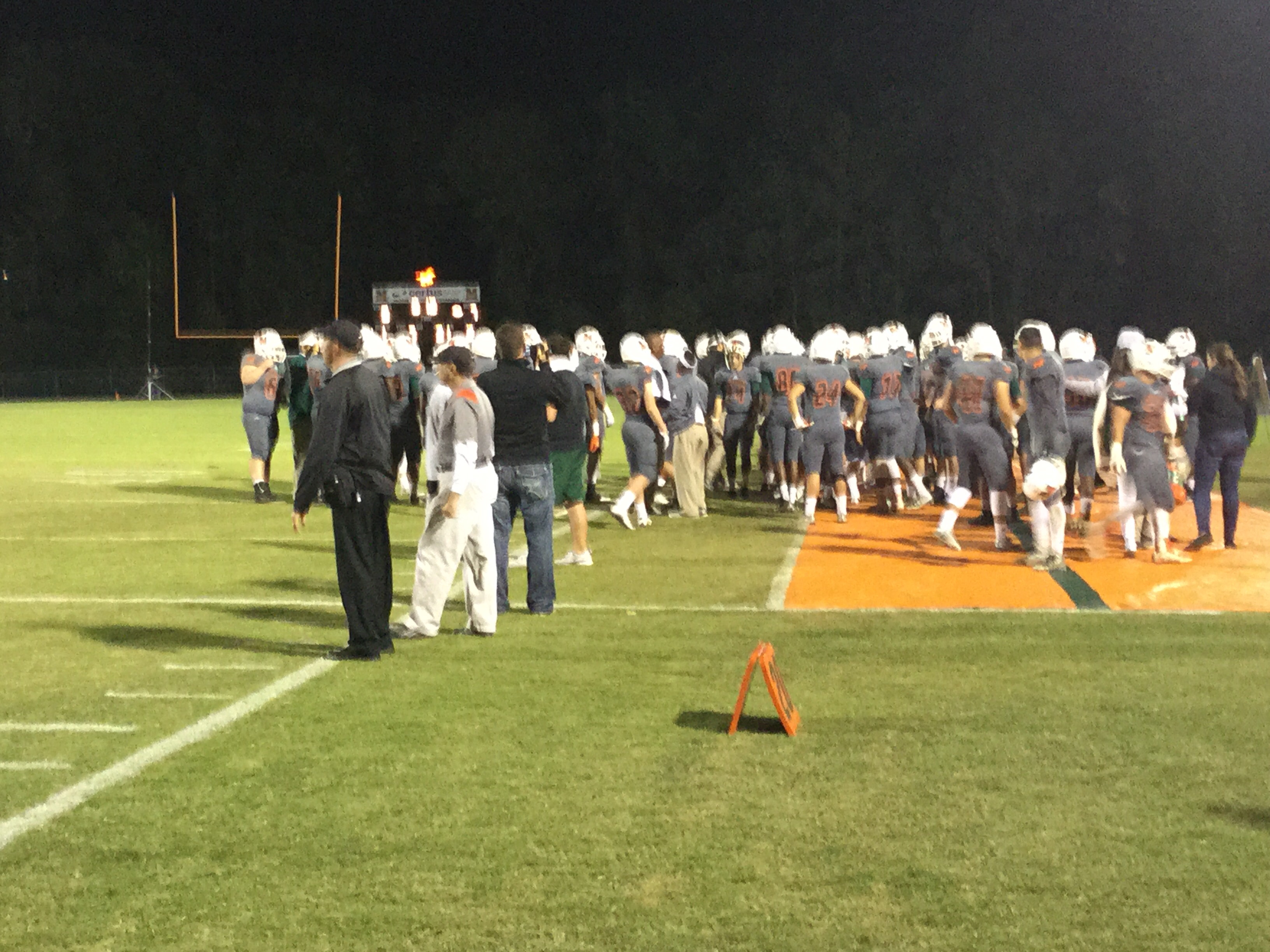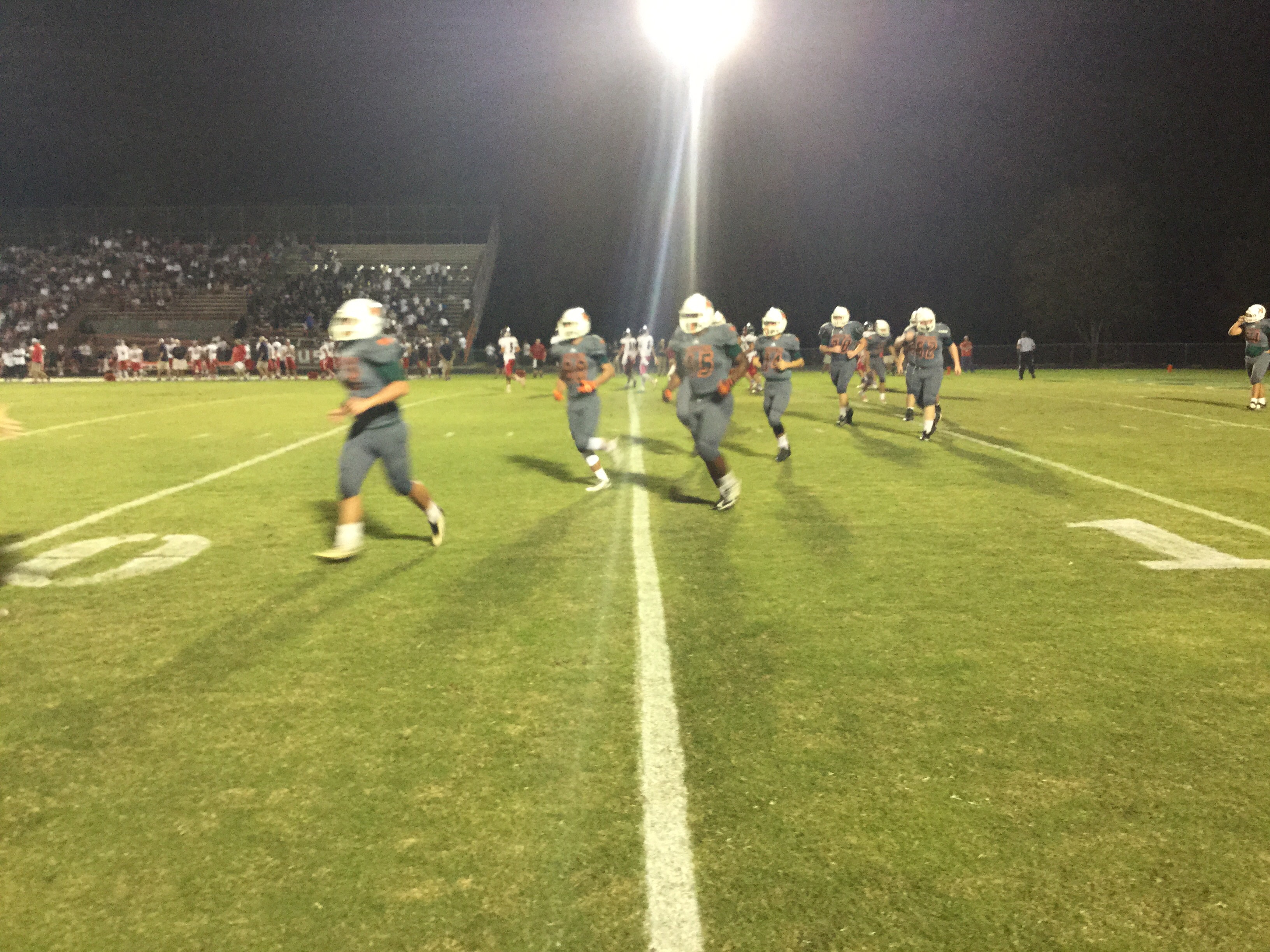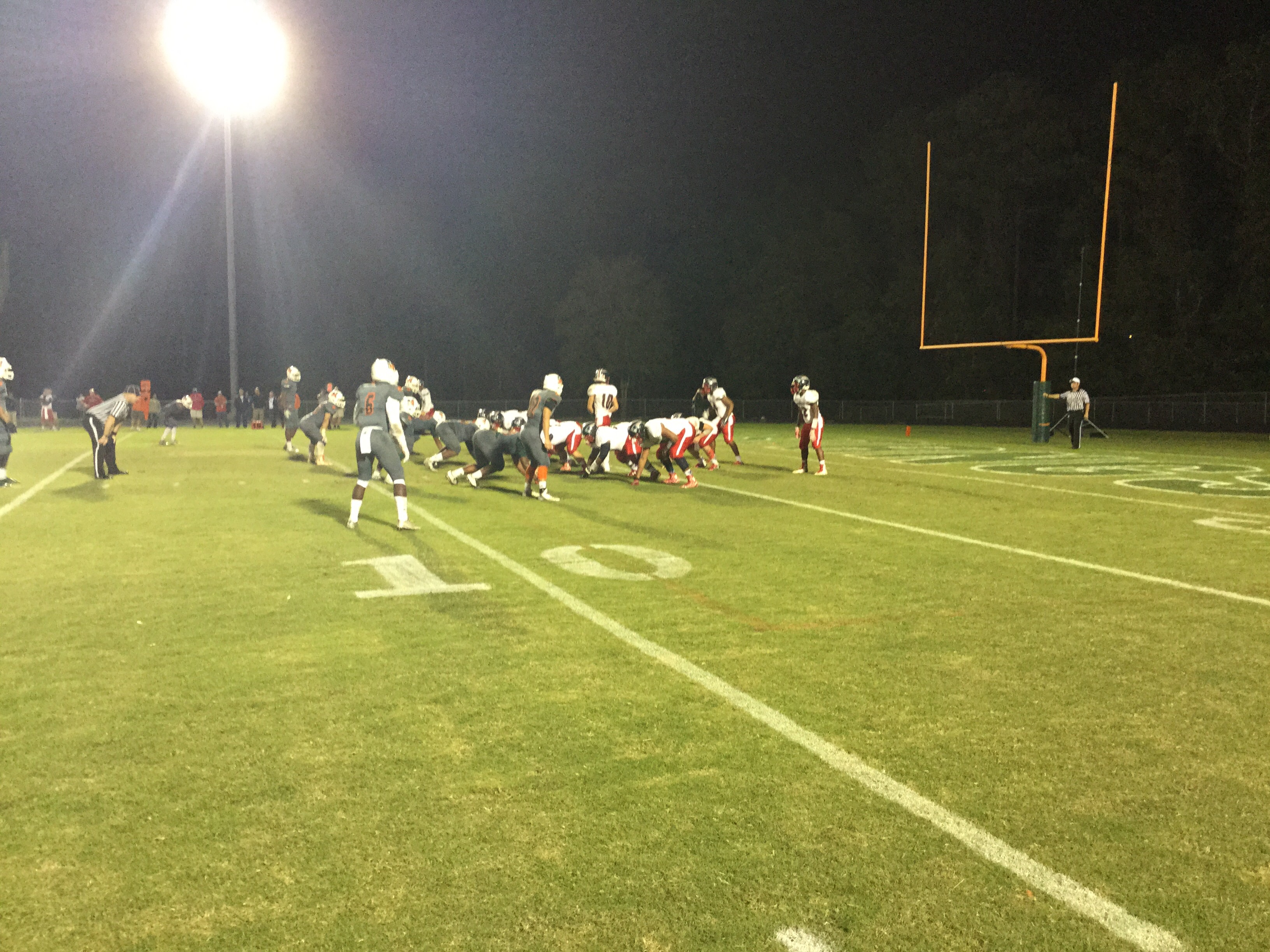 The Mustangs dominated the Patriots over powering them on the defensive line. Lake Brantley found little running room up the middle with draws, and dives. When they attempted to get outside the Mustangs swarmed and gang tackled. It was a flawless performance on defense.