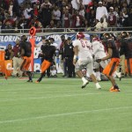 There was a sense in the press box that Miami was going to win the game no matter what. Not because they were the better team, but rather because they always win it. Booker T had won three straight titles. And even with a young team and new head coach, this was the sentiments before and during the game. Even at half time with Raines dominating the affair the mood was as if a storm was brewing.Raines lead Booker T 10-7 at halftime of the FHSAA State Final Game. Raines received the kickoff and drove to midfield when August Debiase threw an interception . Debiase had thrown two interceptions in the game up to that point, one of which was returned for a 100yd interception return by Booker T’s Marquis Decius to put the tornadoes up 7-0. Debiase’s two picks stalled two drives as Raines dominated the game in time of possession, and yards.