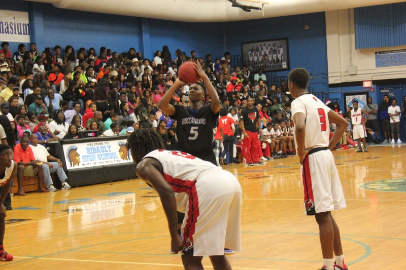 The moment the game tipped off Andrew Jackson would control the tempo of the contest. Jackson would storm out to an early lead thanks to the play of their guard #1 Ricard Leggett. Leggett ran the offense from the point and attacked the basket with reckless abandon. When the Buccaneer defense would collapse to help in the paint, Leggett would dish to his teammates for layups. If Leggett missed his teammates were there for the the rebound or put backs. The Tigers would lead by as much as 9 points in the first quarter but First Coast would weather the early storm and get buckets of their own. The Bucs were led by Maleke Lyle who knocked down tough jumpers to close the Tiger lead to 18-12 after one period.