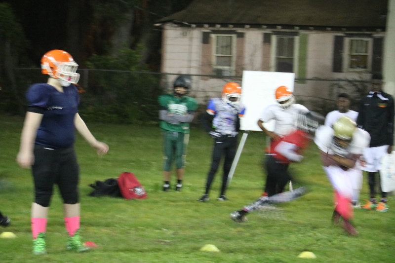 The 14 U team seemed to be having the most fun out of the groups, tossing around the football and posing for their snap chat pages. The 6U players and coaches looked like they were back on the gridiron in 90 degree August weather, as they went over drills and assignments. The same fervent enthusiasm displayed when the kids first put on the pads for the fall is the same enthusiasm displayed at their first all star practice. The 6U kids showed just as much enthusiasm as the coaches too.