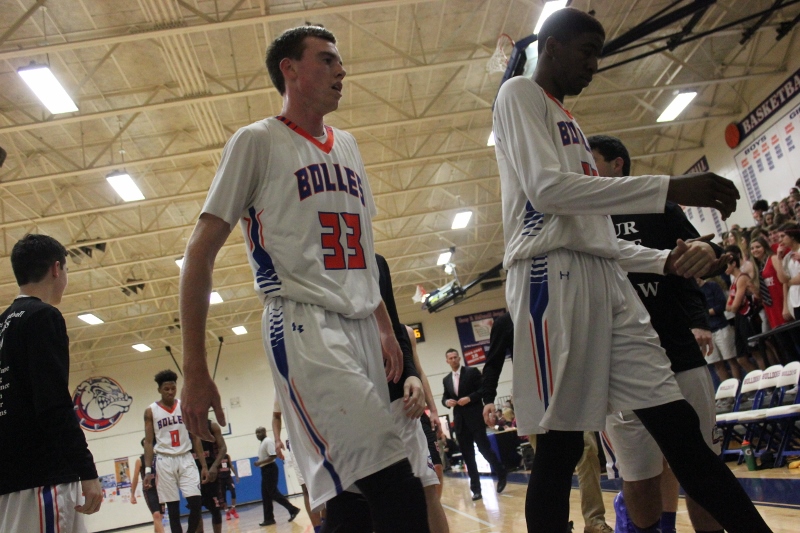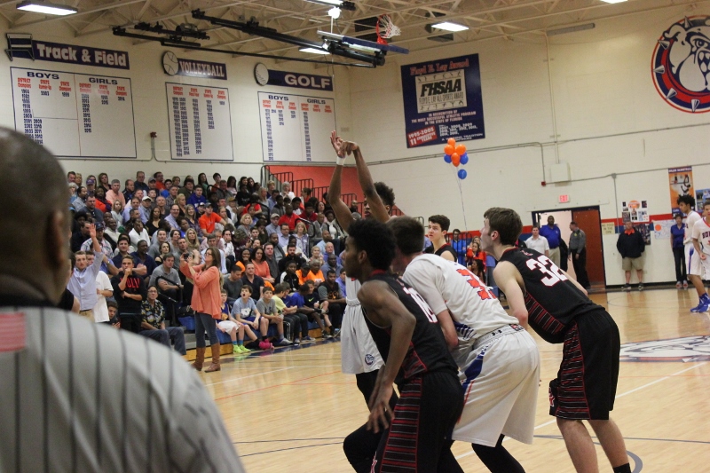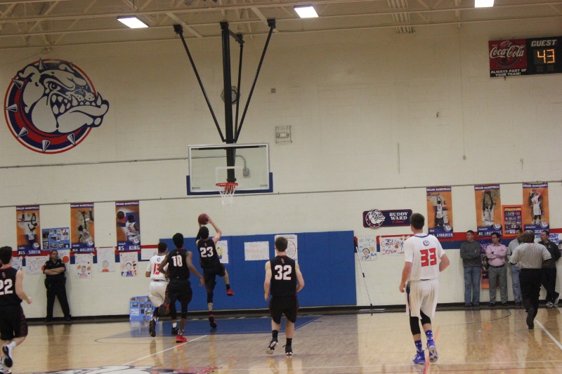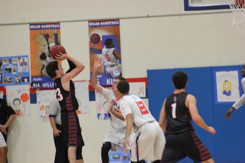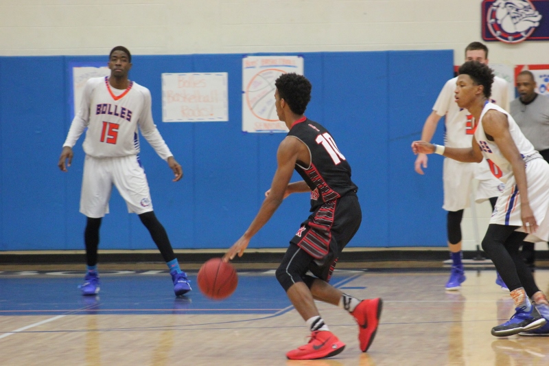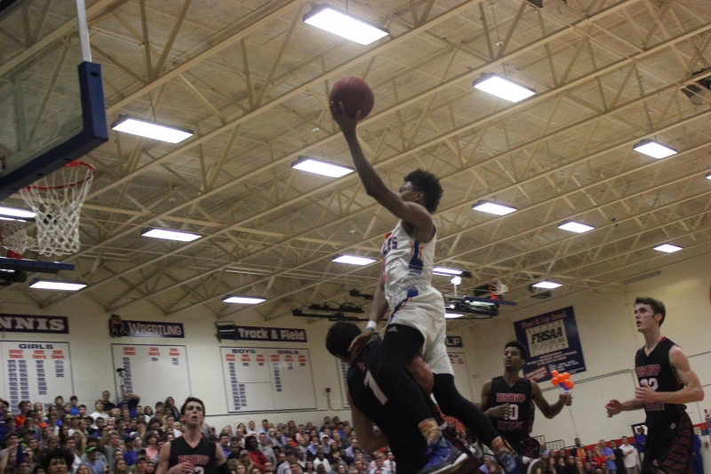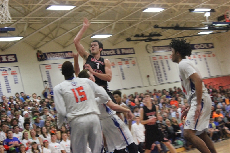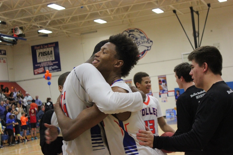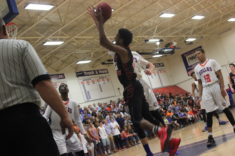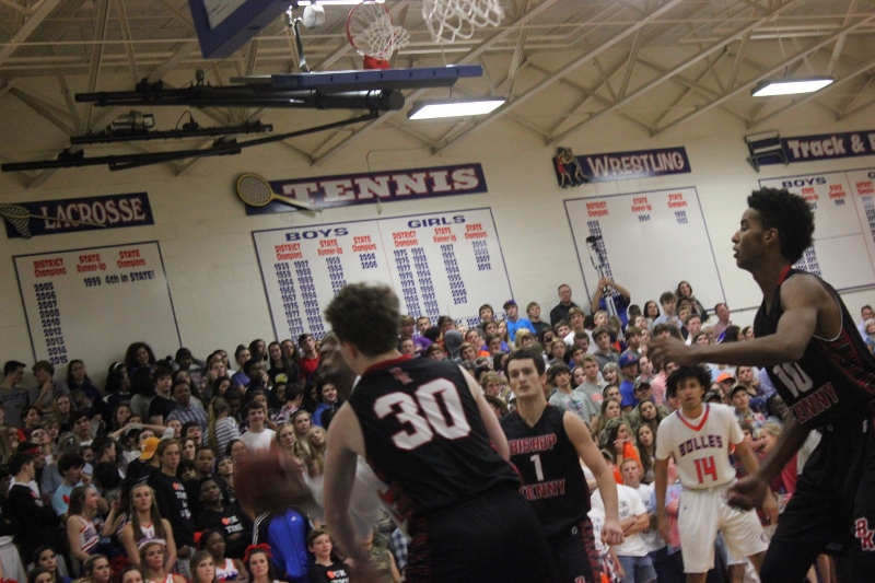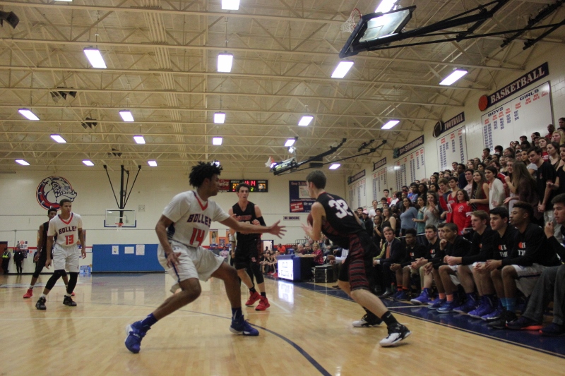 Bolles High School- Jonathan Dewane scored 19 points, and Collin Smith added 17 points as the Bolles Bulldogs defeated the Bishop Kenny 64-53 in front of an enthusiastic crowd mixed with Crusaders and Bulldogs. Bolles and Kenny went back and forth trading baskets in the beginning of the game. Bolles would lean on Dewane who led them at halftime with 13 points. Bishop Kenny was led by #1 Christian Carlyle who had 10 points at the half. He would finish with 19 points as well. Carlyle slashed to the basket hard but finished shots with soft floaters. Dewane would convert offensive rebound layups, and hit shots from mid range. These two performances would have both teams playing at high levels, but Bolles would lead 36-27.
