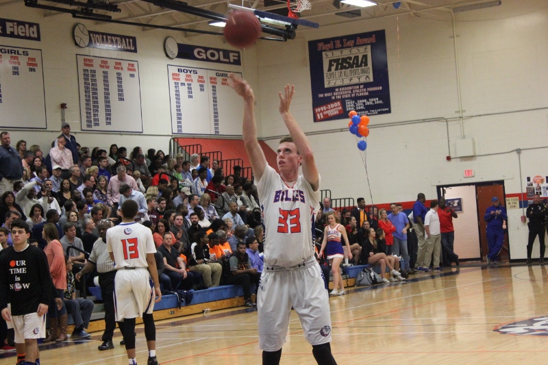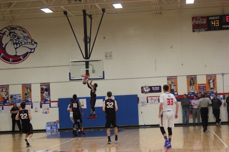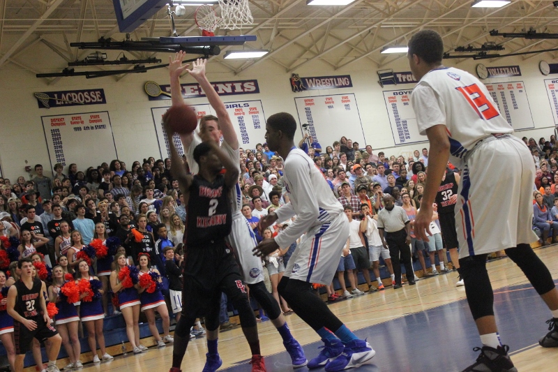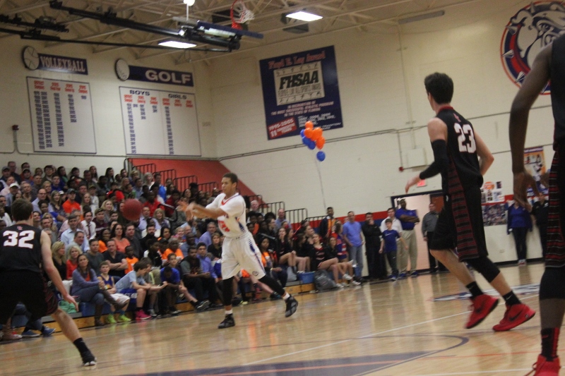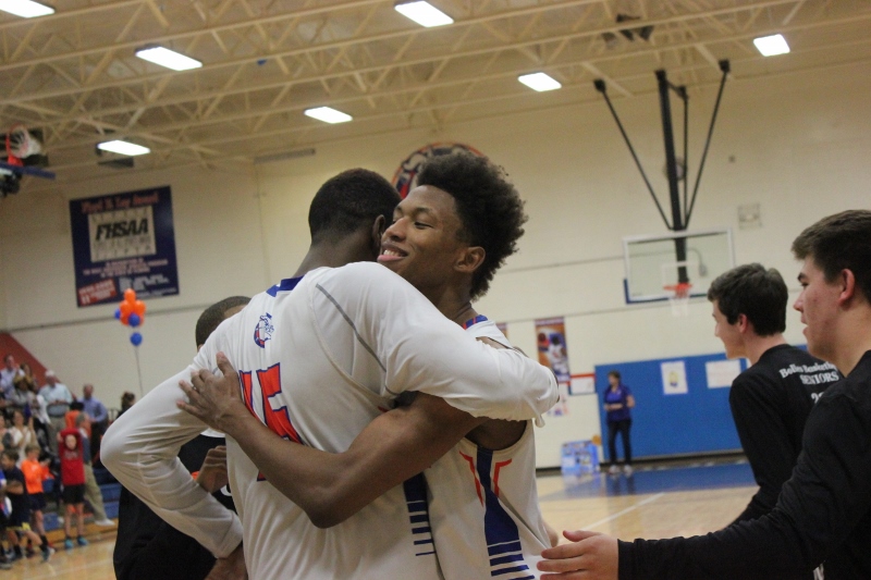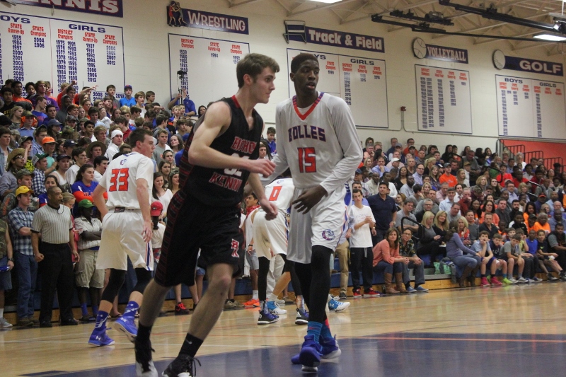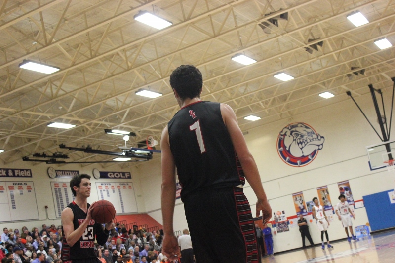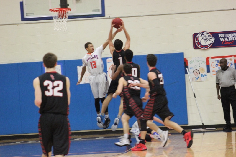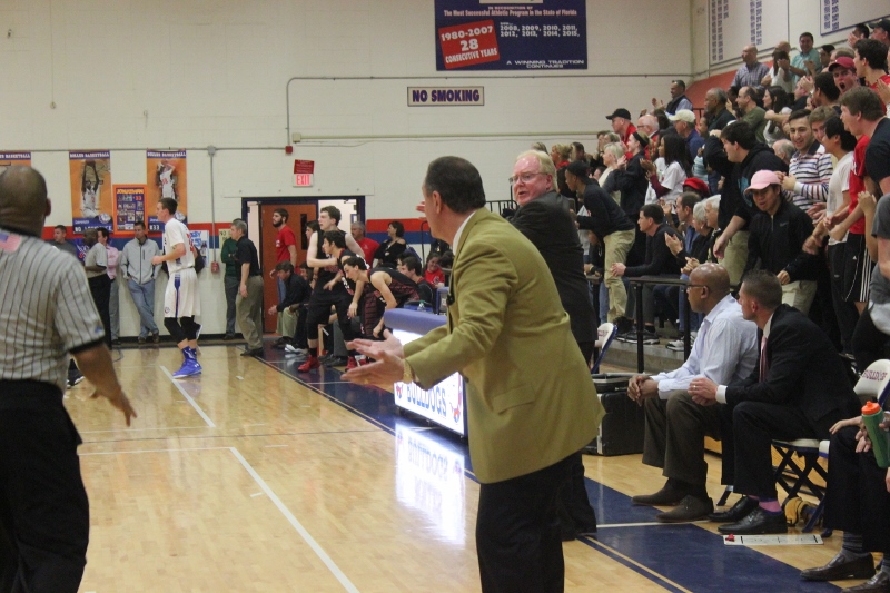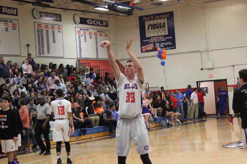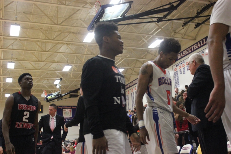 Bolles High School- Jonathan Dewane scored 19 points, and Collin Smith added 17 points as the Bolles Bulldogs defeated the Bishop Kenny 64-53 in front of an enthusiastic crowd mixed with Crusaders and Bulldogs. Bolles and Kenny went back and forth trading baskets in the beginning of the game. Bolles would lean on Dewane who led them at halftime with 13 points. Bishop Kenny was led by #1 Christian Carlyle who had 10 points at the half. He would finish with 19 points as well. Carlyle slashed to the basket hard but finished shots with soft floaters. Dewane would convert offensive rebound layups, and hit shots from mid range. These two performances would have both teams playing at high levels, but Bolles would lead 36-27.
