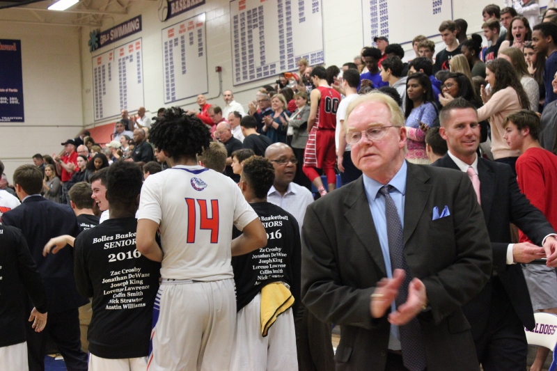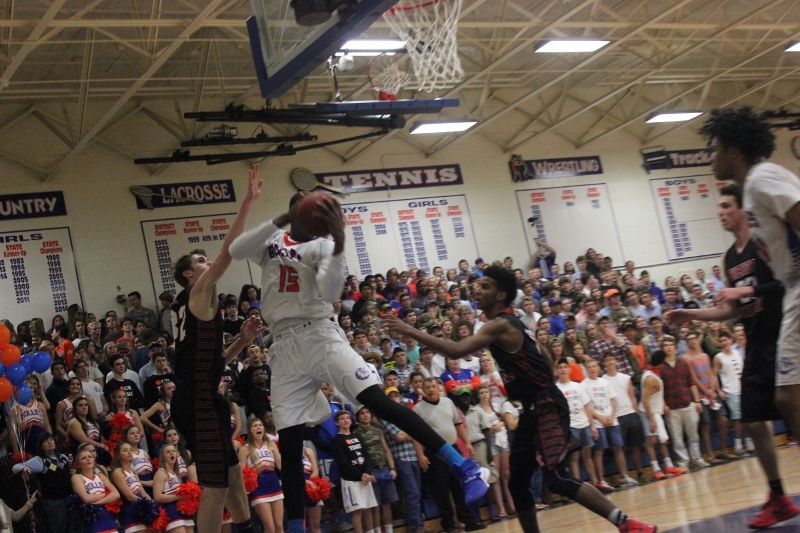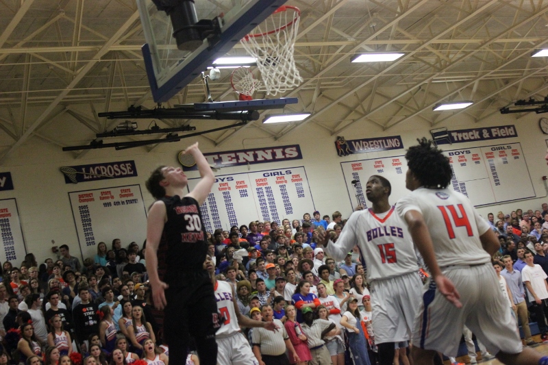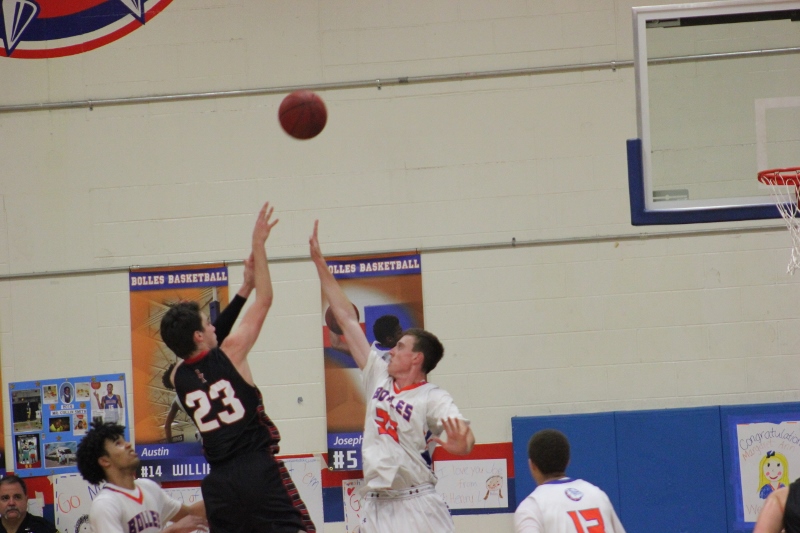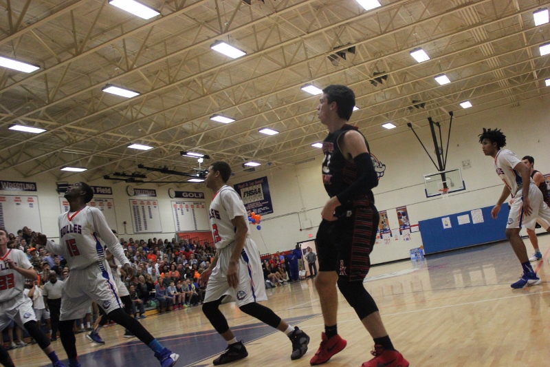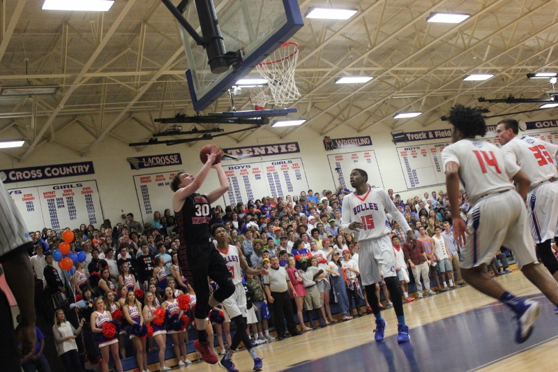 In the second half Bolles took advantage of their decisive height advantage as Collin Smith controlled the paint. He contested shots, grabbed offensive and defensive rebounds, and finished plays with emphatic dunks. Smith’s play would ignite the already raucous crowd, propelling Bolles to an 11 point lead going into the fourth period.