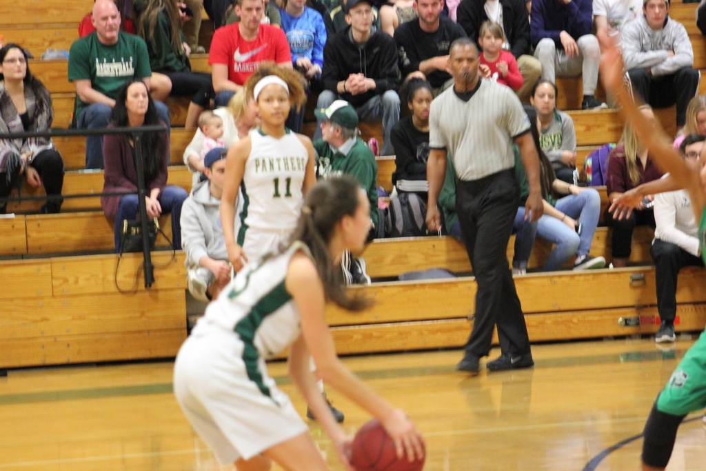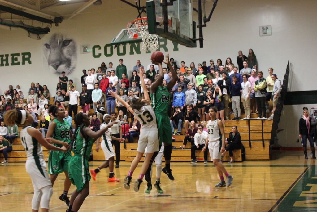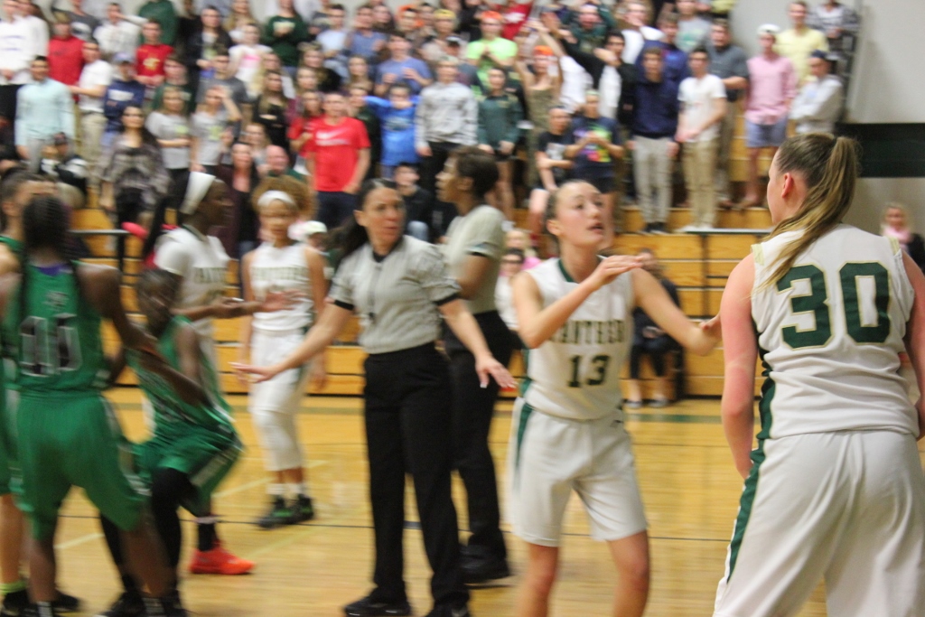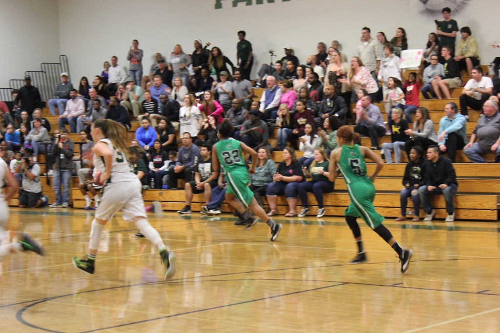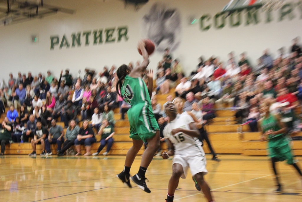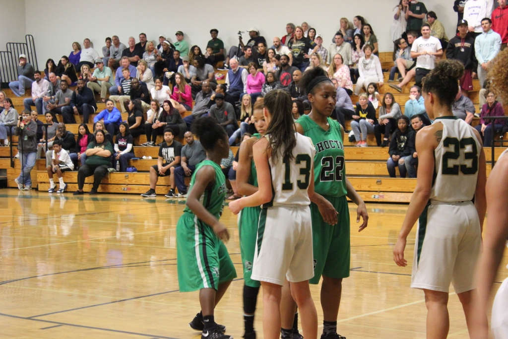 Choctaw’s defense stifled the Nease offense as well. ” We came into the game knowing we had to stop Sydney Searcy” said Choctaw’s Fingal, and for the most part they did that in the first half. Nease was forced to swing the ball to other players who could not knock down shots. They struggled from the field mightily missing their first seven shots of the game. They would finally get on the board at the end of the first period with a three pointer in which the crowd erupted with enthusiasm. They were poised for their Lady Sharks to complete the seemingly insurmountable comeback as they roared with every shot made, every loose ball, every block, just like the one Searcy had against the much taller Fingal in the third period.