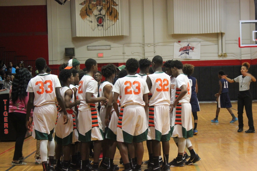 Bucs #1 T.Saunders 3ptr ties game at 20 Comets #5 F.Davis hits layup at the buzzer to go up 2 @half @DuvalSports pic.twitter.com/yQZUXmKeoG