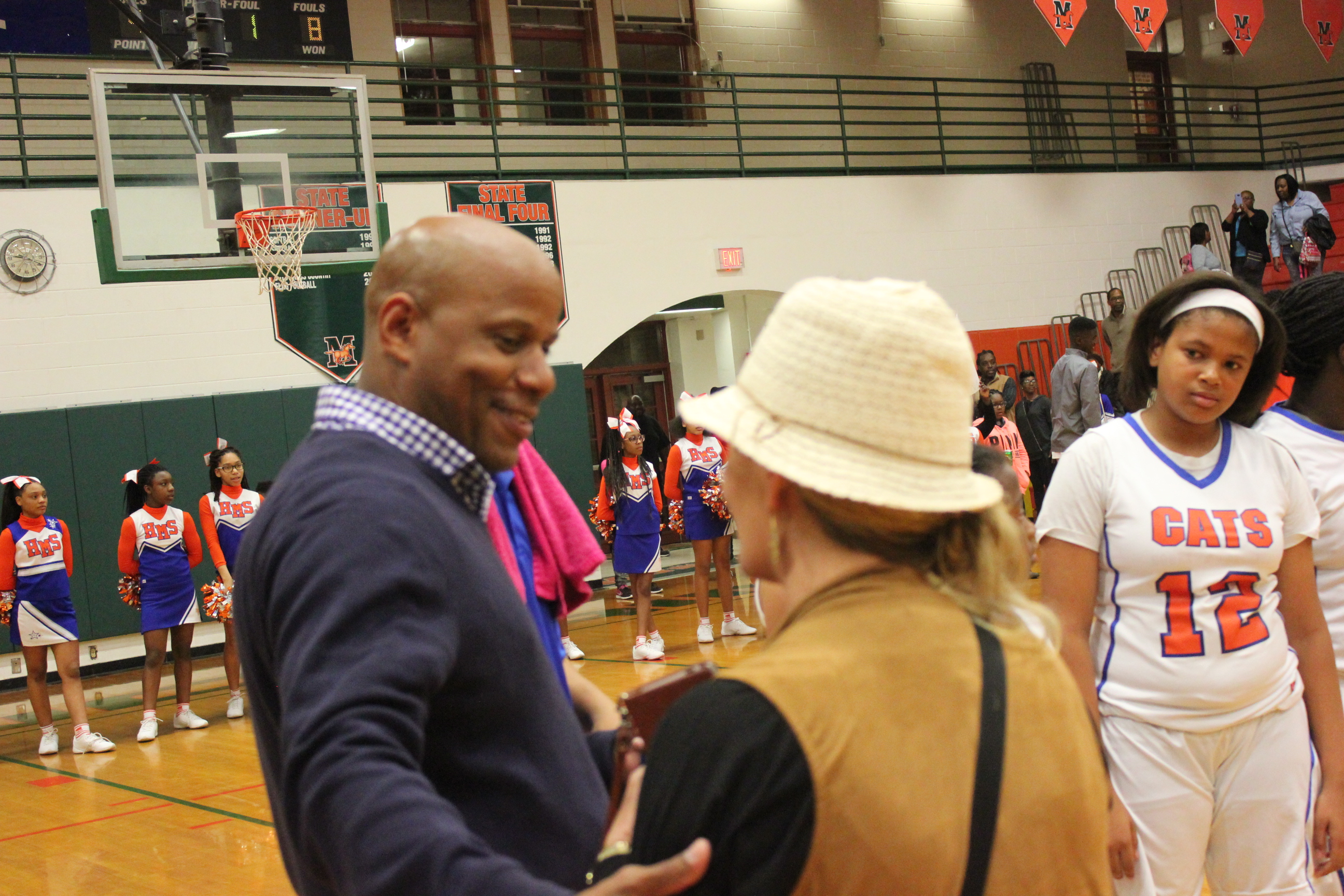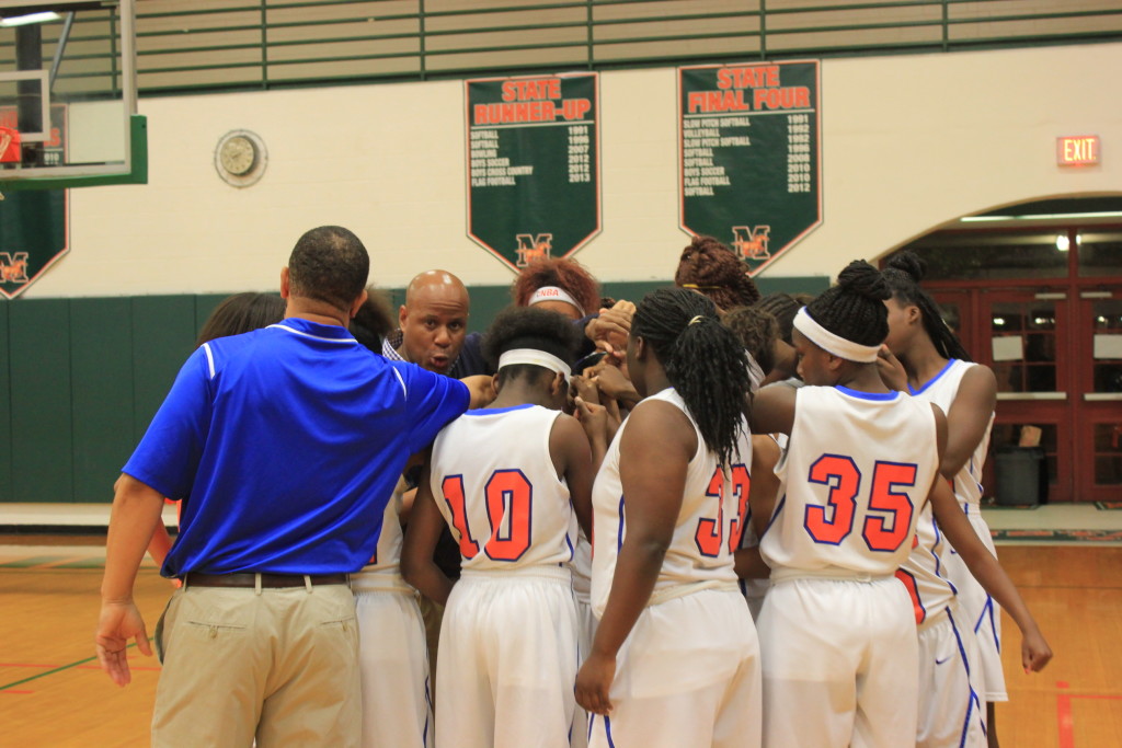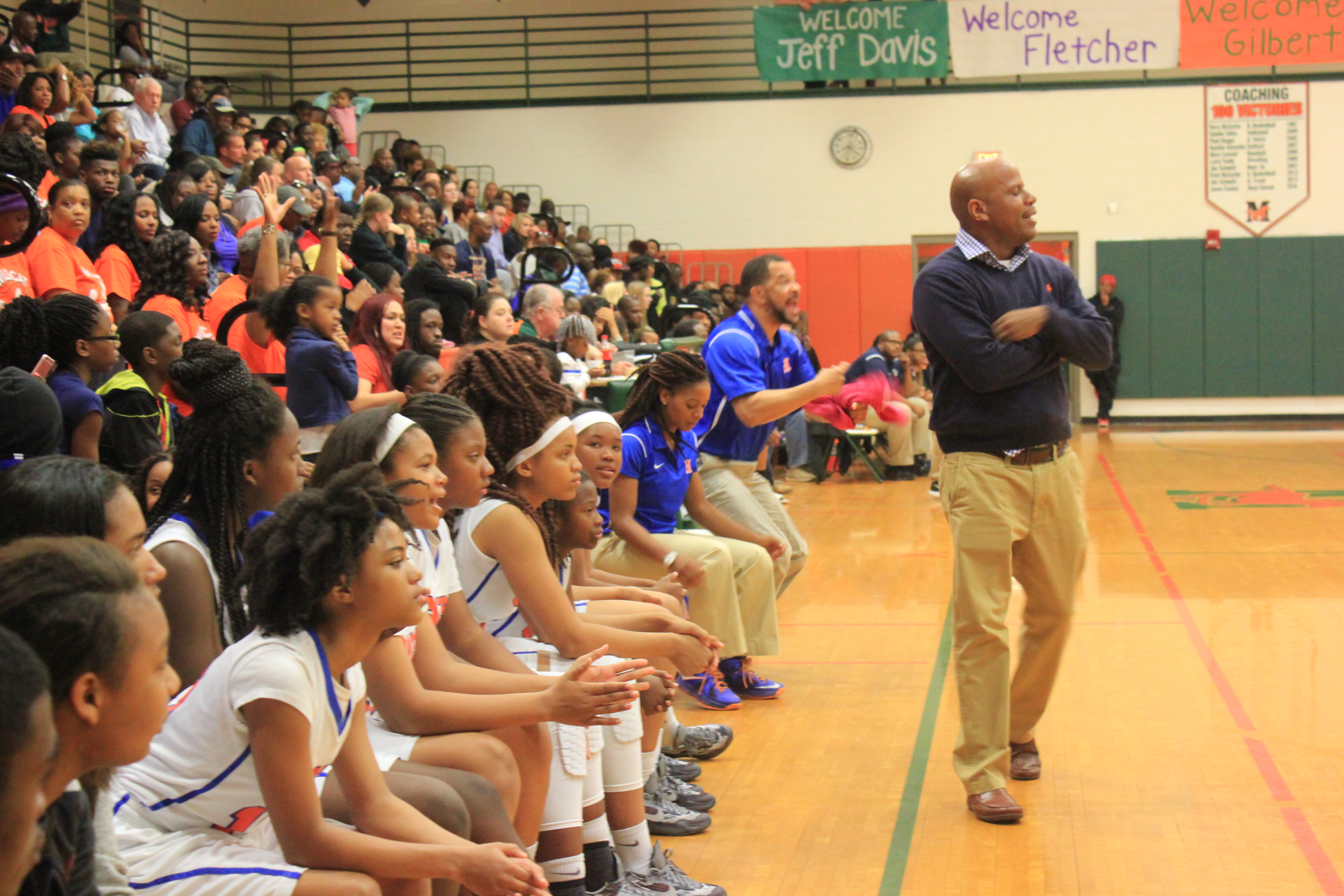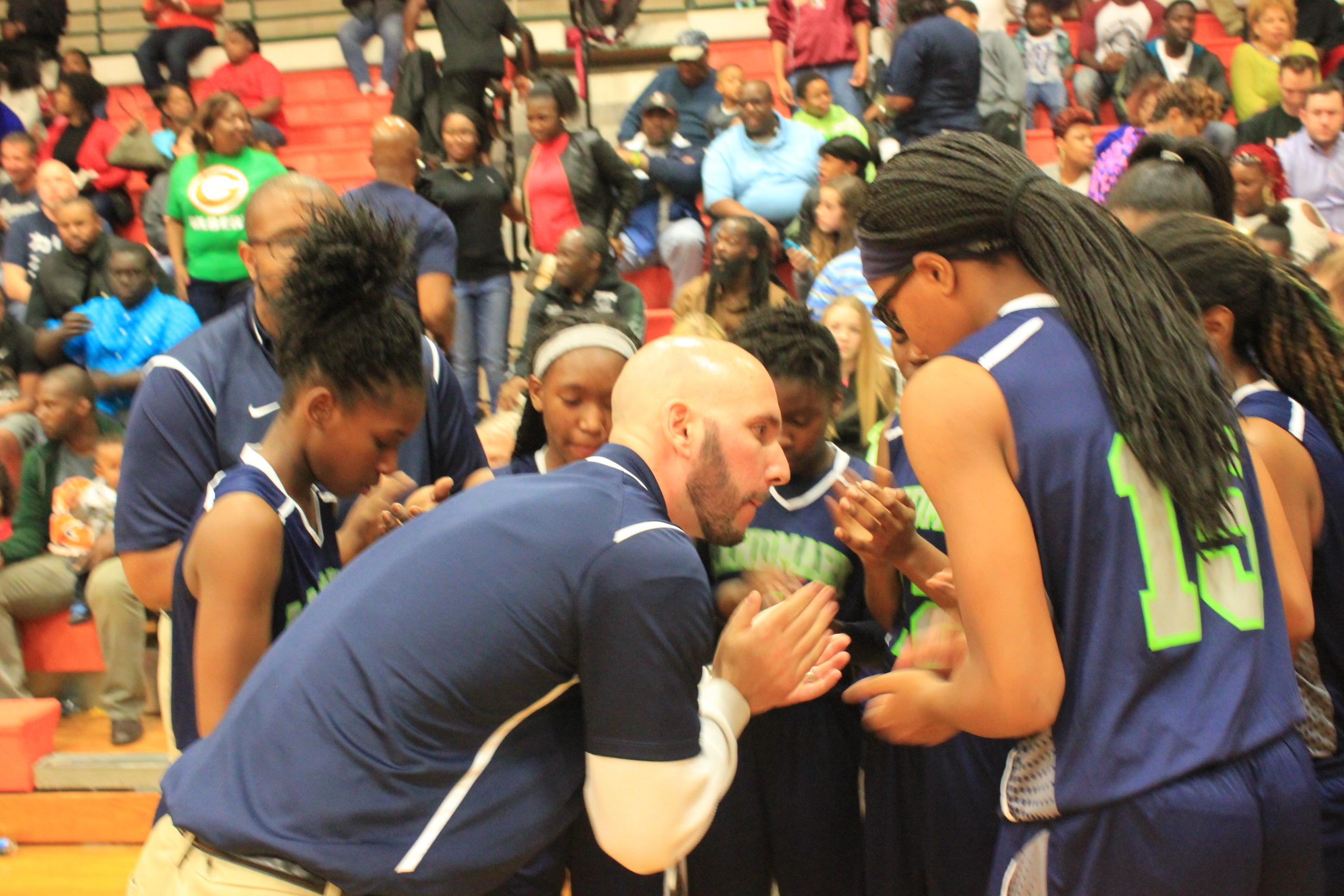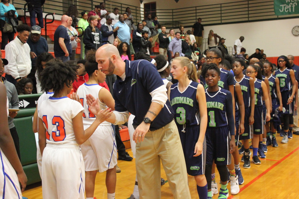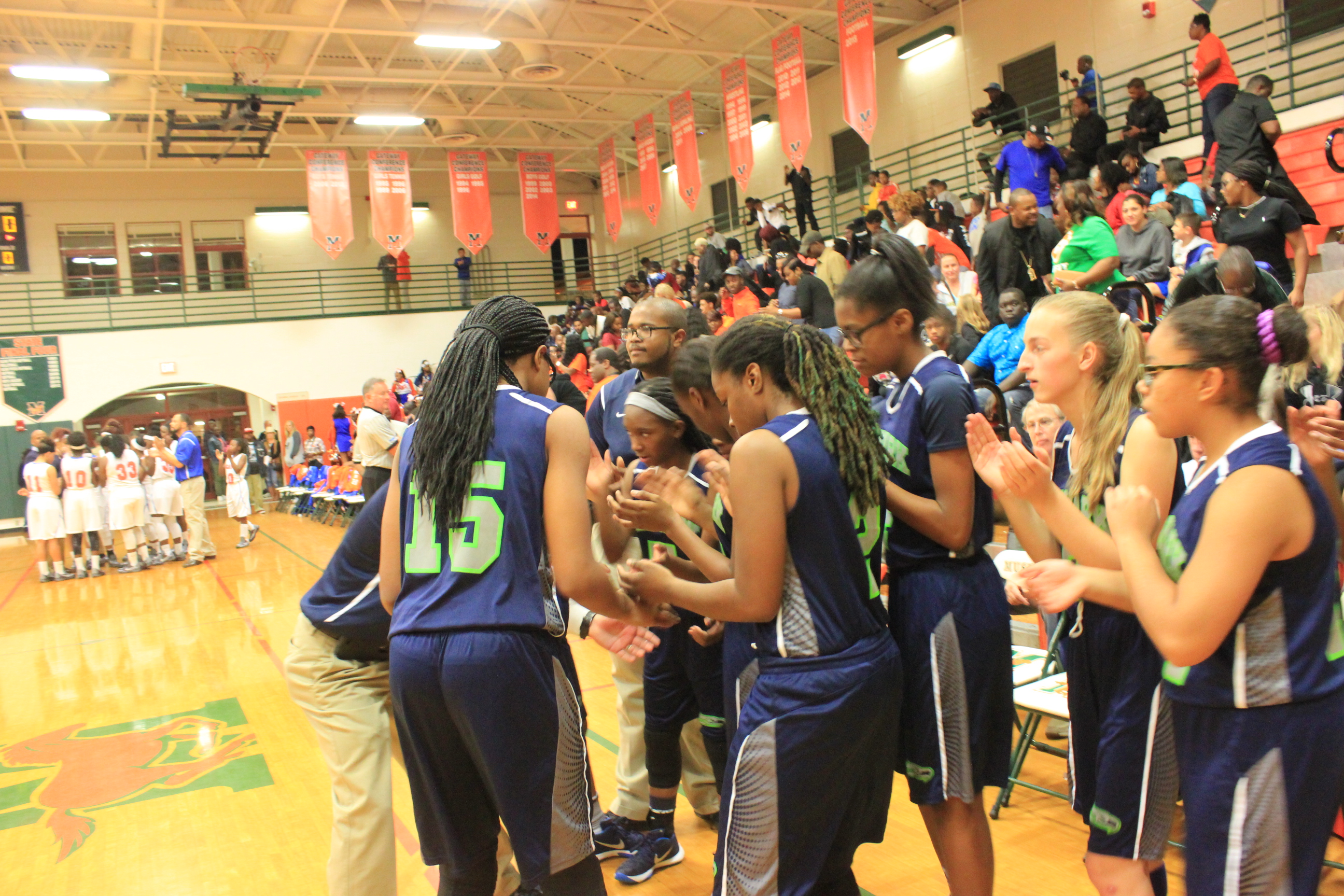 But it wasn’t just offense, the wildcats defense completely shut down the Landmark offense as well. Seahawk guards were hounded in the back court, committing turnovers, and struggling to get shots off. Se’lah Reddick and her teammates swarmed the ball, making it even harder for seahawks players to execute plays. Reddick would also benefit on the offensive end, making baskets from assists from Allen. At halftime the score stood at 23-3 Highlands! Coach Smith of Landmark gave his girls an inspiring pep talk at halftime. He huddled them close and made sure to sit eye level with them in order to look into their hearts.