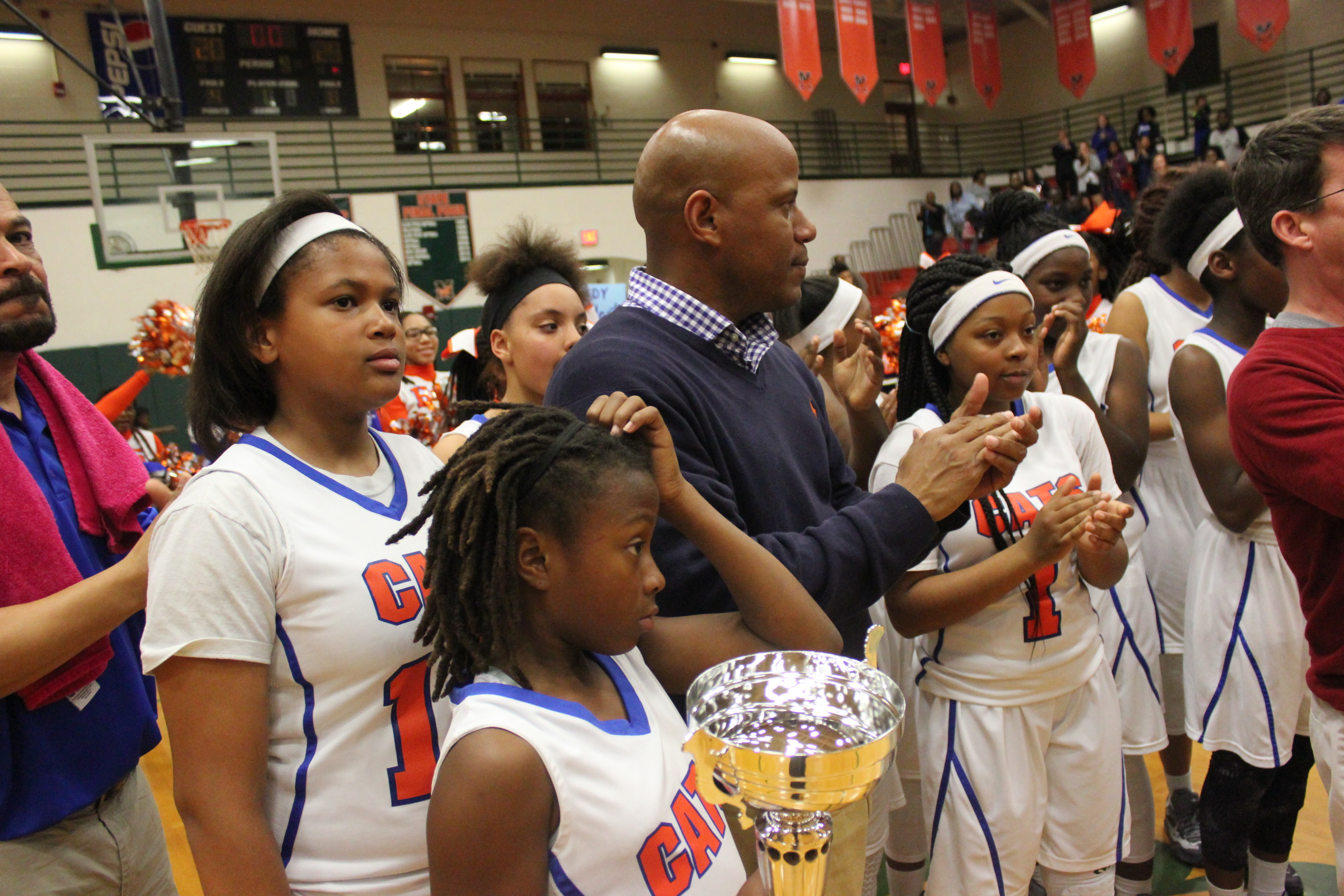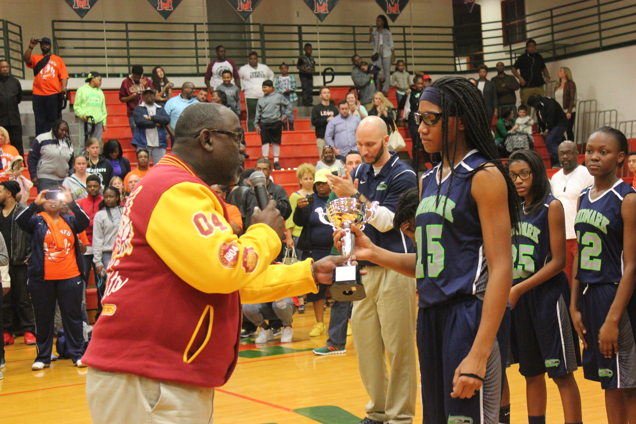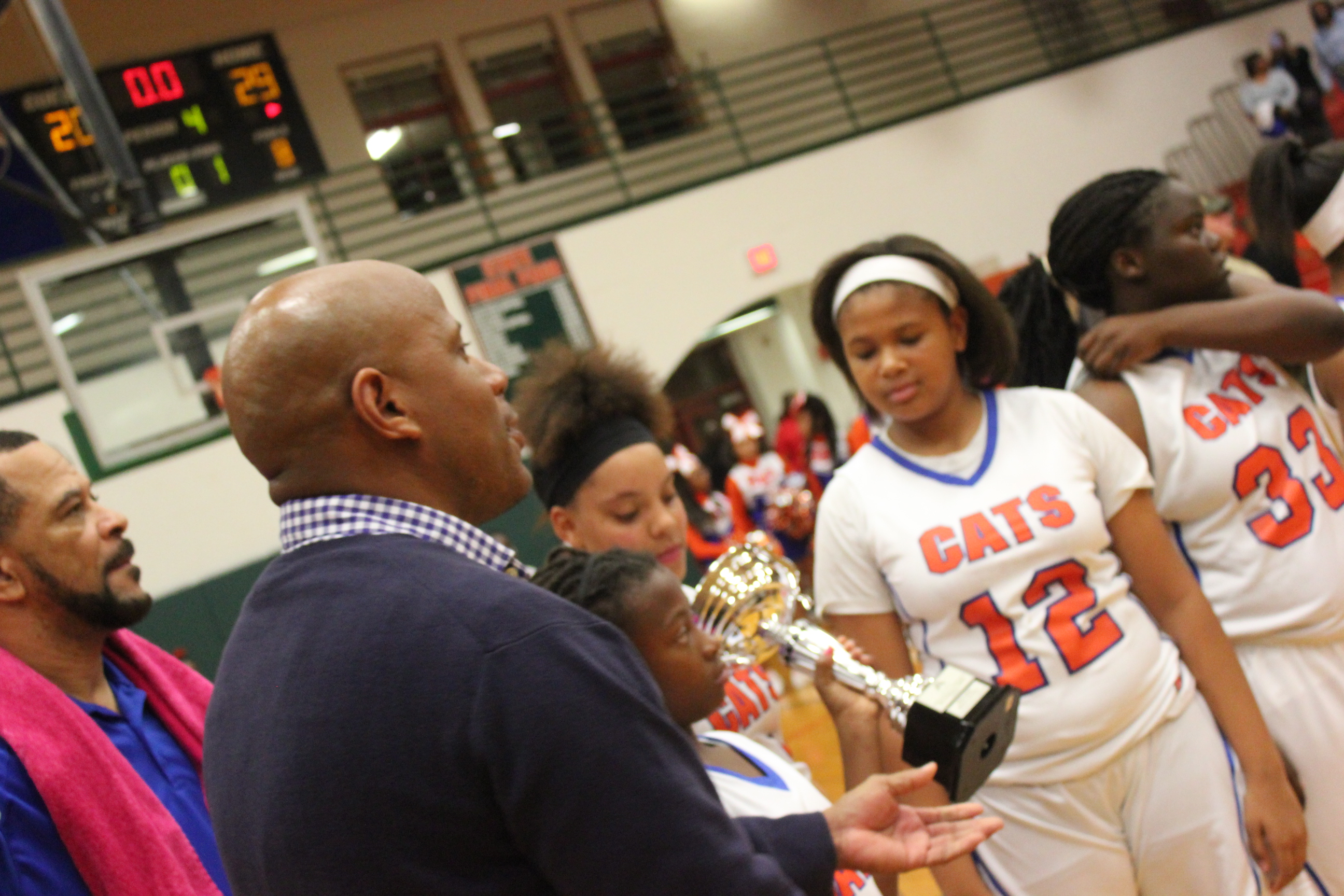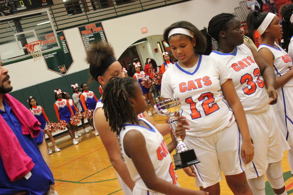 She established the low post with her frame creating mismatches, and she began to convert layups and second chance points with offensive rebounds. She began to have her way with the smaller forwards from Highlands, as Landmark initiated a third quarter run. The Seahawks scored 11 unanswered points thanks to the defense of the team including players like Aryalona Williams. Before anyone knew it, Highland’s 20 point lead had shrunk to 11 points by the start of the fourth 25-14. It was a valiant effort by Landmark as they showed why they were the second best team in girl’s middle school basketball. But hopes of a comeback would be slammed by the wildcats, as they stiffened their defense and took over the game for good. Nyla Allen would be named the MVP of the game, as the Highlands Wildcats with Coach Carter completed their perfect season.