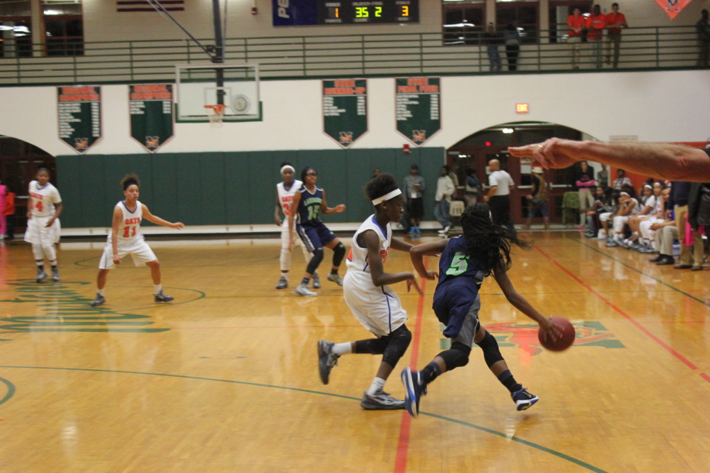 Landmark, winners of the East Division was superbly coached, and possessed arguably the best center in girls middle school basketball (Caitlin McGee). Any coach will tell you that there are two things that you just can’t coach, speed and size. Landmark possessed size which made them very dangerous. But they would discover fairly early that Highlands possessed the other immeasurable intangible… speed!