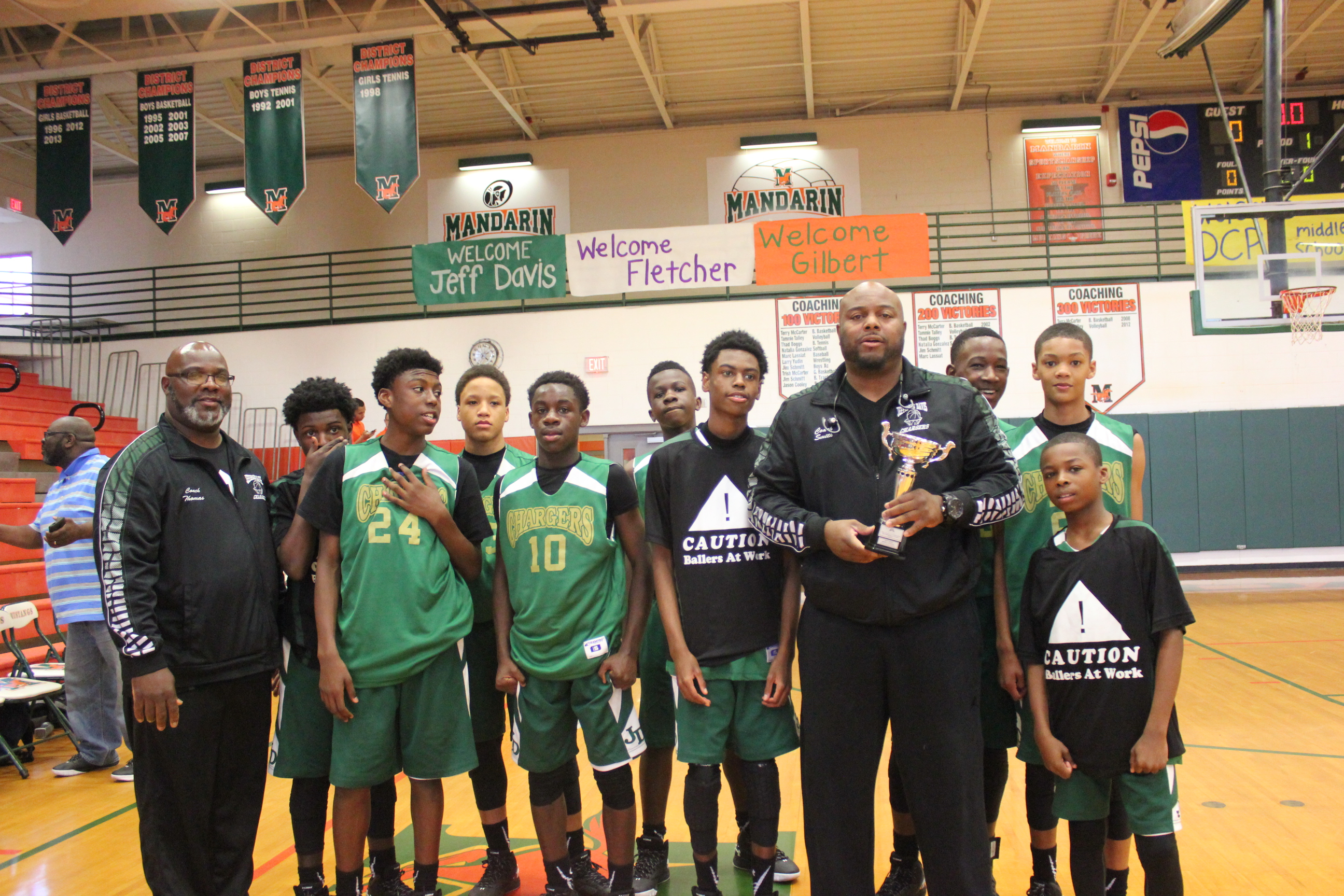 HC: George Thomas AC: Cedric Smith #10: Teron Haywood #5: Deatrice Milton of Jeff Davis basketball team @DuvalSports pic.twitter.com/acvrG8v7Ss