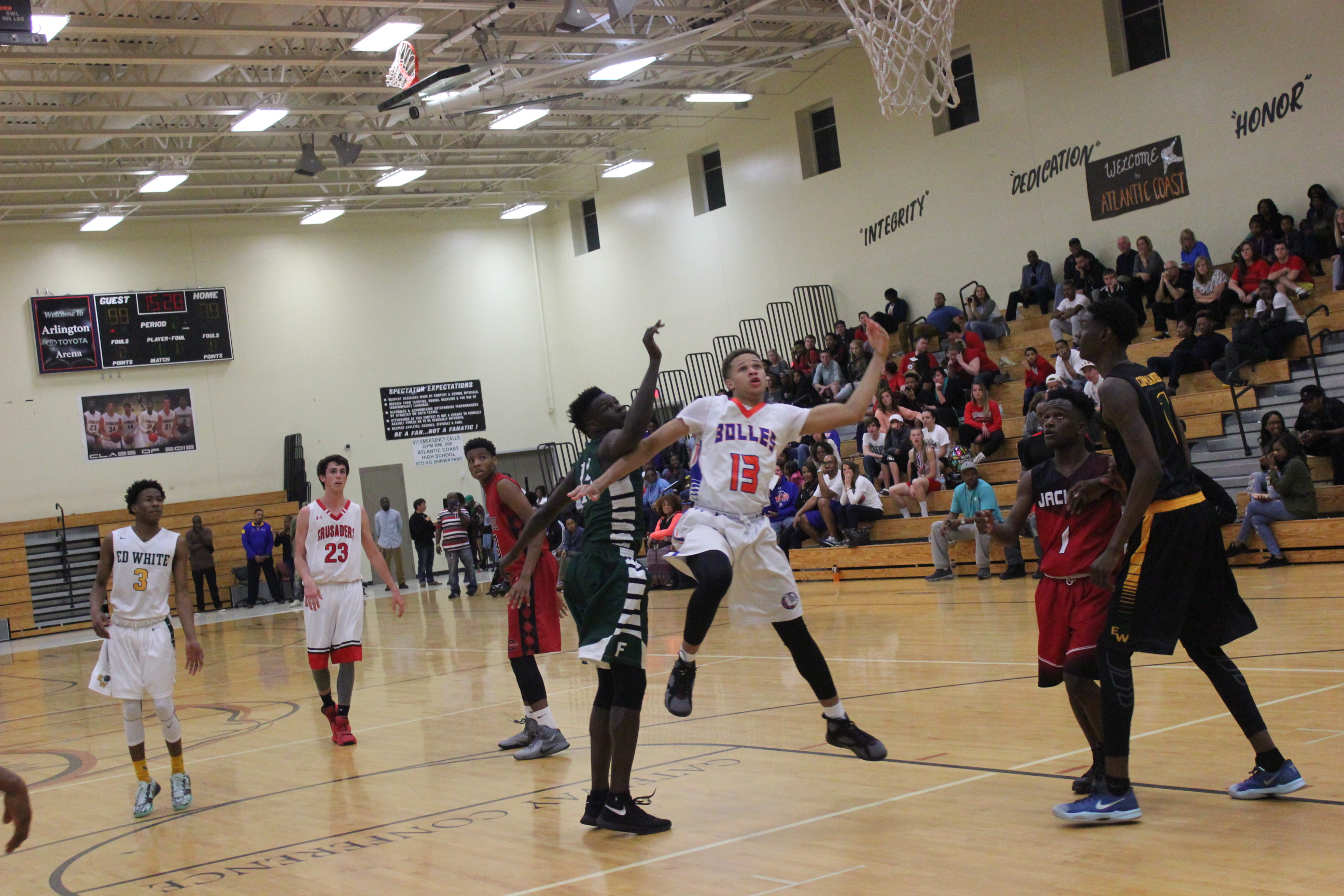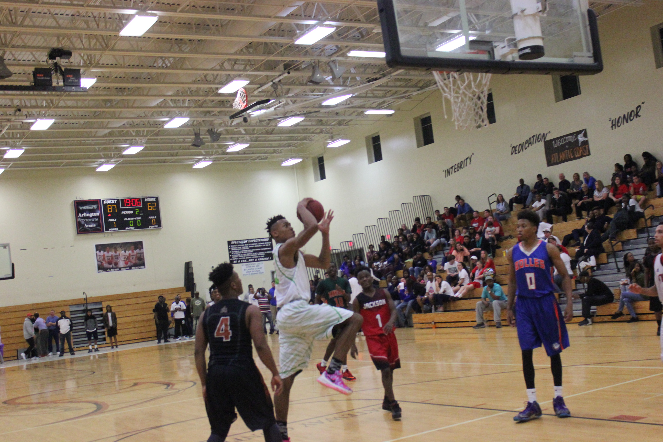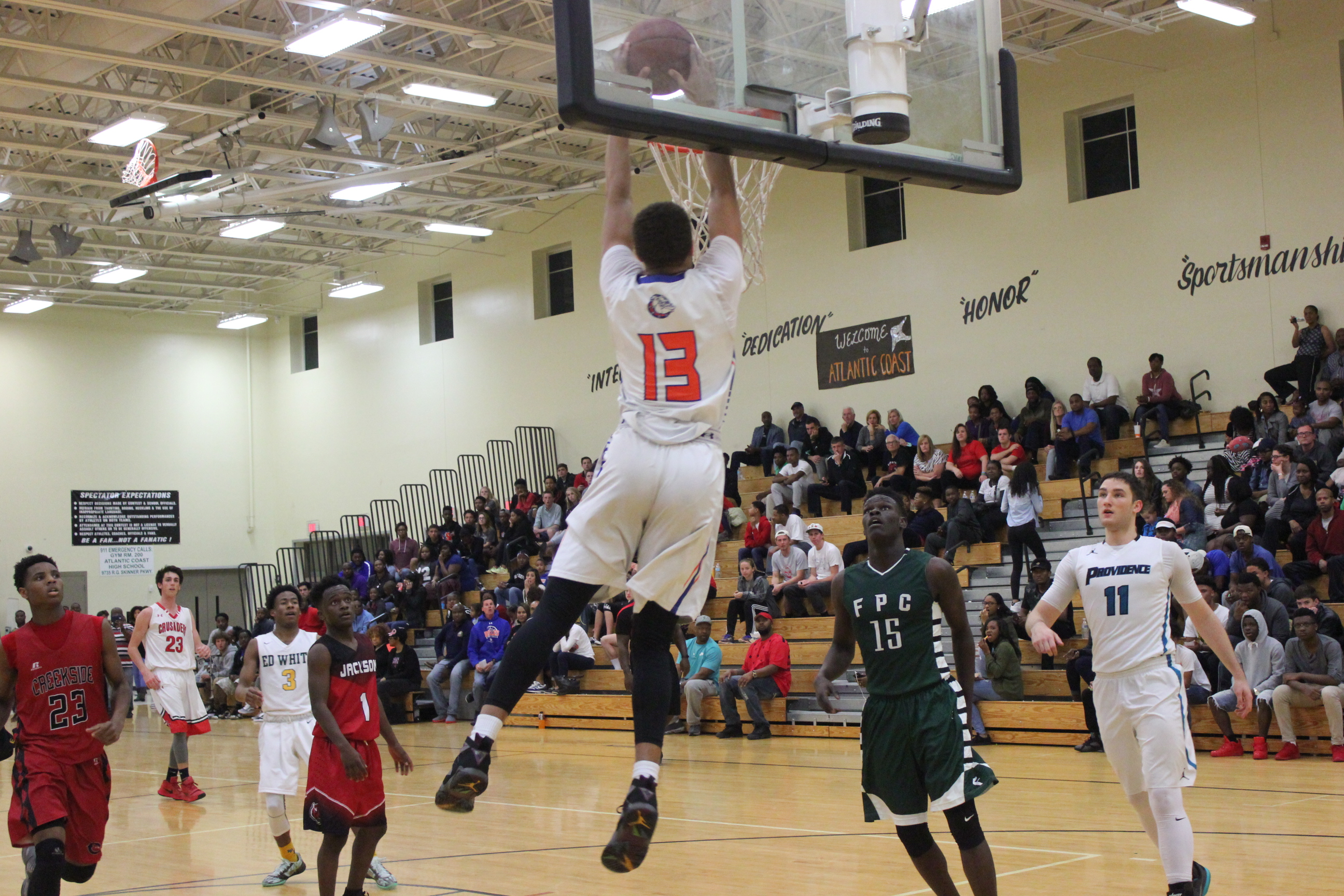 Atlantic Coast High School- The stars of high school basketball were out this past weekend as Atlantic Coast High School hosted the 5th Annual North East Florida High School Basketball All-Star Classic. Former NFL Pro Micah Ross and other coaches from around the city began the event five years ago, and it has grown into one of the anticipated all-star game attractions in the area. Check out our coverage of the event below. The boys action is below.