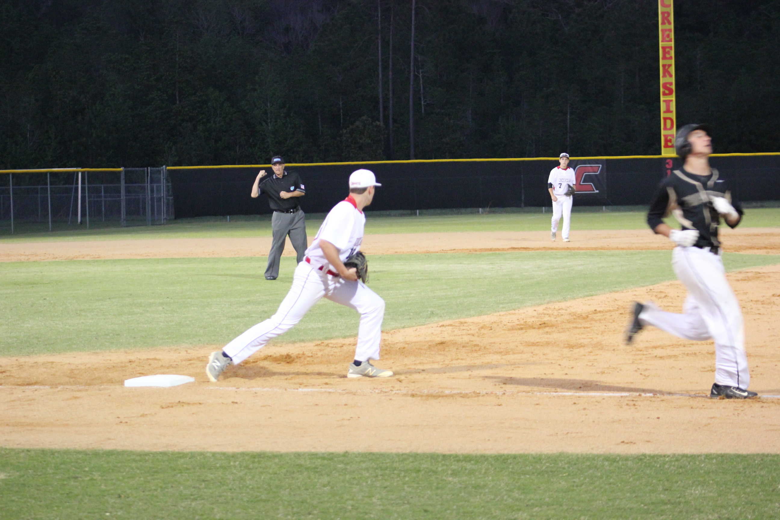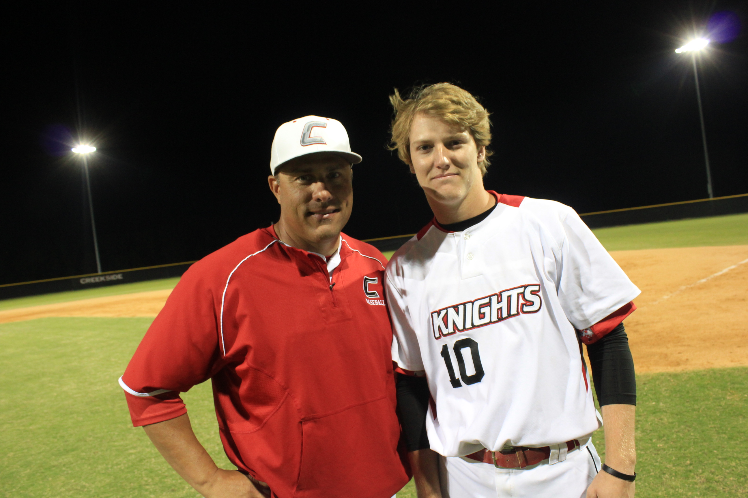 This matchup provided a look into the worlds of two similar programs from different settings, and Creekside would get the best of the match this time. Said Coach Luke Marabell of his Knights game, ” The biggest thing is getting guys on base. Obviously to do any damage you have to have guys in scoring position. We got a couple balls that went up the middle to go off their ankles, and the ball bounced our way”. Providence has been blindsided by a gauntlet of teams coming down the stretch of their schedule. They’ve played the defending champion Trinity Christian Conquerors, and Creekside within four days of each other, so Coach Mackiewitz knew it would be a tough stretch for his ball club. Yet he continues to stay positive and optimistic that playing good teams down the stretch of the regular season, only prepares his team for the post season.