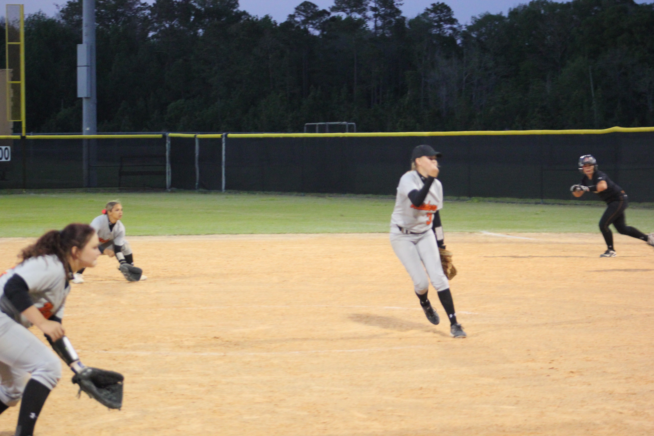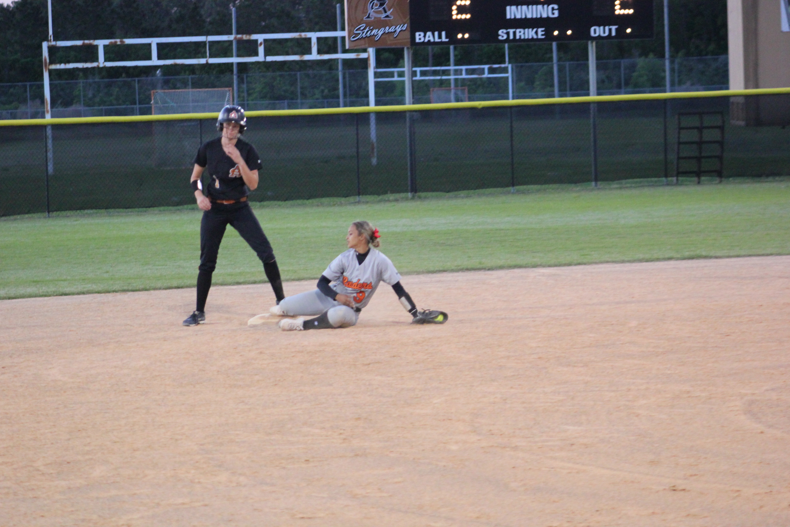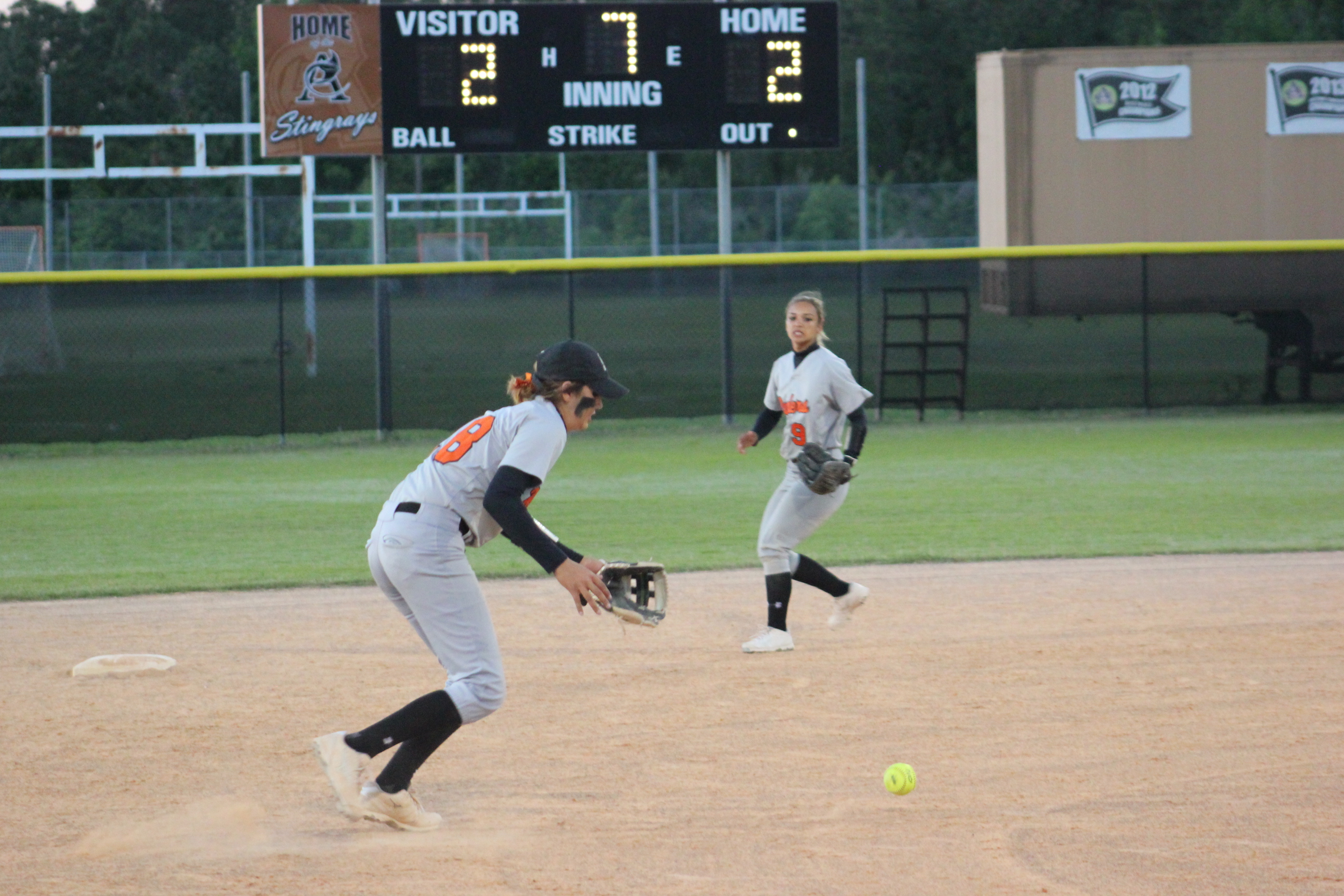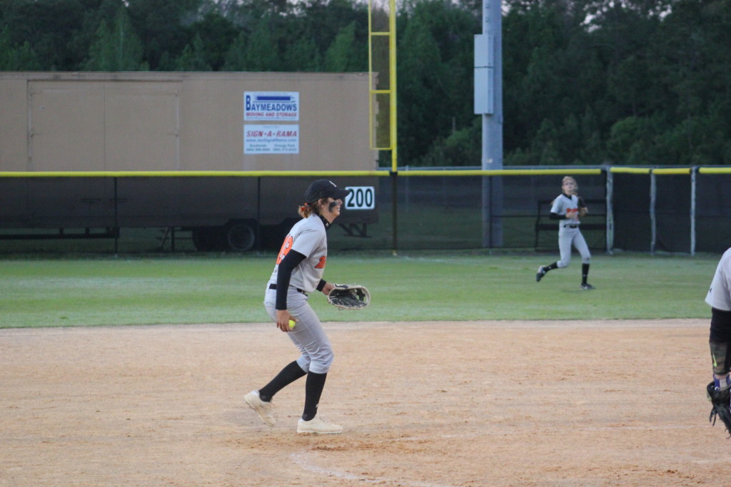 Atlantic Coast- “I want it in the outfield”. This is what #4 Rachel Turgeon said her coach told her during a timeout before she stepped to the plate. Tied 2-2 with the bases loaded, Turgeon made her coach proud by hitting a base hit to the out field. The single brought in #1 Carly Harris for the game winning run in the bottom of the 7th. Orange Park’s Head Coach Lee Taylor congratulated the Stingrays on a great victory and wished them well in their district contests. He certainly had nothing to be disappointed with as his girls played hard all the way to the end.