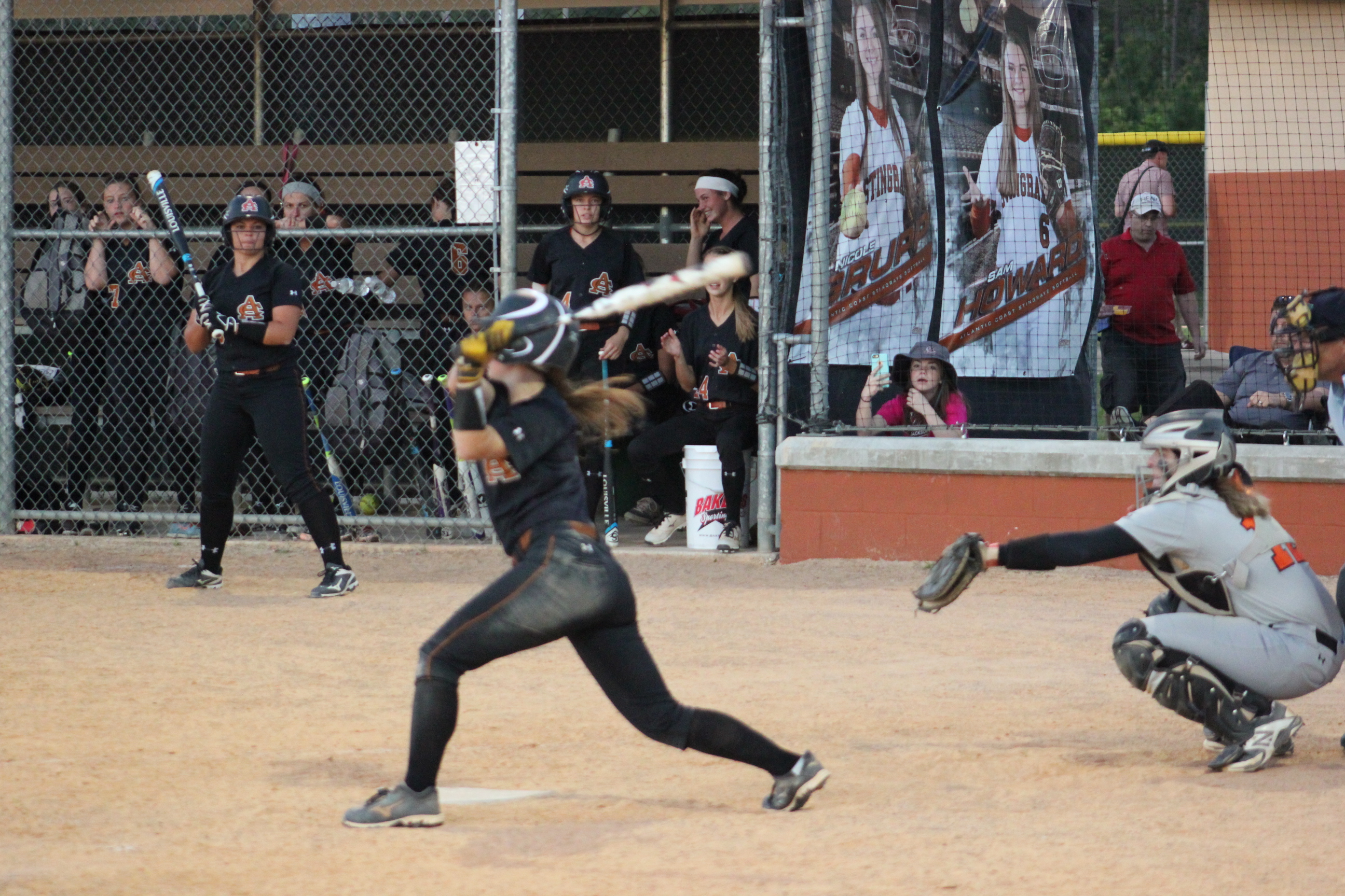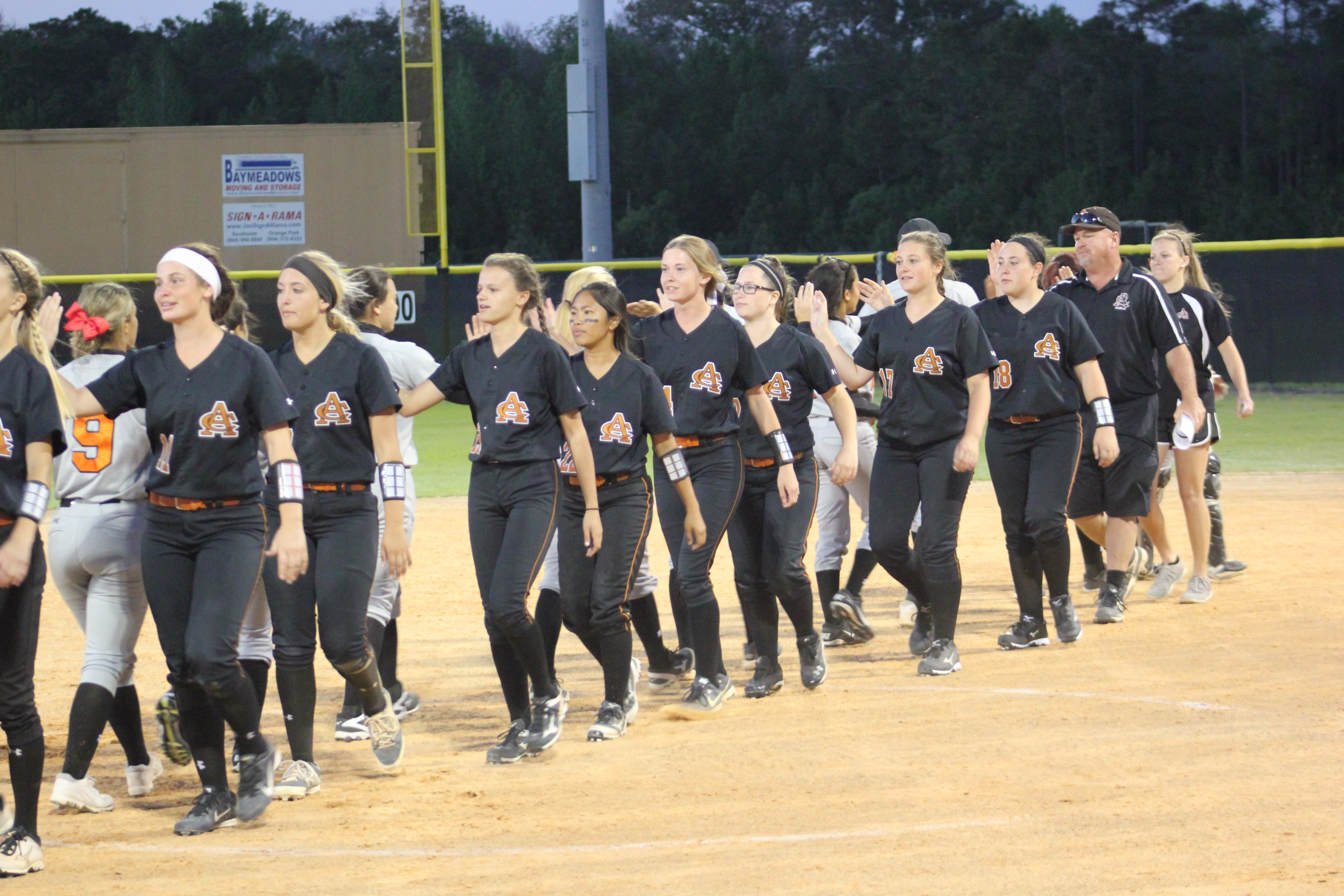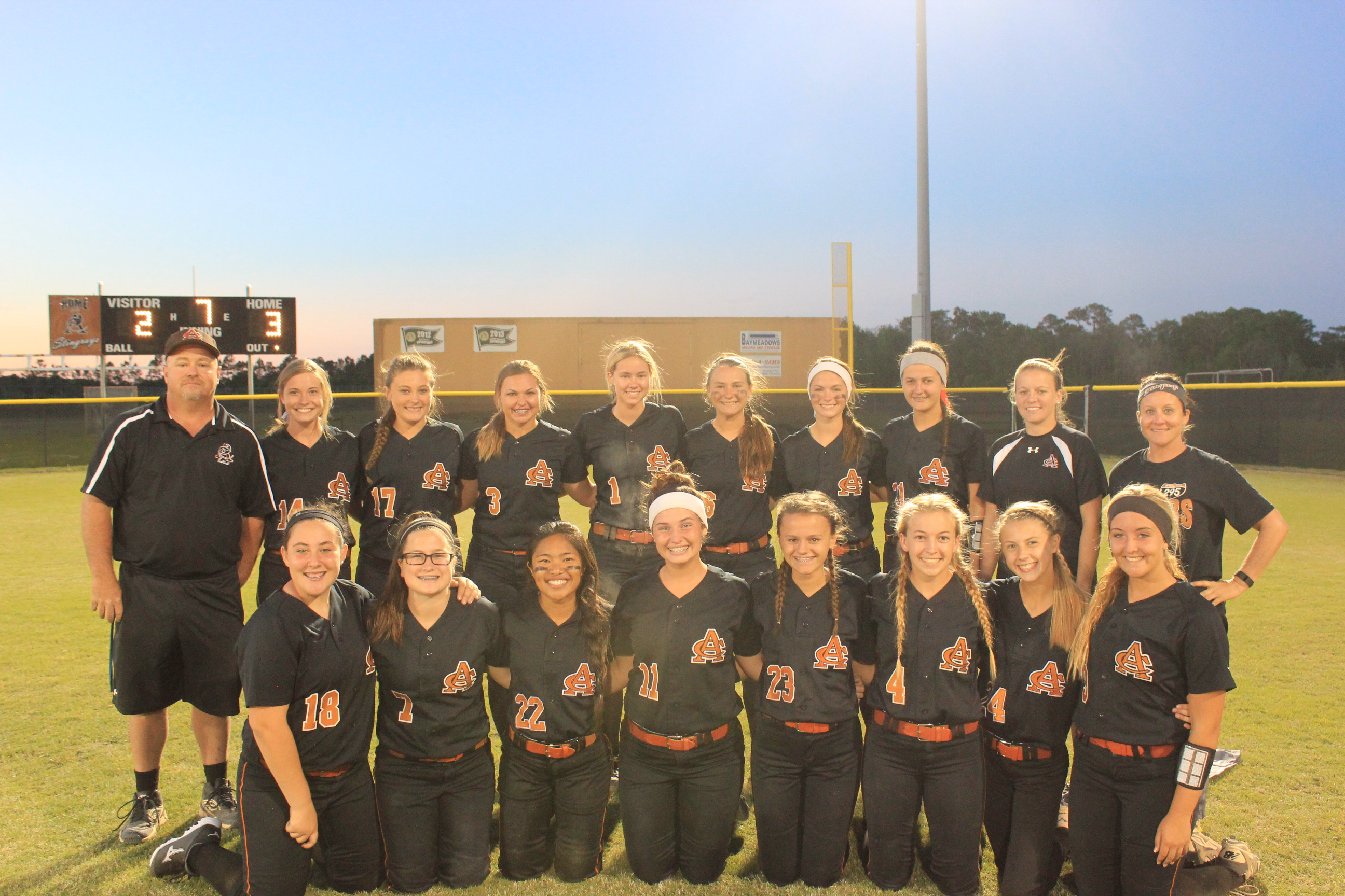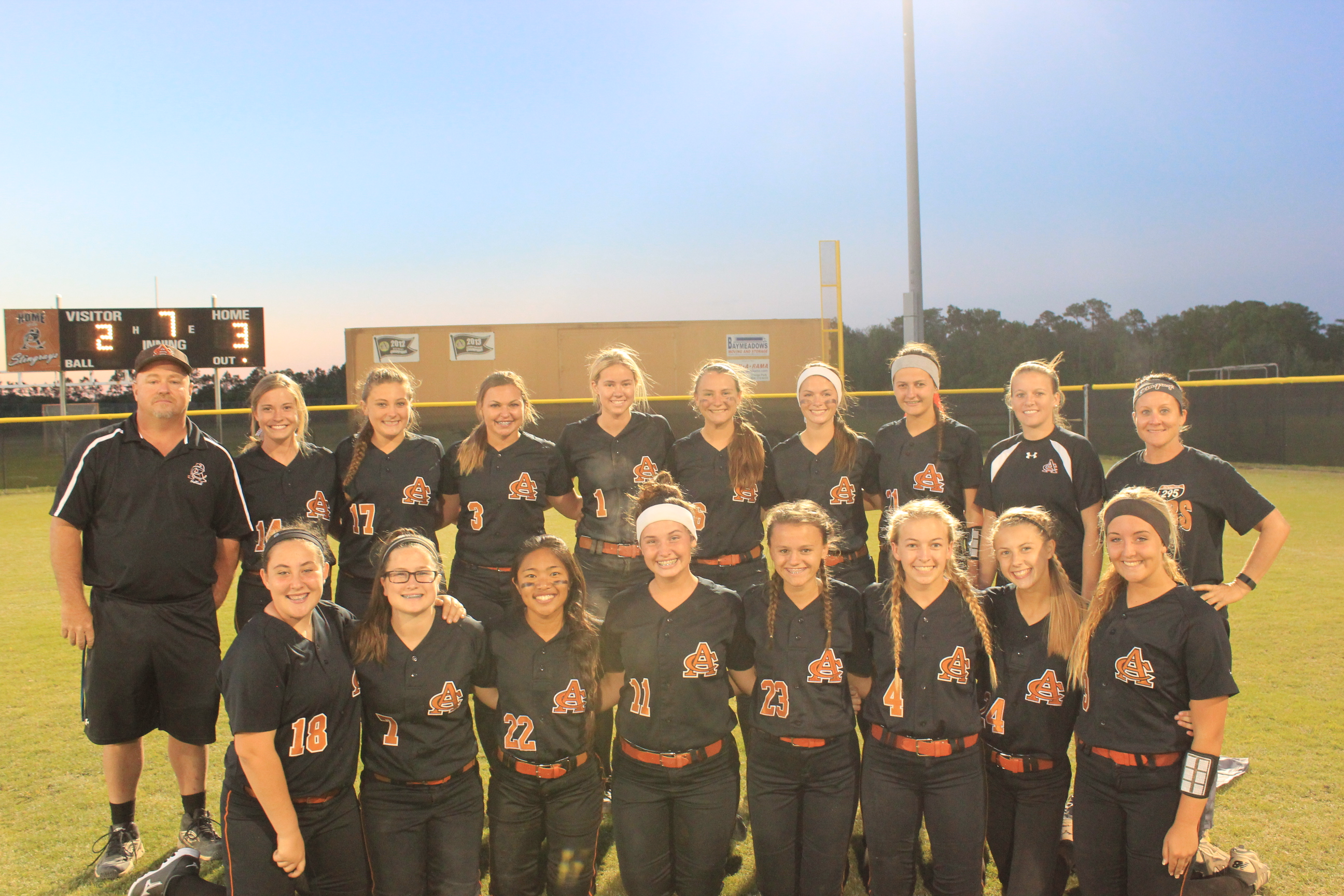 ” I told them to keep fighting and that it would come down to the end”, said Head Coach James Greek of Atlantic Coast. He would be correct in both of his predictions on the night. Coach Greek knows Carly and Rachel vey well. Greek coached for Jacksonville Beach in softball years ago when the young ladies began playing softball at Atlantic Beach. How fitting that these two long time teammates would combine to propel their team to a big victory, and their former rival coach would be the benefactor.