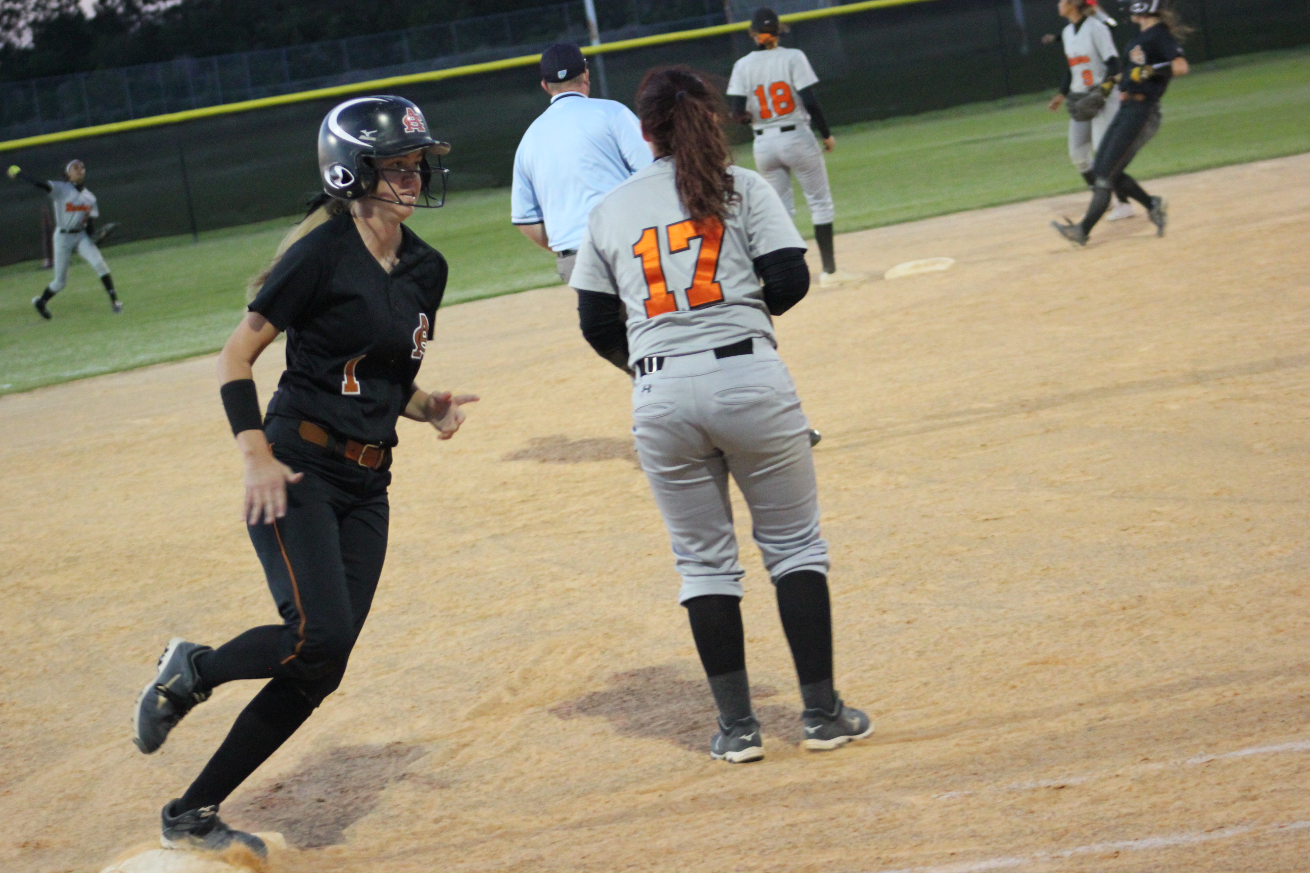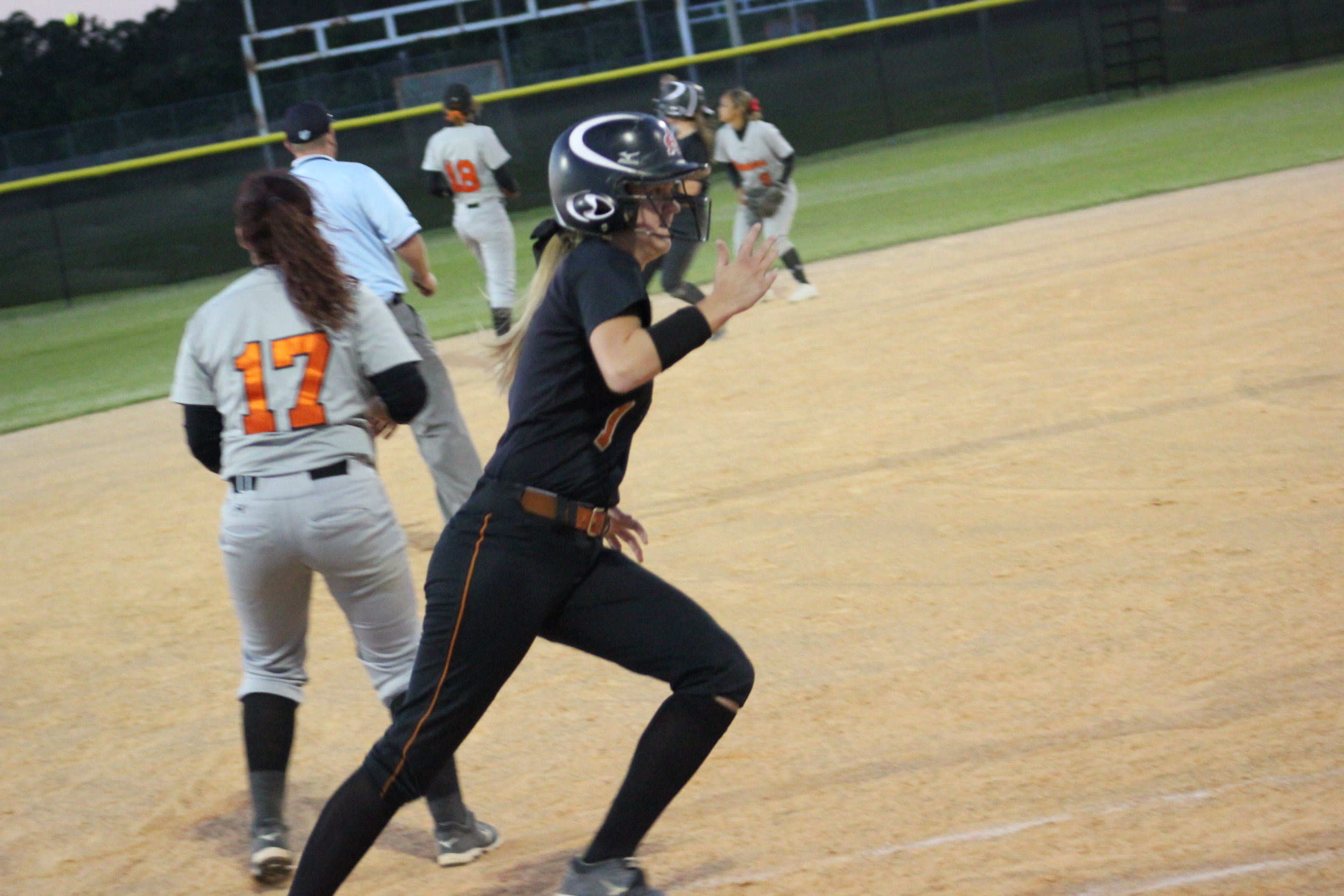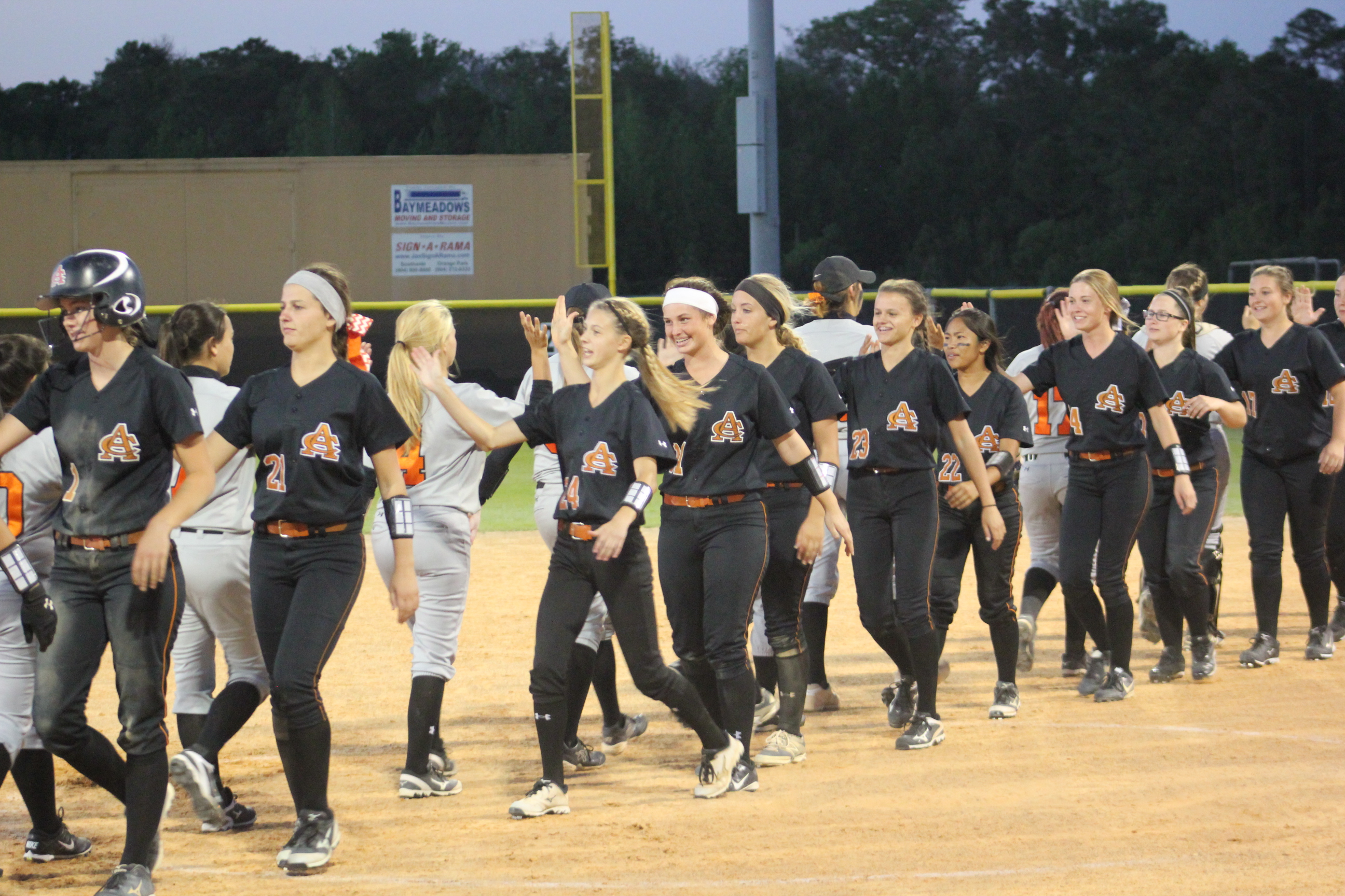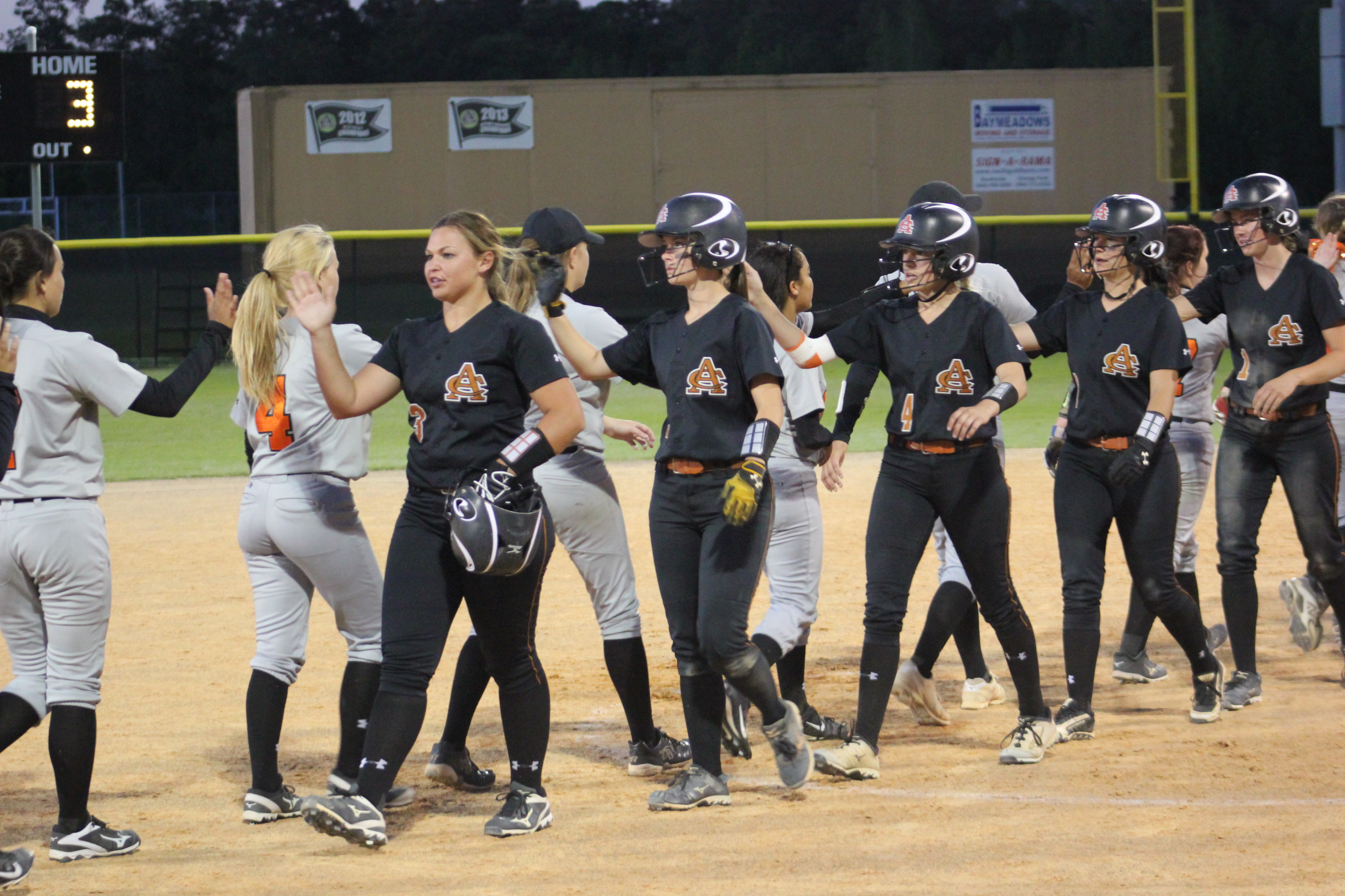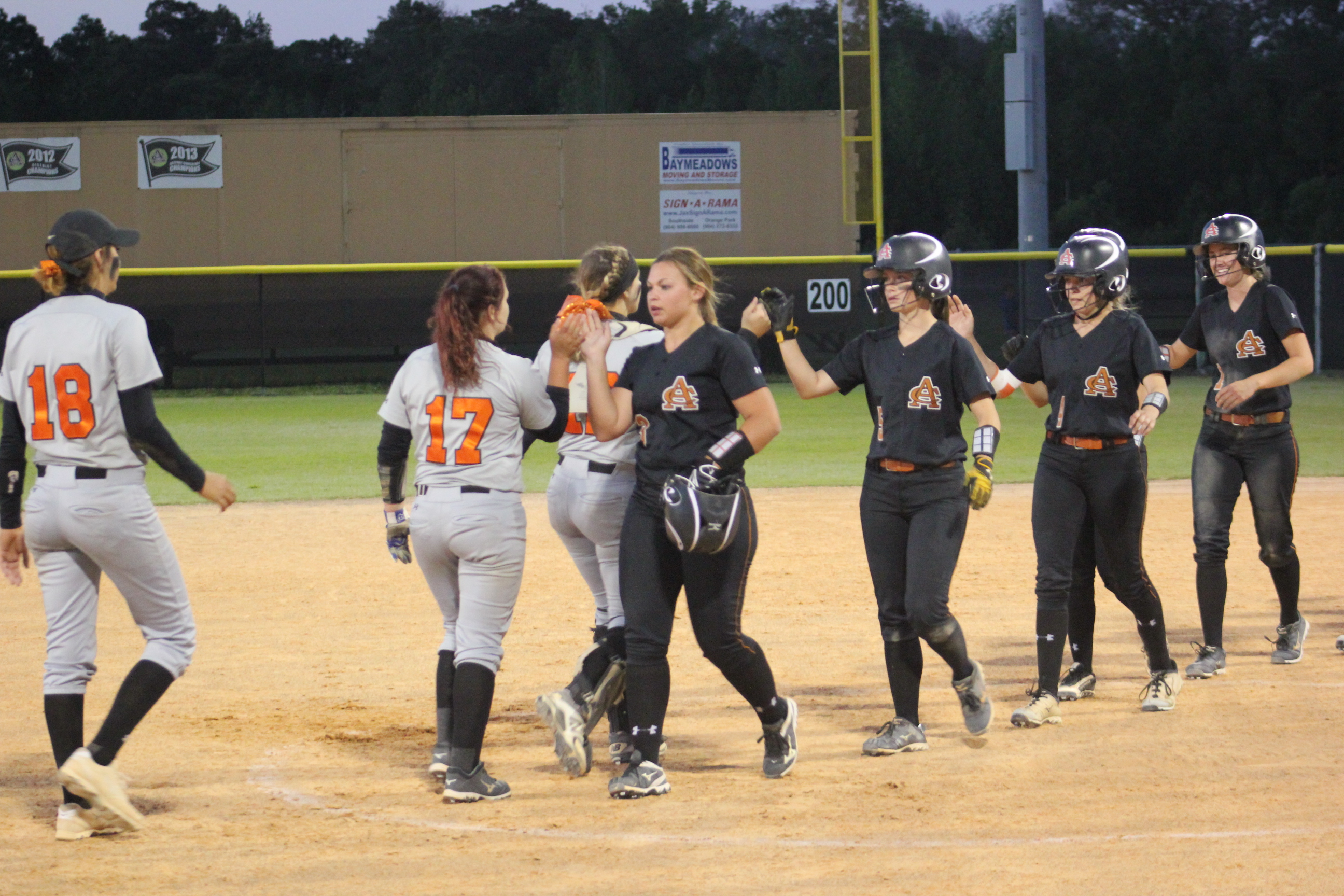 ” I told them to keep fighting and that it would come down to the end”, said Head Coach James Greek of Atlantic Coast. He would be correct in both of his predictions on the night. Coach Greek knows Carly and Rachel vey well. Greek coached for Jacksonville Beach in softball years ago when the young ladies began playing softball at Atlantic Beach. How fitting that these two long time teammates would combine to propel their team to a big victory, and their former rival coach would be the benefactor.