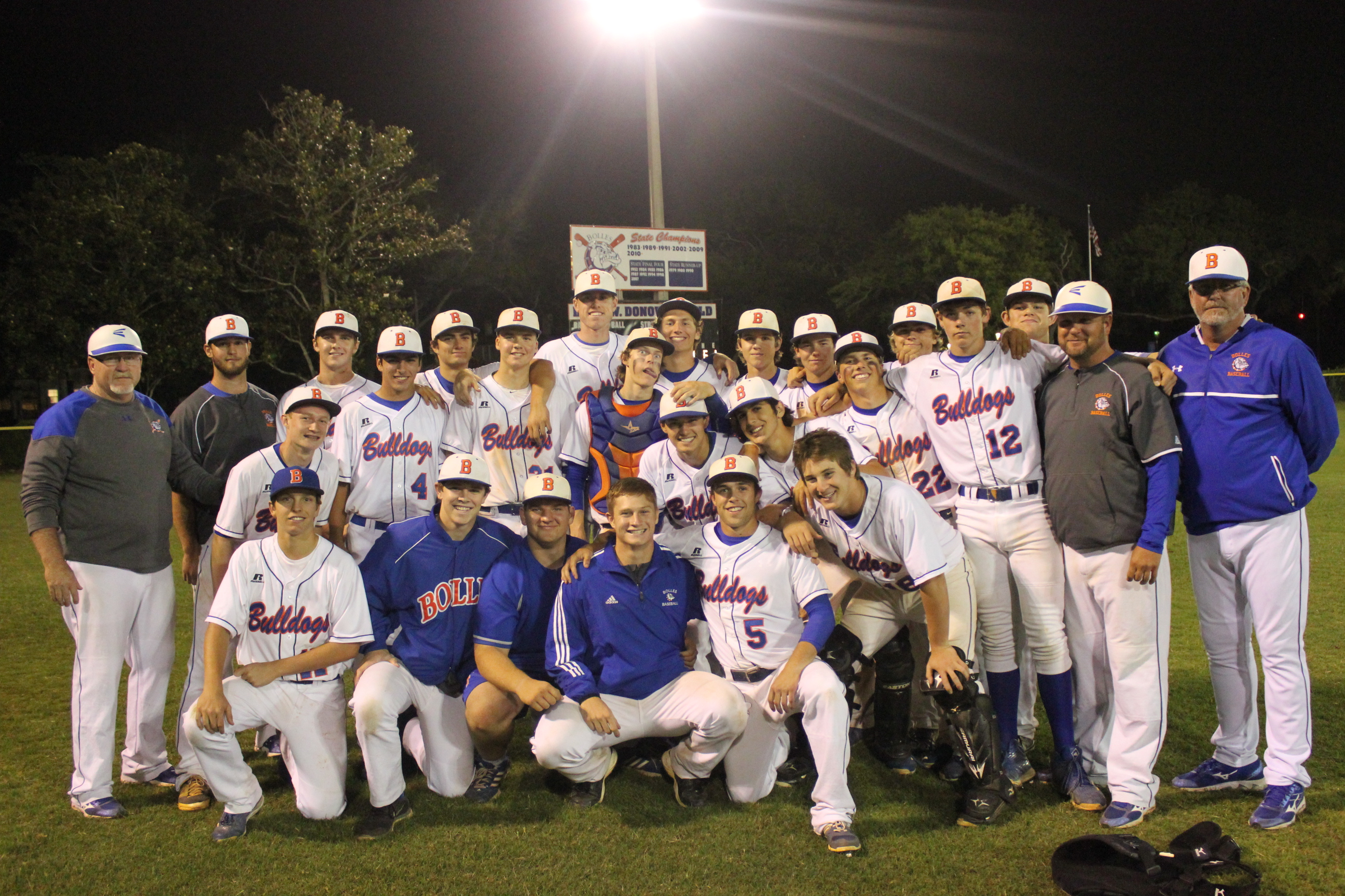 Bolles High School- Austin Henson brought in the go ahead run for Bolles in the bottom of the 6th inning, as the Bulldogs defeated Trinity Christian 6-3. The game was tied throughout most of the game 2-2 as both teams played stale mate. Trinity’s A.J Labas did what he does best, throw the heat, while Hunter Barco for Bolles had the Conquerors looking all night. The Bulldogs who came into the game at 19-3, played signature defense and were opportunistic on offense.