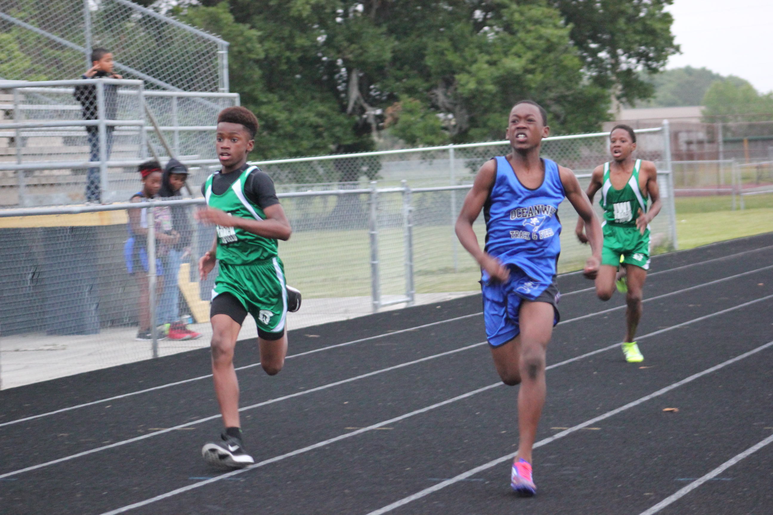 - L. Harris of Oceanway won the boys first heat and placed 1st overall with a time of 11.43