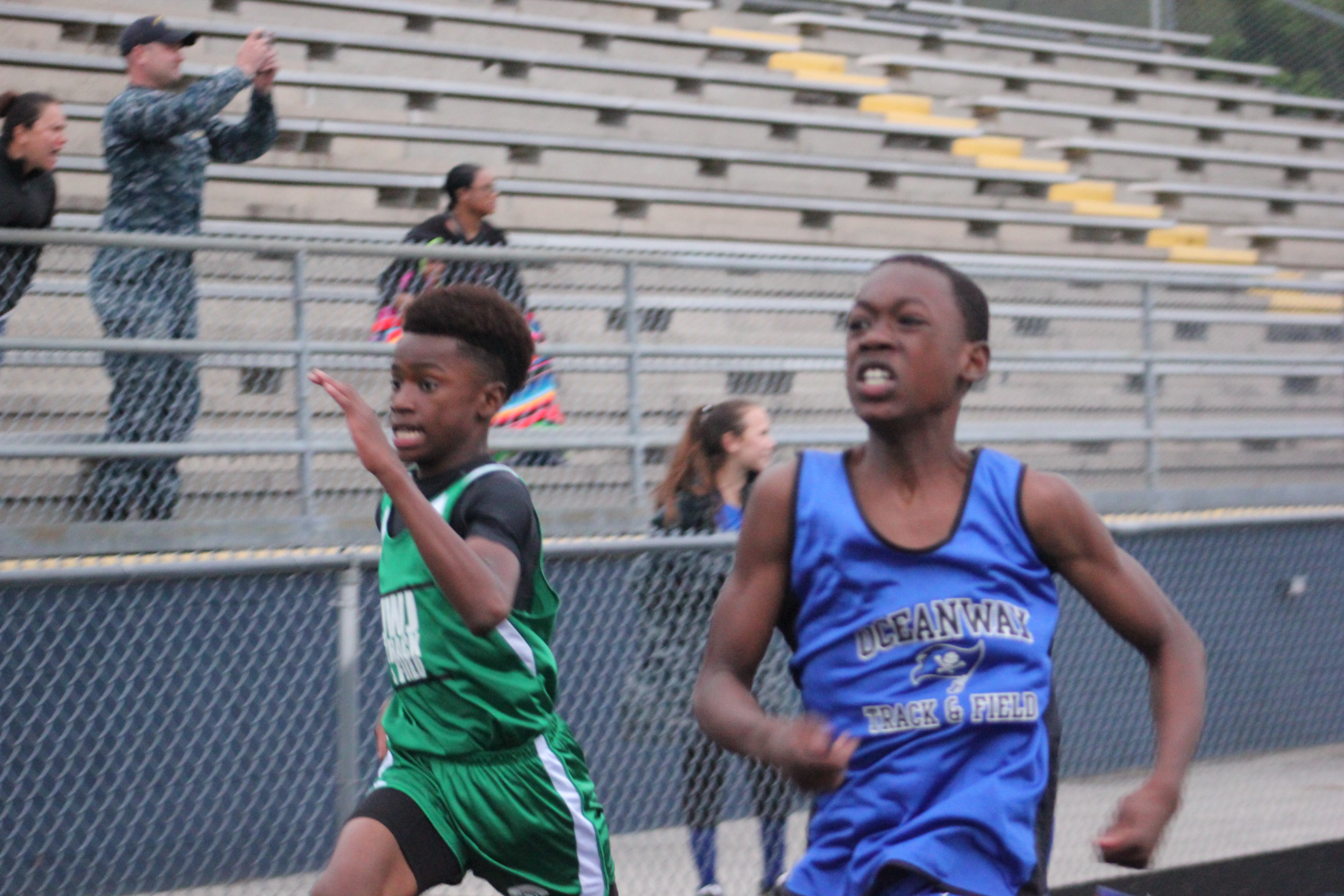 Surprise of the Meet: Goes to the only 6th grader on the Oceanway Track Team Christian Ellis. Ellis won both his heats in the 100 and 200 meters, and placed 3rd overall in the 200 meters.