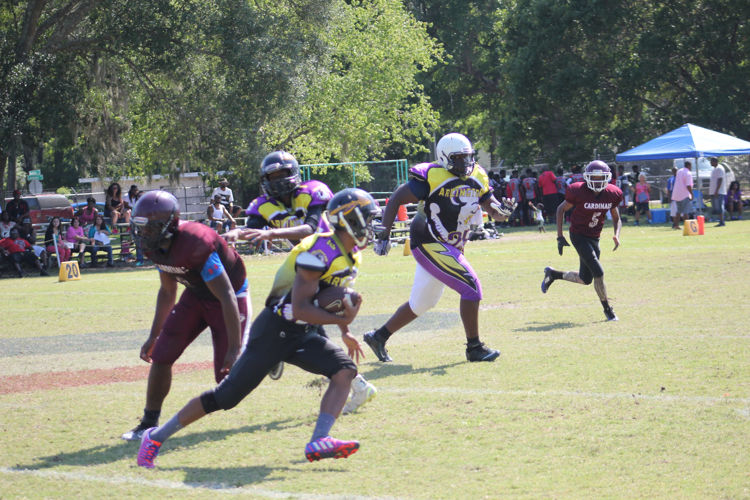 Many teams played back to back games in order to be crowned champions, and for the varsity division, that could be physically demanding with the size of the players. But the Seminoles didn’t miss a beat as they jumped out 19-0 on R.A.W, and held off a late push by the Cardinals. Javaris Lee used his athleticism to drive Coach Dennis Parrish’s offense as Arlington hoisted the trophy.