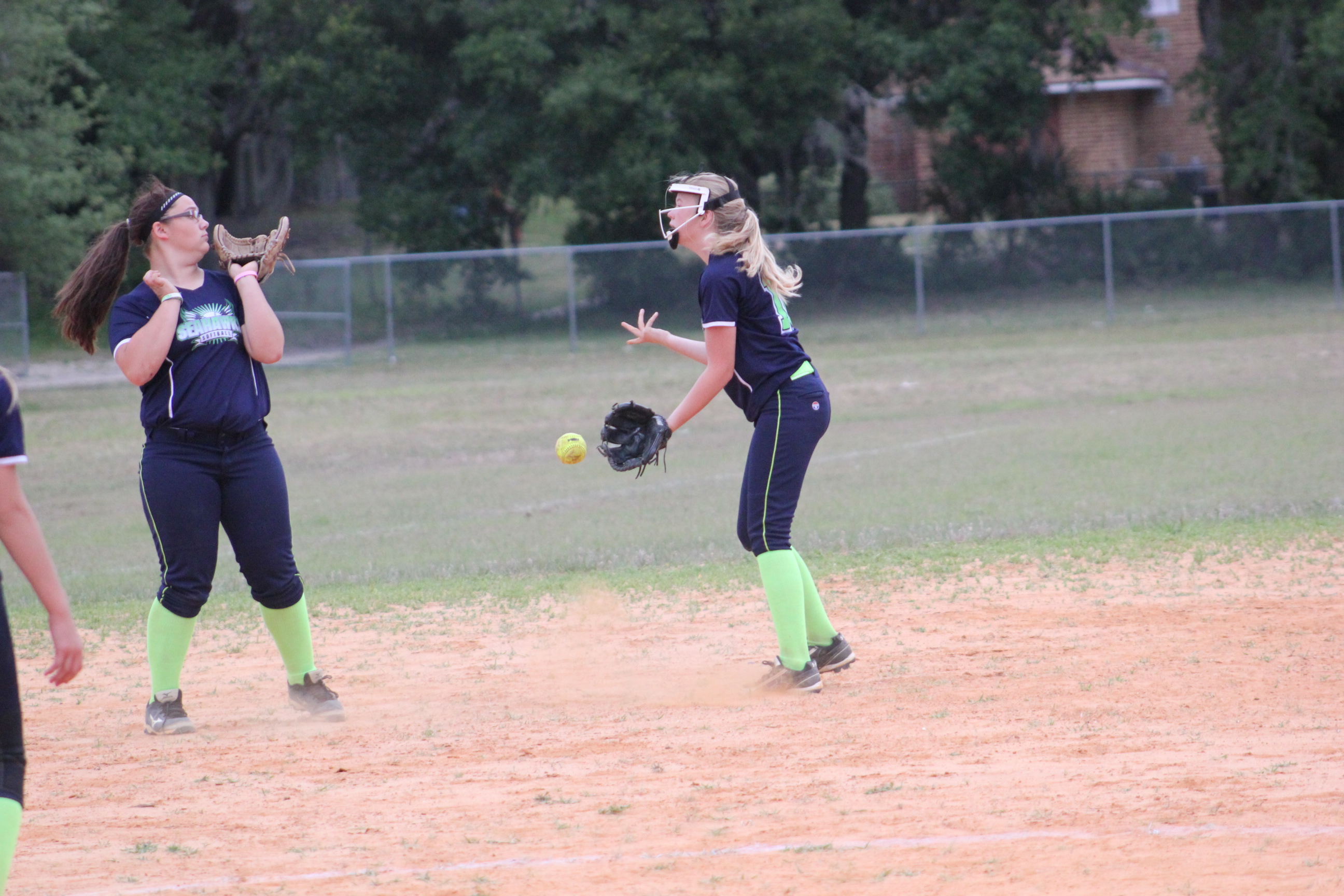 Ft. Caroline Middle School- In middle school baseball and softball action, the Landmark Seahawks visited the Ft. Caroline Cavaliers. On the softball field, Landmark capitalized on stolen bases to score most of their points. The Lady Seahawks were spirited and energetic throughout the game which fueled their momentum throughout the contest. Ft Caroline started a little flat but their coaches Laurie Valley and Sheila Martin did a great job of encouraging the youth. They’re play began to turn around as the pitcher hit the strike zone, and the infielders started to make great catches on fly balls. A line drive shot from a Landmark batter headed straight for the pitcher. The Cavalier pitcher made a spectacular one handed catch which may have been the catch of the day. In the end however, Landmark’s batters were to much to handle for Ft. Caroline, and they were extremely well coached.