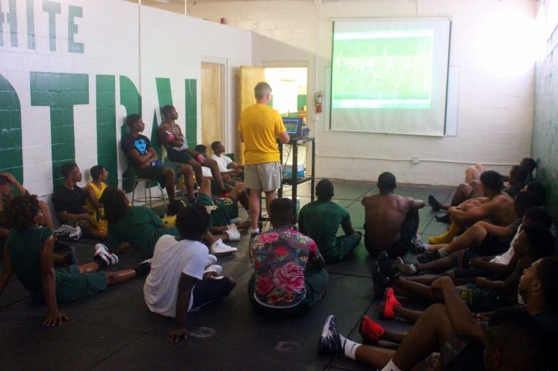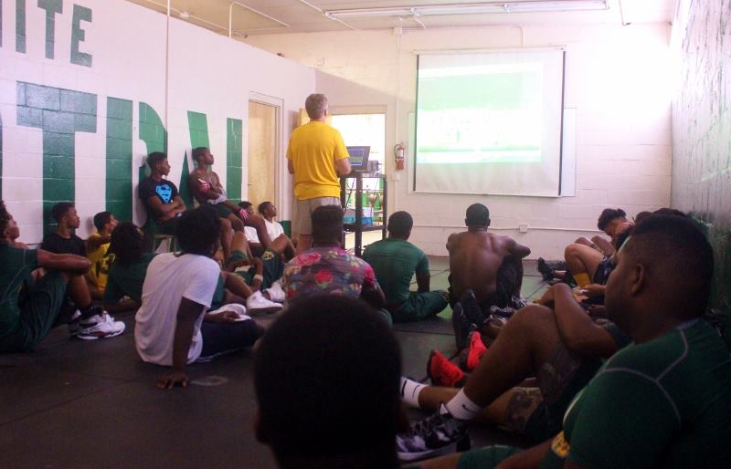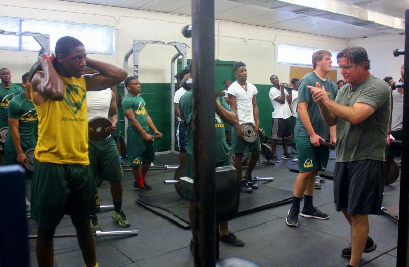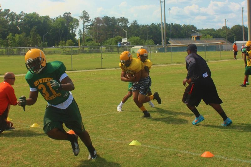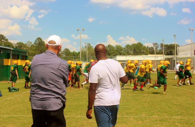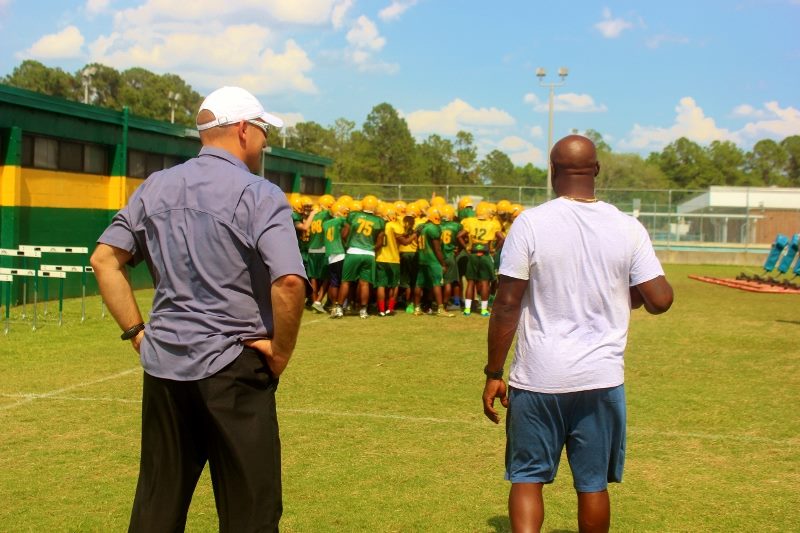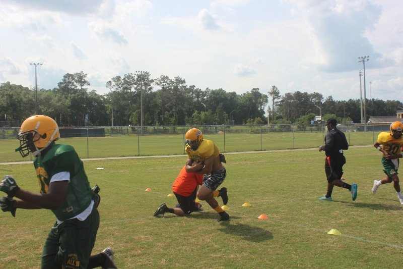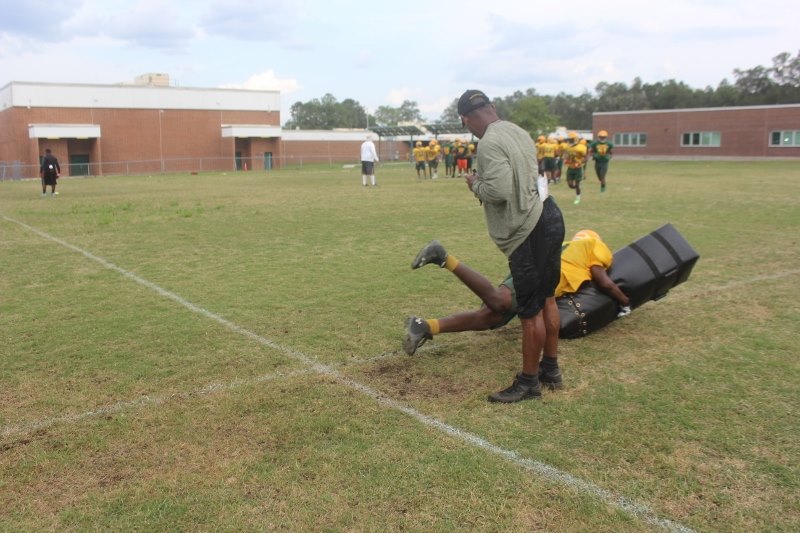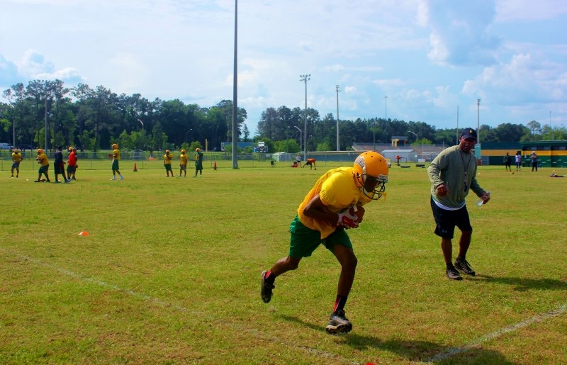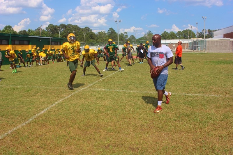 Spring practice on Jacksonville’s westside included film study, weight lifting, football drills, and instruction from former players and current coaches for Sullivan. Including former Andrew Jackson and Florida State standout Leon Washington. Washington spent the afternoon giving advice to young players and providing drill tips to some of the starters.