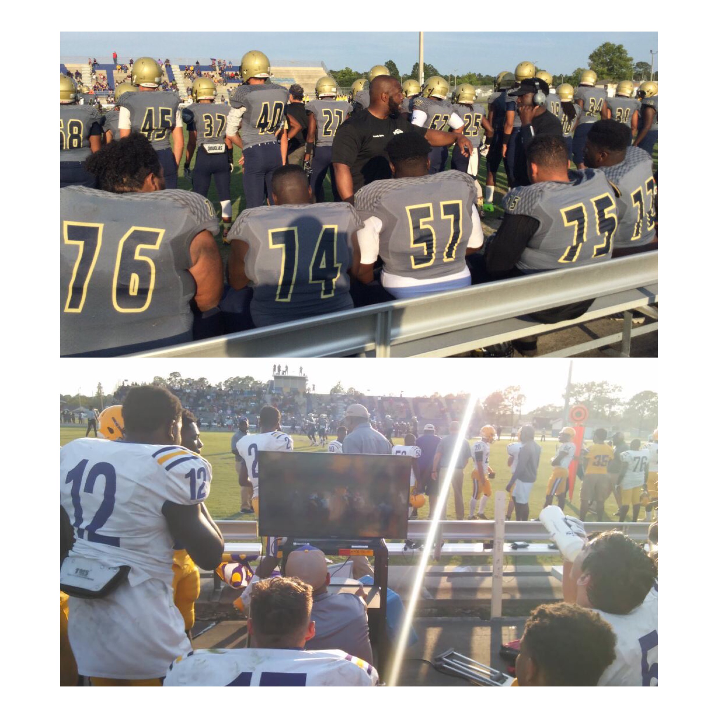 The defenses were stout at the point of attack. Columbia’s Robby Moon controlled the line of scrimmage at defensive tackle. He shed blockers and faced double teams. Also the defensive end #9 Ranadree Bradley came off the edge with great speed and looks like he will be tough for offensive tackles to deal with. They have good speed in the secondary including safety Derontae Jordan.