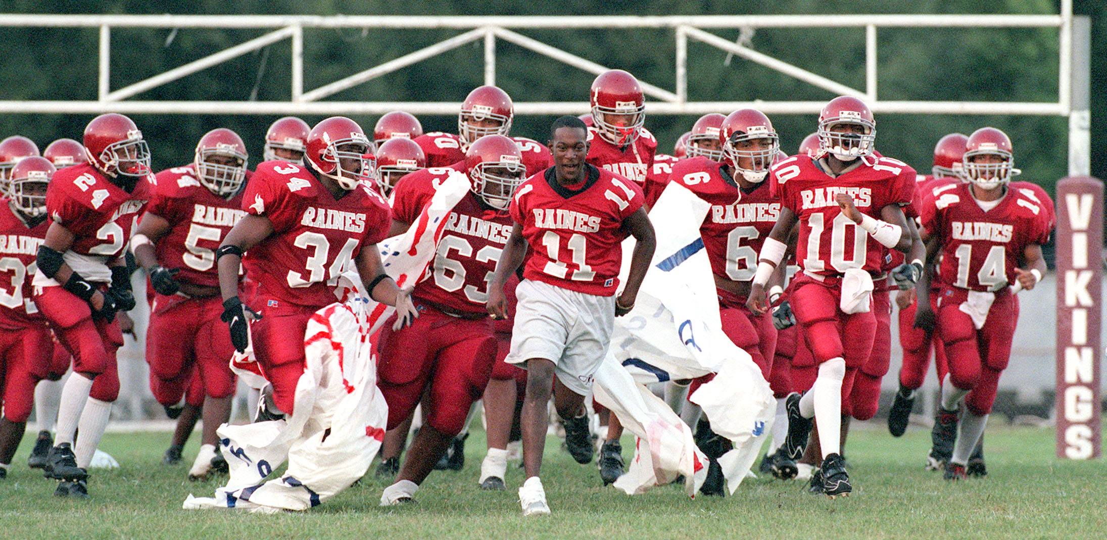 The 1997 Raines Vikings finished 15-0 on its way to becoming the first and only to date public school state champion in Duval County. First year coach Welton Coffey guided the Vikings to a perfect regular season with wins over Mandarin 40-7, Englewood 55-0, Wolfson 55-6, Jackson 60-0, Fernandina Beach 36-0, Sandalwood 20-14, Lee 47-6, First Coast 27-11, Ribault 38-0 and Ed White 51-21. The Vikings continued their path with playoff wins over Englewood 47-8, Pace 21-0, Eastside 20-17, Madison County 34-12 and Glades Central 32-27 in the Class 4A state championship game at the University of Florida. Lito Sheppard and Derrick Jabar Gaffney who both starred at Florida and went on to the NFL were among the many players who went on to star in college.