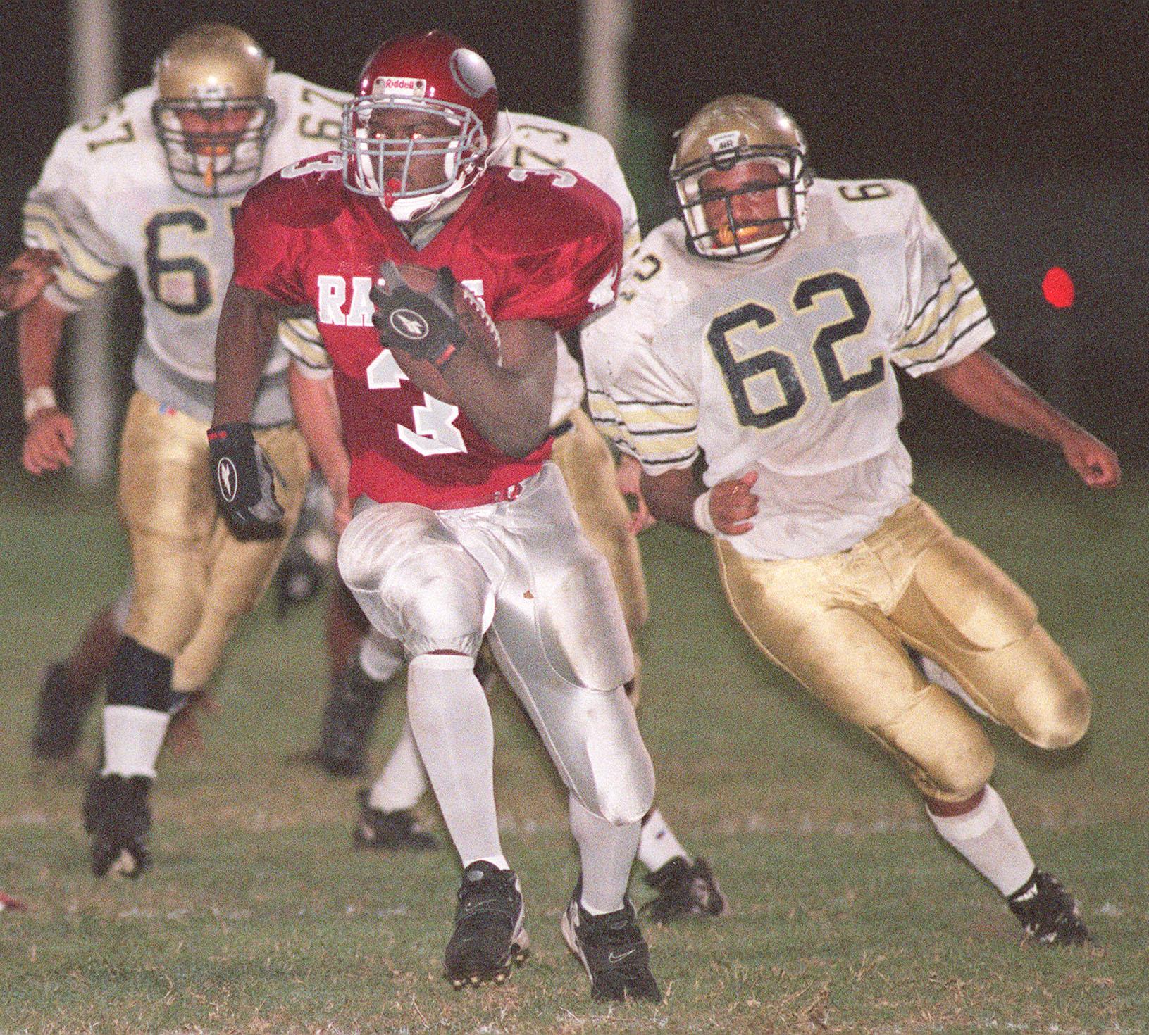 Coach Bob Withrow’s Saints became only the second public team in Duval County history to appear in a State Championship game. (14-1) led by Mr. Football tailback Frankie Franklin (Indiana), the Saints finished as state runnerups after rolling off 14 consecutive wins to start the season. They would stumble 12-7 to Miami Northwestern in the state finals with a hobbled Franklin who missed two and a half playoff games with a knee injury. But don’t be fooled, this team was stacked. Players like Raheem Pontiflet and Turk Williams are known by football players are around the city. While Franklin got all the coverage as he broke rushing records galore, the offensive line and defense is what carried the team. The defense under Coach Dave McConnell recorded three shutouts and dominated powerhouses like Raines, Columbia, and Orlando Evans on their way to a #4 ranking in the 1995 USA Today poll.