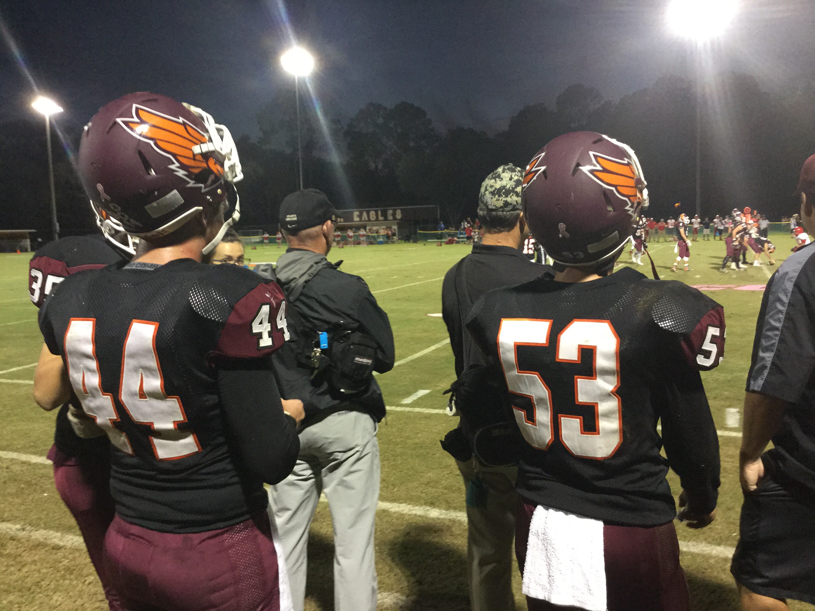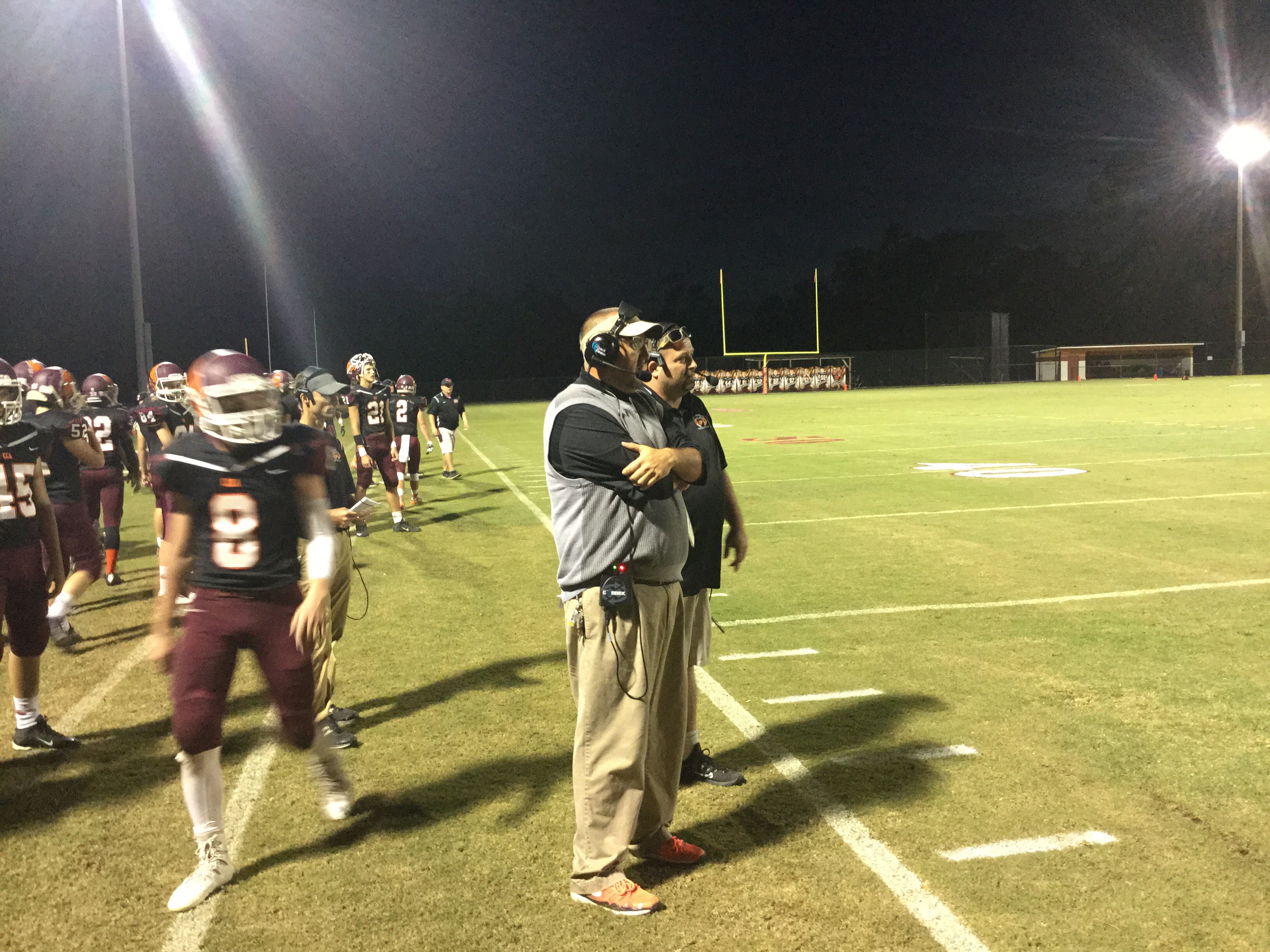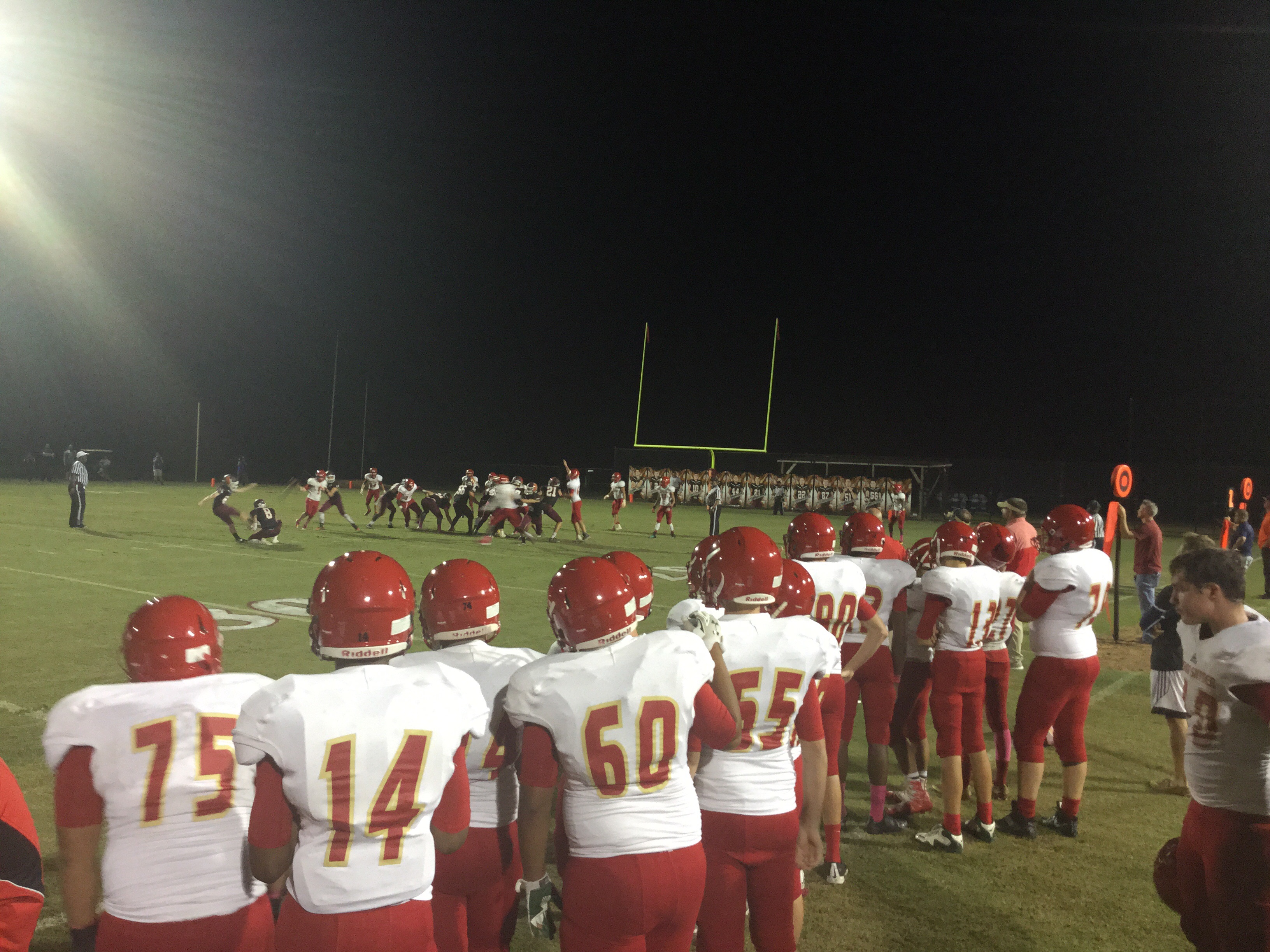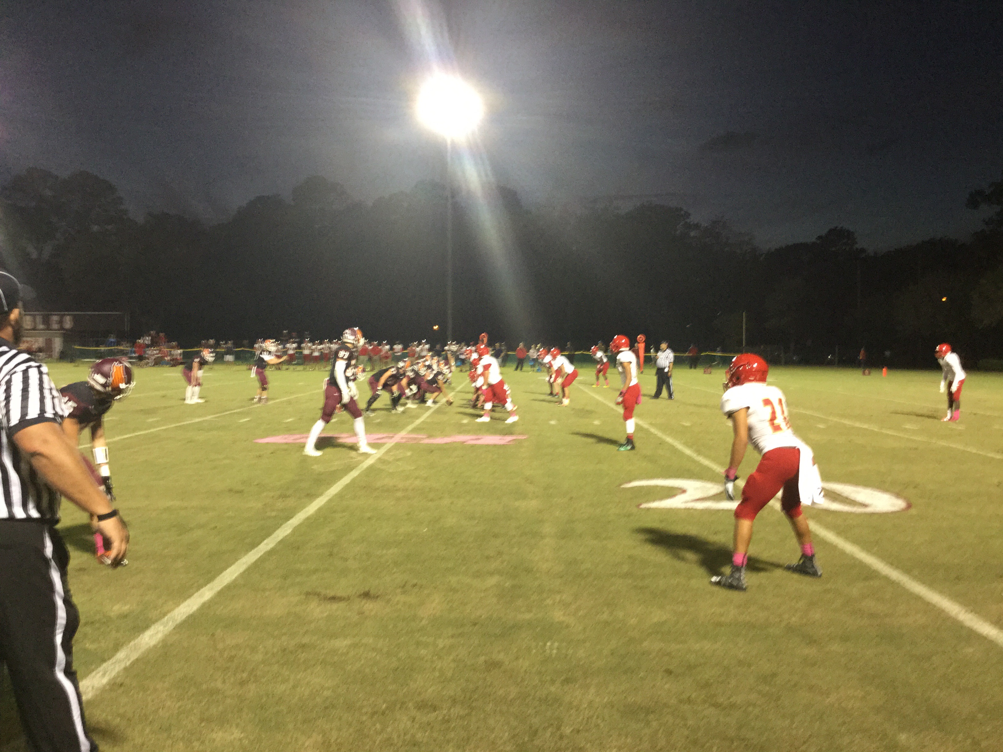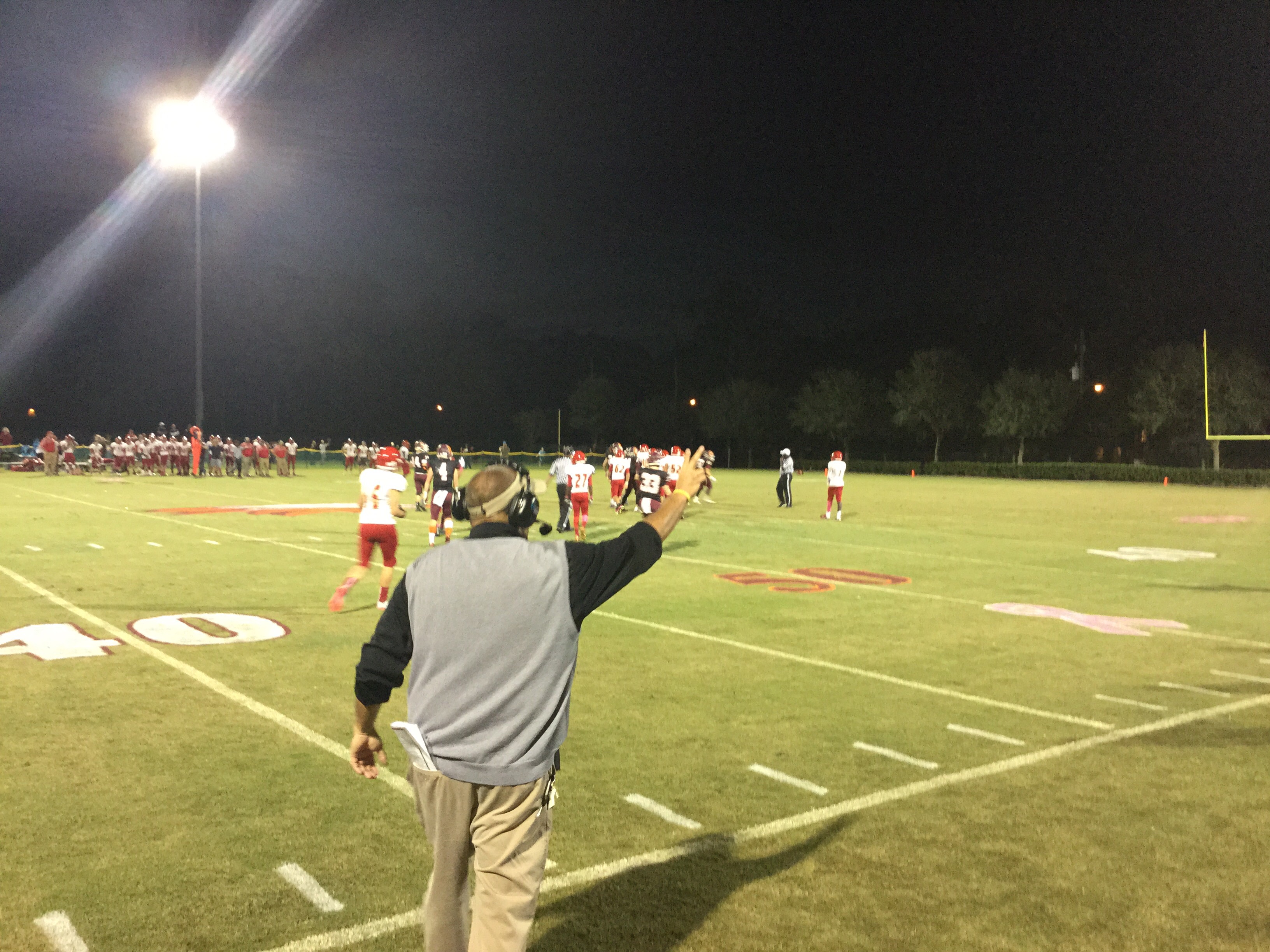 “Run for more and throw to score” is his philosophy, and that ole’ Alabama boy as Coach refers to himself as, had the running game hitting on all cylinders. His hot rod was Lamp who rushed for well over 200 yards and scored 4 touchdowns in the game. Lamp had two runs of 40 yards and a longest for 60 yards in the game. Coach kept feeding him the rock and he kept churning away the yards. Lamp’s first score was an ISO off right tackle to pay dirt. He would follow his blockers for three other scores on the night, which is why he was sure to give his offensive line credit after the game.