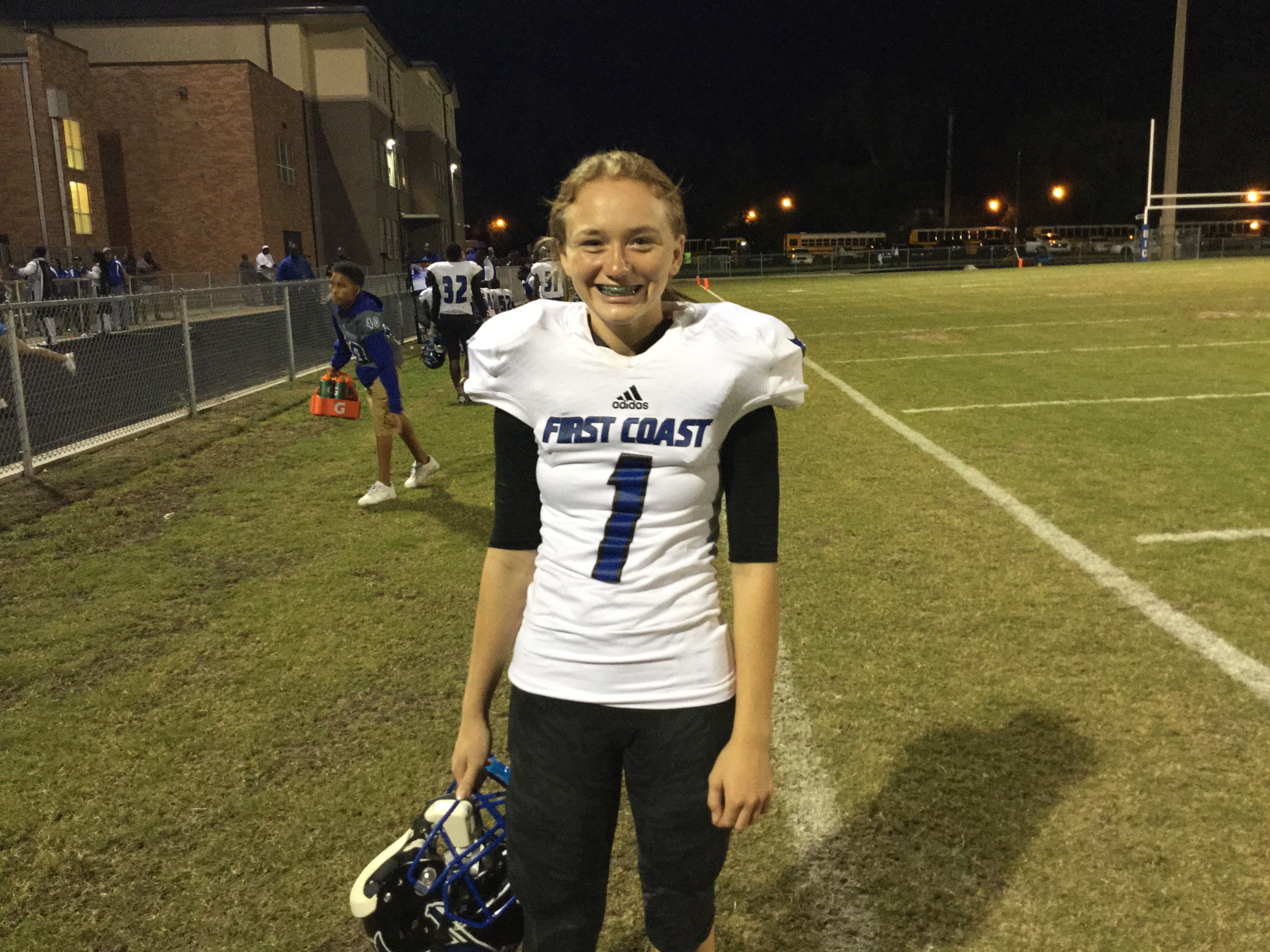In the second half First Coast came out playing as if their lives depended on it. And it some ways it did,as their playoff lives were at stake.They needed this win badly, and they came out playing like it. First Coast would get prime field position thanks to a Lee interception. Six plays later, Kadarious Sampson scored on a hard nosed one yard rushing touchdown.