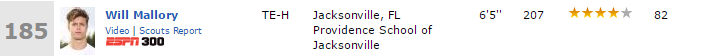Listed as a tight end, Mallory has all the versatility of a wide receiver as well. He’s big, long and fast. Scouts have noticed these attributes in the last few years. Mallory’s play on the field cemented his status . He caught 46passes for 900 yards, 12 TD, with a 19.6 ypc. He was tops in our area for a reason.