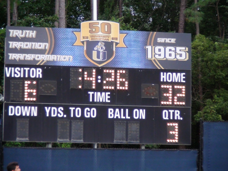 University Christian is led by running back #6 Author (Fatts) Walker who rushed for two touchdowns in the game. On Fatt’s second touchdown, he scored on a busted play, scooping up the ball and racing past defenders for a long touchdown run. He wasn’t the only UC player to get in on the action.