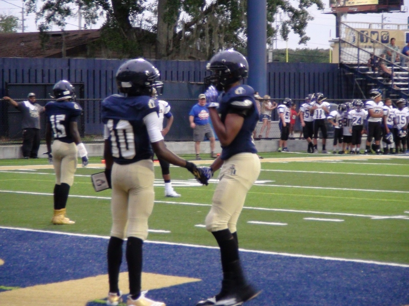 Quarterbacks #11 Terrance Ford and #2 Larry Edwards both led their offensive units to scores on the night. One of Edward’s scores came on a strong run up the middle as he powered through would be tacklers to the endzone, putting the team up 32-6. Ford would show off his arm, lofting a beautiful strike to the corner of the endzone to #15 WR Orell Gray for a score to put them up 38-6. Fernandina’s quarterback #2 Cameron Miller was a bright spot for the team, scoring twice for the Pirates. Yet he could not prevent the Christians from taking the contest in conquering fashion 44-12.