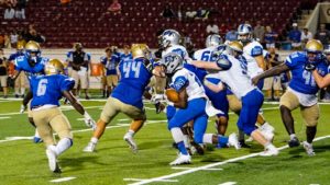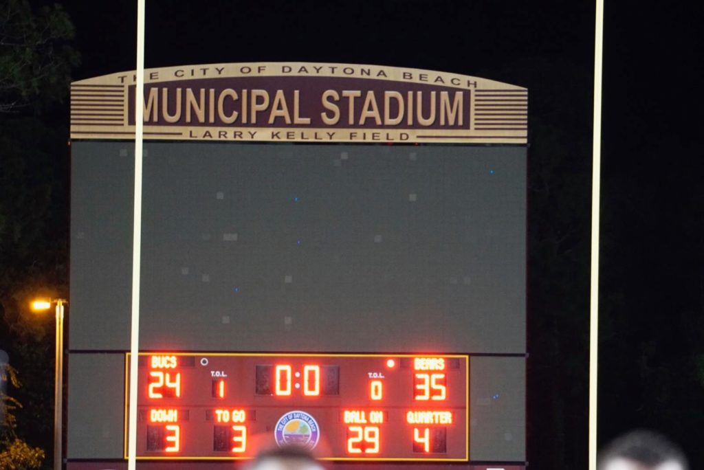 For the Bears it would be a statement half that shocked everyone in attendance as the Mainland seven year regular season undefeated home winning streak was seriously threatened. The Bears would be certain to get the Buc’s best effort in the second half, so they knew they couldn’t afford to let up on their aggressiveness. That was proven to be true in the third quarter when a 74-yard punt return by Mainland’s Brian Jenkins cut the Bear’s lead to 21-17. Bartram would turn to Gatewood again to make big plays. After hitting Griffin Helm for a 44-yard gain on 3rd and long, Gatewood tossed a 20 yard touchdown pass to Xavier Breuer to respond to the Mainland score 28-17. After a Latavies Sylvester screen pass reception went for six cutting the Bartram lead to 28-24, Quaterback Riley Smith finished off the scoring for the night. Smith connecting with Xavier Hutchinson for a 25-yard pitch and catch to pay dirt as Bartram defeated Mainland 35-24.