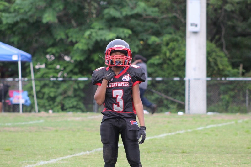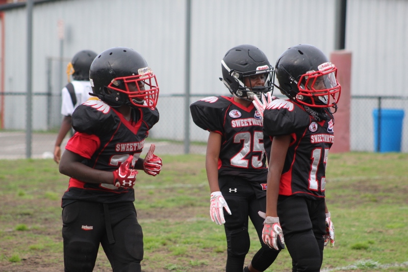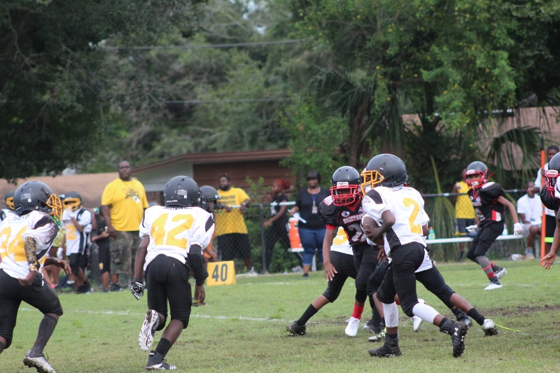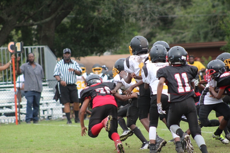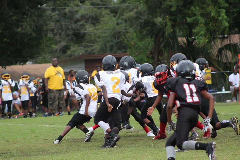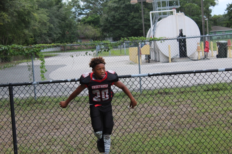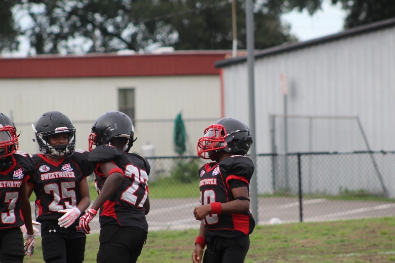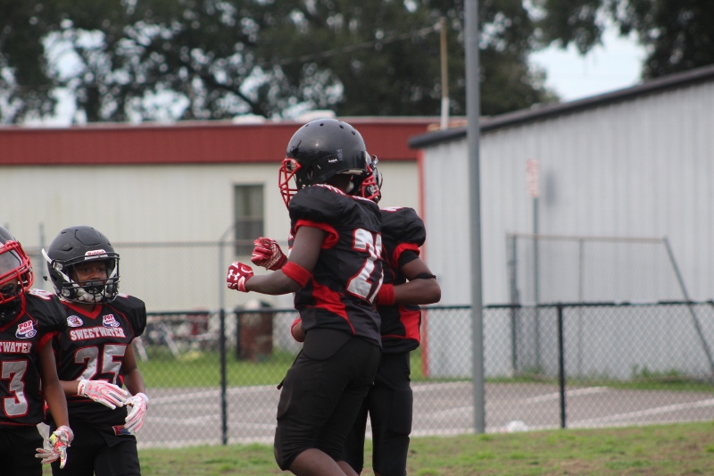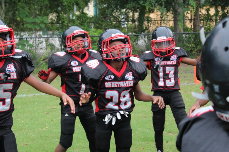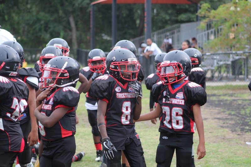 Gibbs Park- It was a 33-0 opening debut for the Sweetwater Ravens over the Forestview Wolverines in week one Pop Warner Junior Pee Wee action. Sweetwater dominated from start to finish thanks in part to the talented young athletes that the team features. #4 Rashid Miller busted off big runs to start the game. His efforts set up the game’s first touchdown, a toss by #1 D. Moore to #10 Troy Hillman where Hillman showed great concentration to bring in the juggling pigskin. Next it would be #20 big Hilton Stubbs getting in on the scoring act, rumbling off a long powerful run to put Sweetwater up 12-0.
