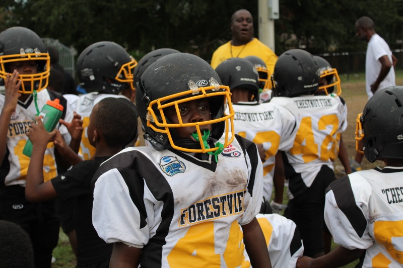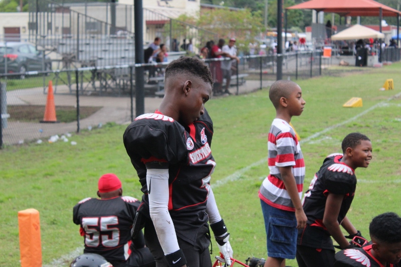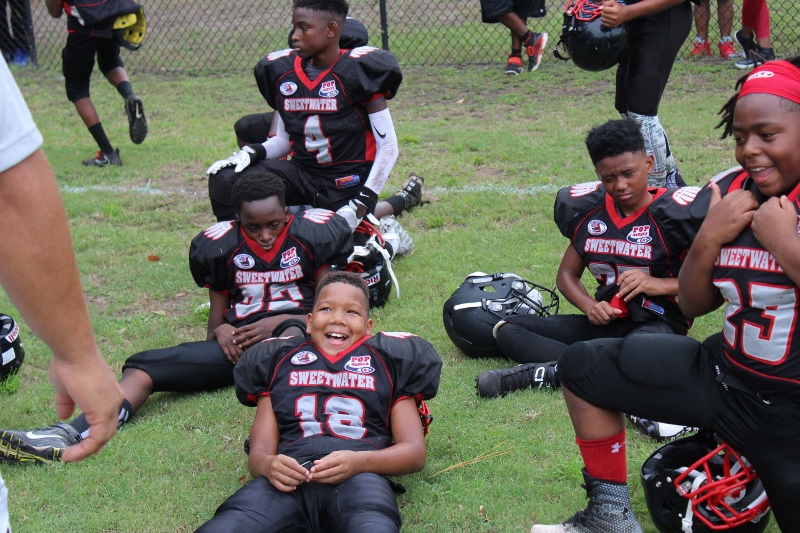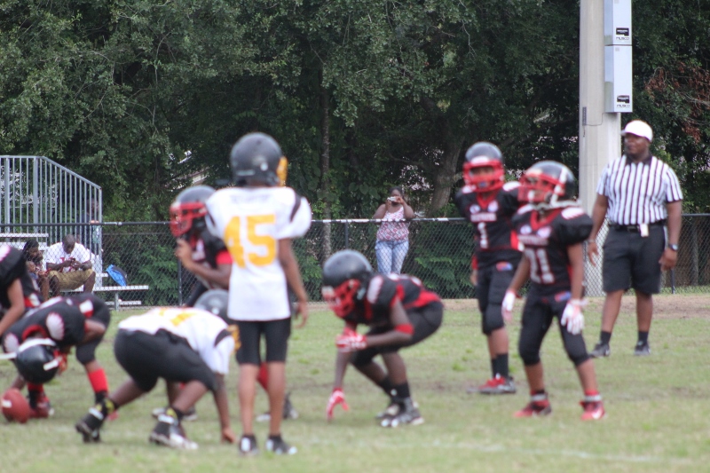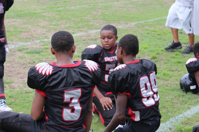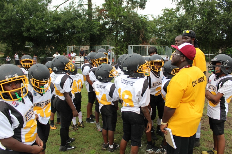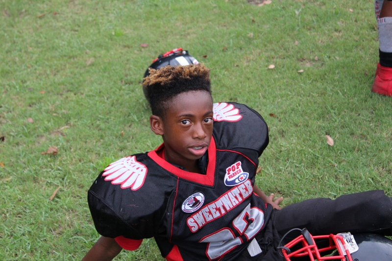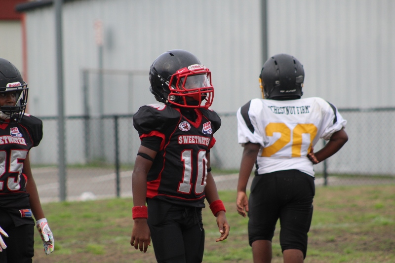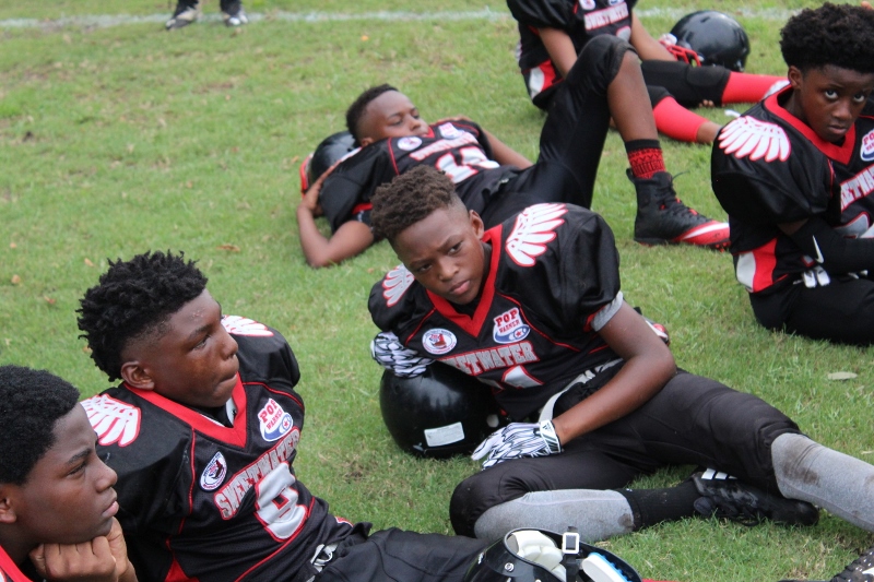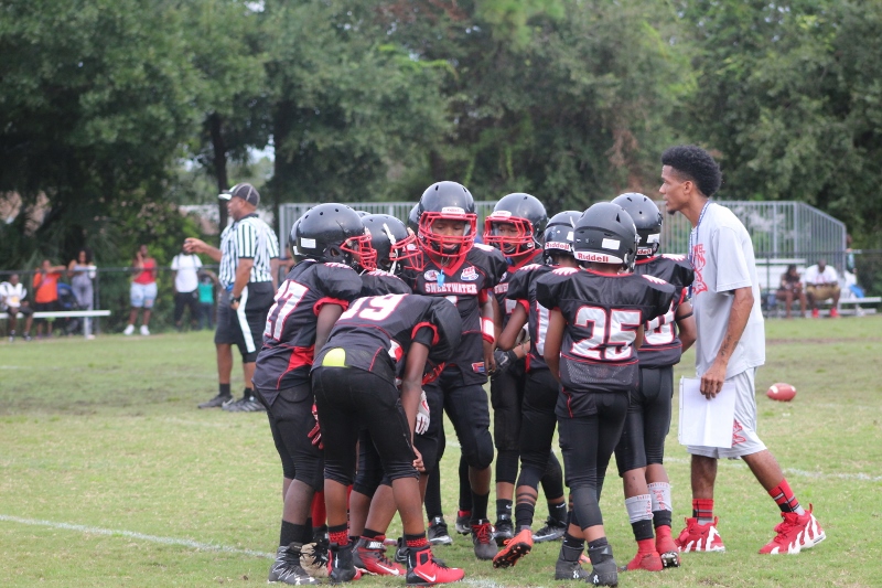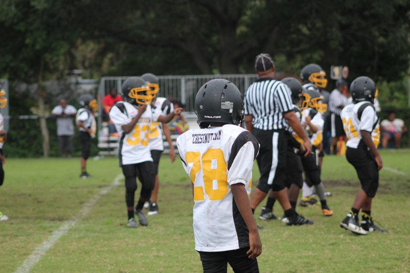 Gibbs Park- It was a 33-0 opening debut for the Sweetwater Ravens over the Forestview Wolverines in week one Pop Warner Junior Pee Wee action. Sweetwater dominated from start to finish thanks in part to the talented young athletes that the team features. #4 Rashid Miller busted off big runs to start the game. His efforts set up the game’s first touchdown, a toss by #1 D. Moore to #10 Troy Hillman where Hillman showed great concentration to bring in the juggling pigskin. Next it would be #20 big Hilton Stubbs getting in on the scoring act, rumbling off a long powerful run to put Sweetwater up 12-0.