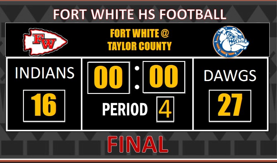 Fort White (3-1, 0-1) travels to Bradford County next Friday in a non-conference game; while Taylor County (2-1, 1-0) takes the week off before traveling to Dixie County in two weeks for another Suwannee Conference game.