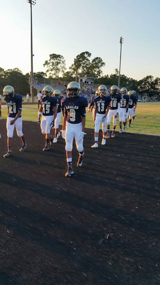 This would not have happened had Gelique William’s 54 yard punt return for Yulee not been nullified by two penalties. Yet, the Hornets were able to drive the ball deep inside the Paxon “red zone”. The front line of Paxon refused to break and gave the ball back to the offense at the five with just under 30 seconds remaining in the half. At that point, the Hornets defensive line stopped running back Elijah Shingles on a four yard loss. After a delay of game penalty moved the ball back to the six inch line, Eagle quarterback Jeremiah Baclig followed his offensive line’s surge, and moved the ball out to the three yard line, and the half ended.