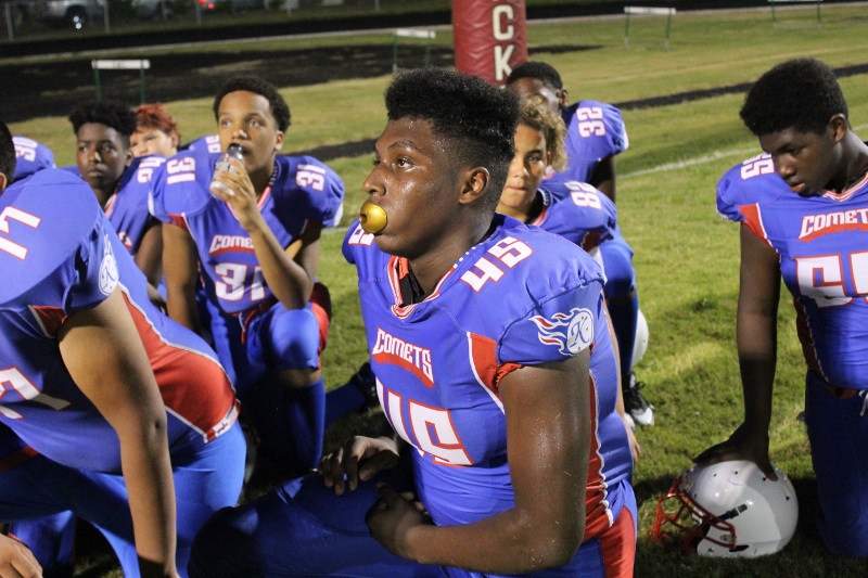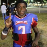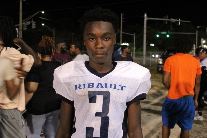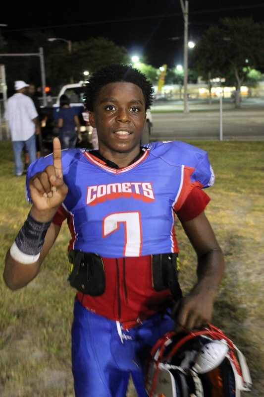 No position was more noticeable of this new look than at quarterback. Eighth grader Chris Calhoun who was used as a wide receiver last year at Landon middle school showed exactly why the city is a buzz about the potential Ribault possesses. At quarterback, he connected with several receivers in the game, carving up the Kirby Smith defense. He looked smooth rolling outside the pocket and rocketing passes fifty and sixty yards down field. When it was all said and done, Calhoun had passed for over 200 yards and two touchdowns in just three and a half quarters of play. At wide receiver, Freddie Manning made his 2017 Colt debut scoring a receiving touchdown, along with counter part #5 Ja’Won Grey who took one to the house Tuesday night. Yet the shiny new accessories didn’t stop at wide receiver. Running back featured #2 Javari Williams who rocketed down the field against the rockets, and #12 big Jerome Manning who powered in a touchdown and two 2-point conversions. Even special teams got a complete make over sporting one of the most dynamic return guys in the city in Quincy Burroughs. Burroughs made an amazing return on a squib kick where he raced to his left and reversed field to the right, outracing the Comet punt team down the sideline for a touchdown. The play was called back for a block in the back, nonetheless it was still a spectacular play that showcased just how explosive this team really is. Explosiveness that originates from their many talented athletes on the roster