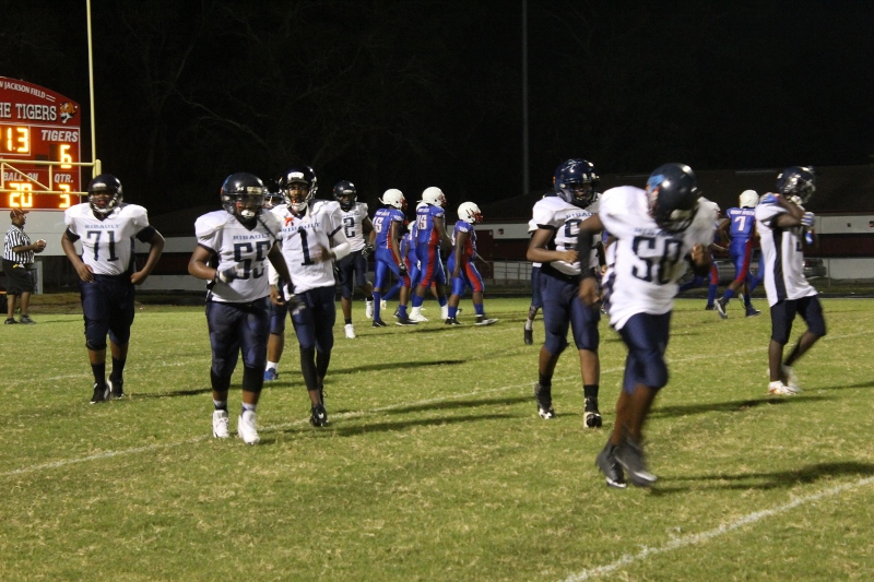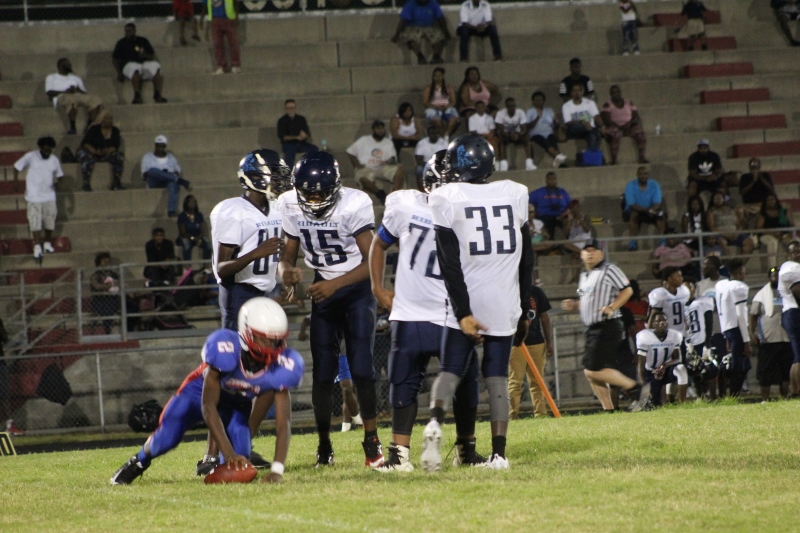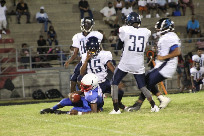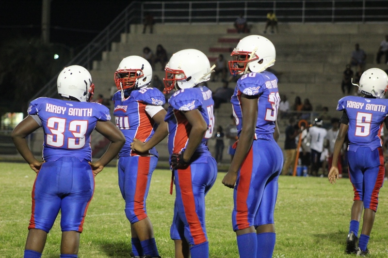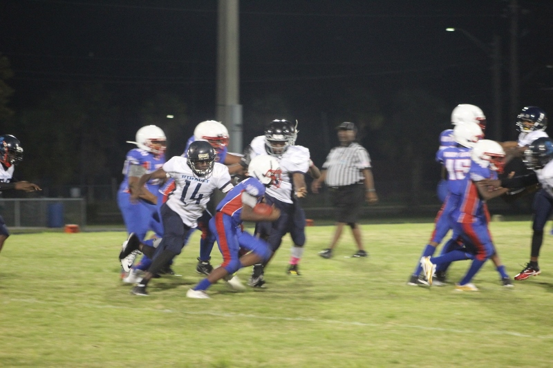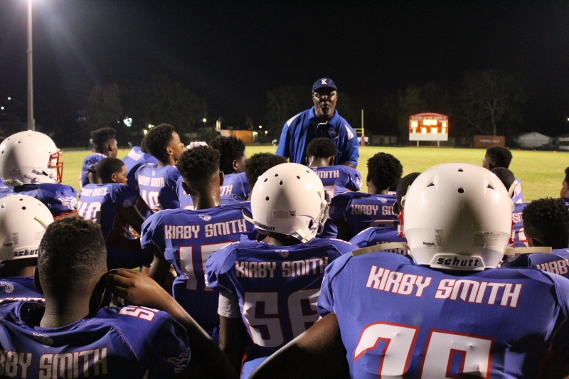 Kirby Smith had a decisive size advantage. In fact decisive may be an understatement. Led by #77 Jamon Faulkner at 6’4, 275lbs, Kirby Smith may have the largest Middle School offensive line in the history of football. There is #66 Zi’yair Miller 6’0, 250lbs , #72 Derrell Johnson 6’2 240lbs, #70 ,Wani Gore 6’3, 260 lbs, and that’s just naming a few. The star of the night was #45 MLB Josh Boykins. Even in defeat, Boykins is the athlete that stood out the most as one who is ready to start on a High School team. At 6’0 220lbs the linebacker was unblockable and unstoppable. He levied bone crushing hits and even scored the first points of the game for Kirby on a pass. Another bright spot was team vocal leader #7 Dayon Rawls who backed up the talk with his walk, returning a kickoff for a touchdown in the game.