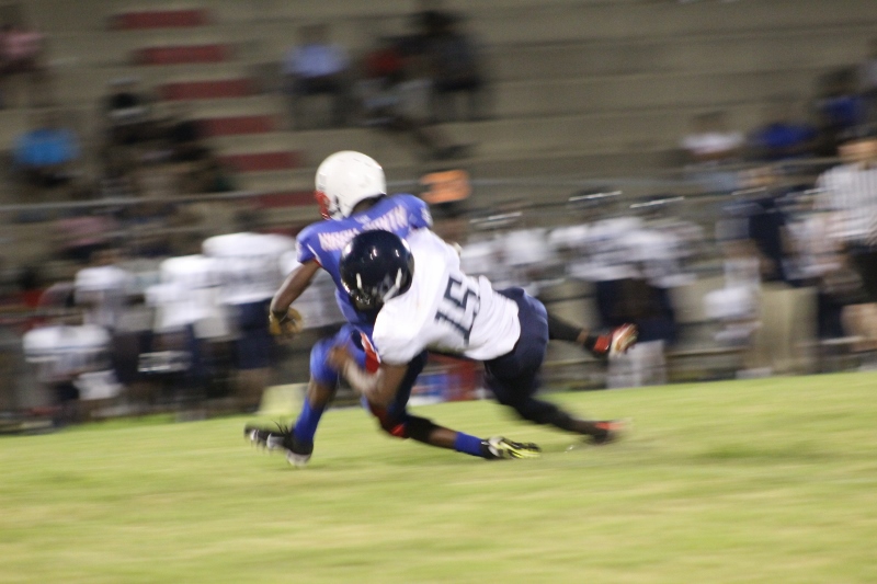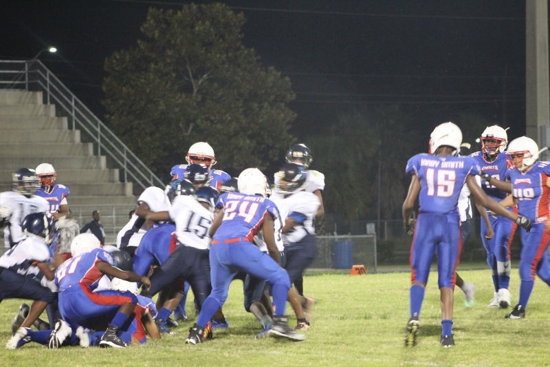 Kirby Smith had a decisive size advantage. In fact decisive may be an understatement. Led by #77 Jamon Faulkner at 6’4, 275lbs, Kirby Smith may have the largest Middle School offensive line in the history of football.  There is  #66 Zi’yair Miller 6’0, 250lbs , #72 Derrell Johnson 6’2 240lbs, #70 ,Wani Gore 6’3, 260 lbs, and that’s just naming a few. The star of the night was #45 MLB Josh Boykins. Even in defeat, Boykins is the athlete that stood out the most as one who is ready to start on a High School team. At 6’0 220lbs the linebacker was unblockable and unstoppable. He levied bone crushing hits and even scored the first points of the game for Kirby on a pass. Another bright spot was team vocal leader #7 Dayon Rawls who backed up the talk with his walk, returning a kickoff for a touchdown in the game.